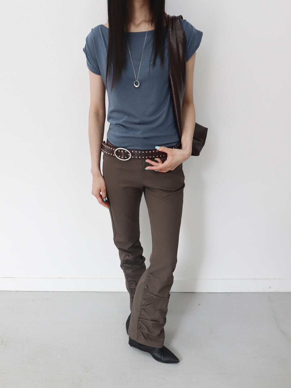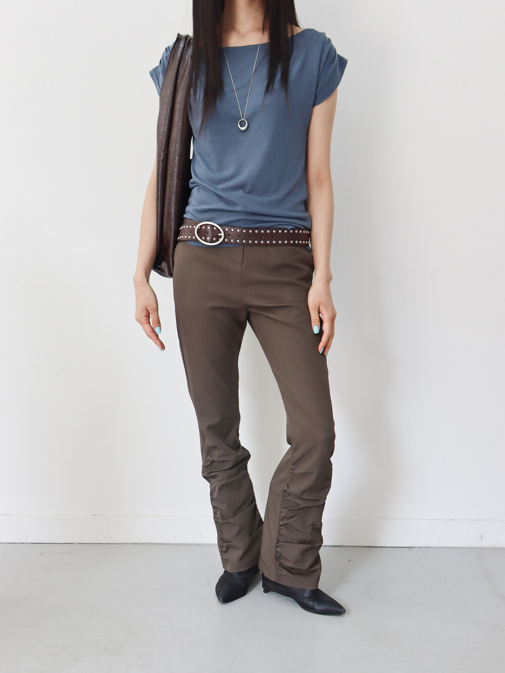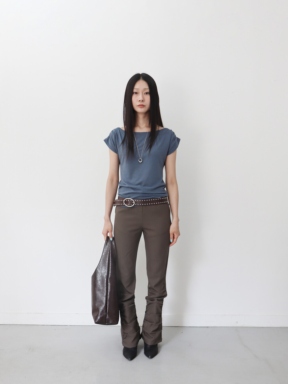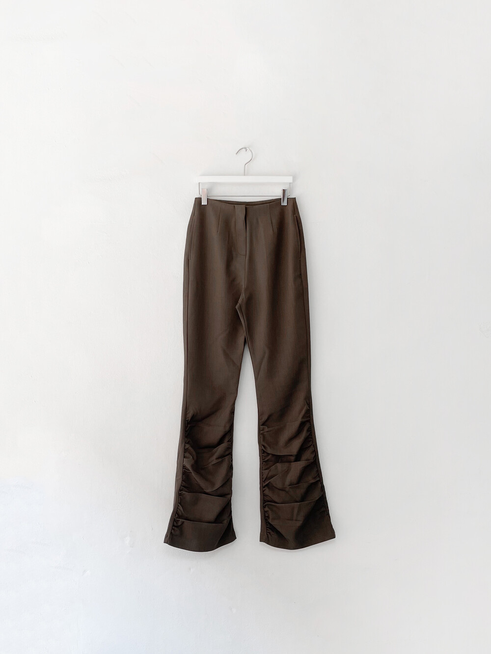 자연스럽게 잡힌 셔링 디테일이 매력적인 세미 부츠컷 팬츠