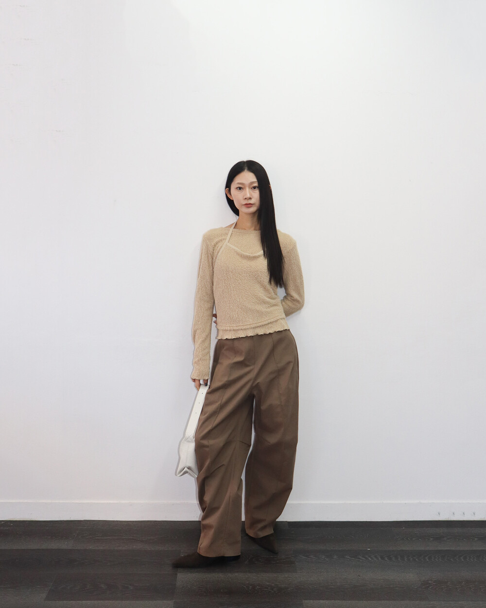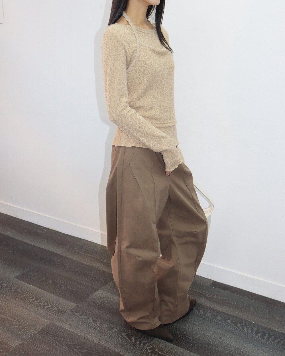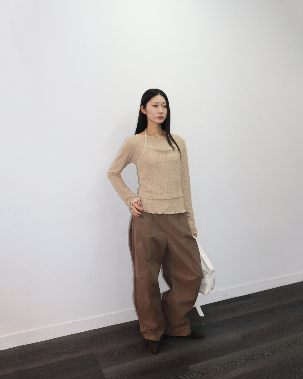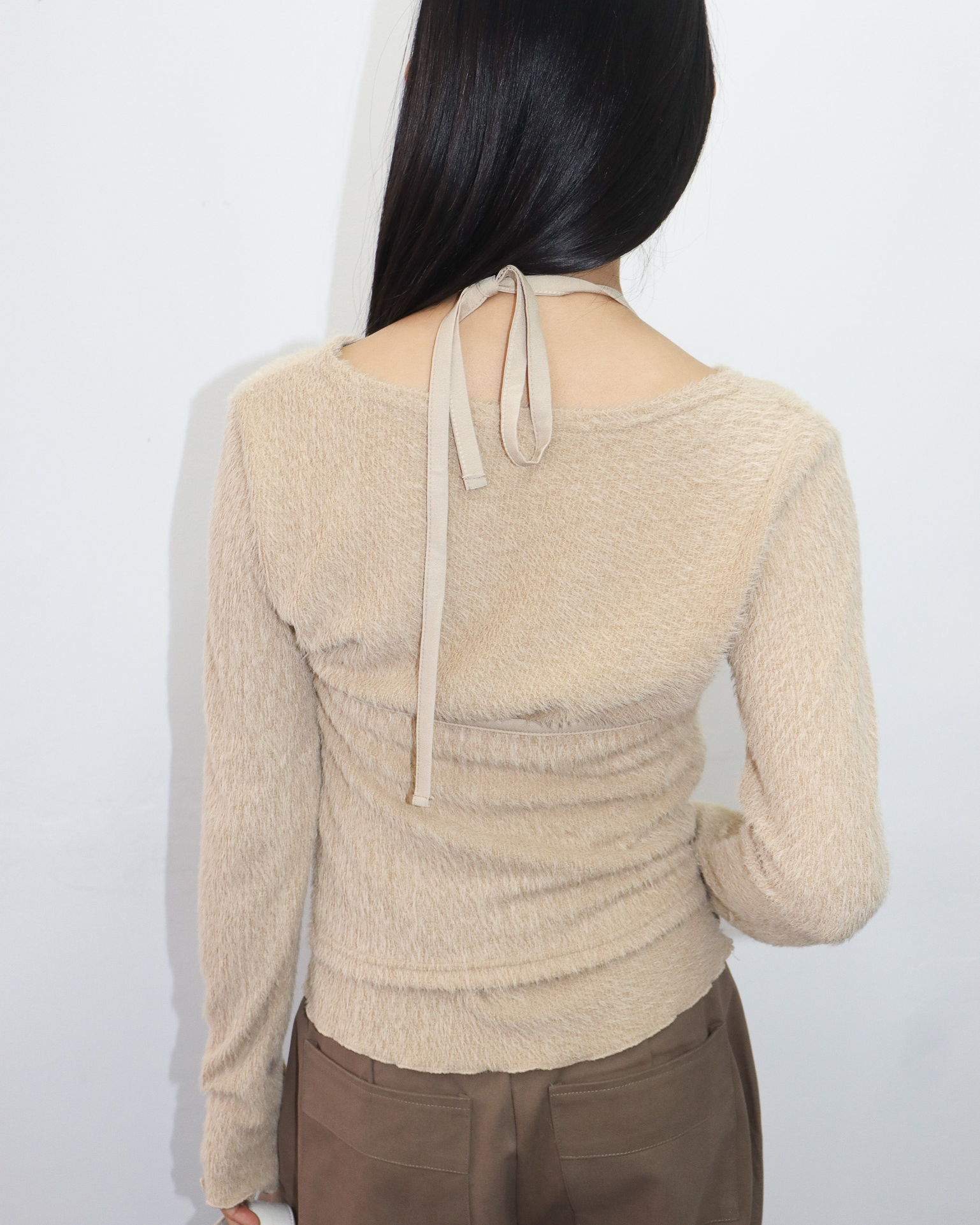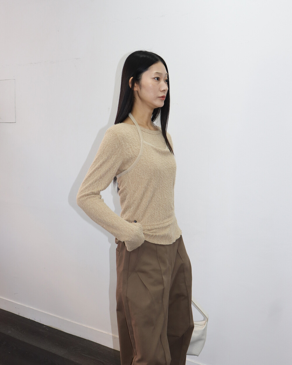 적당히 파여진 라운드 탑 위에 홀터넥을 얹으면