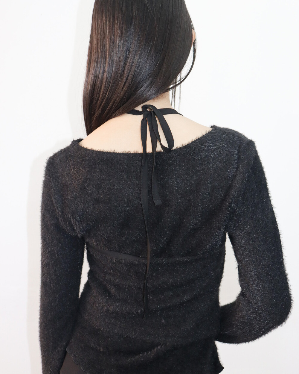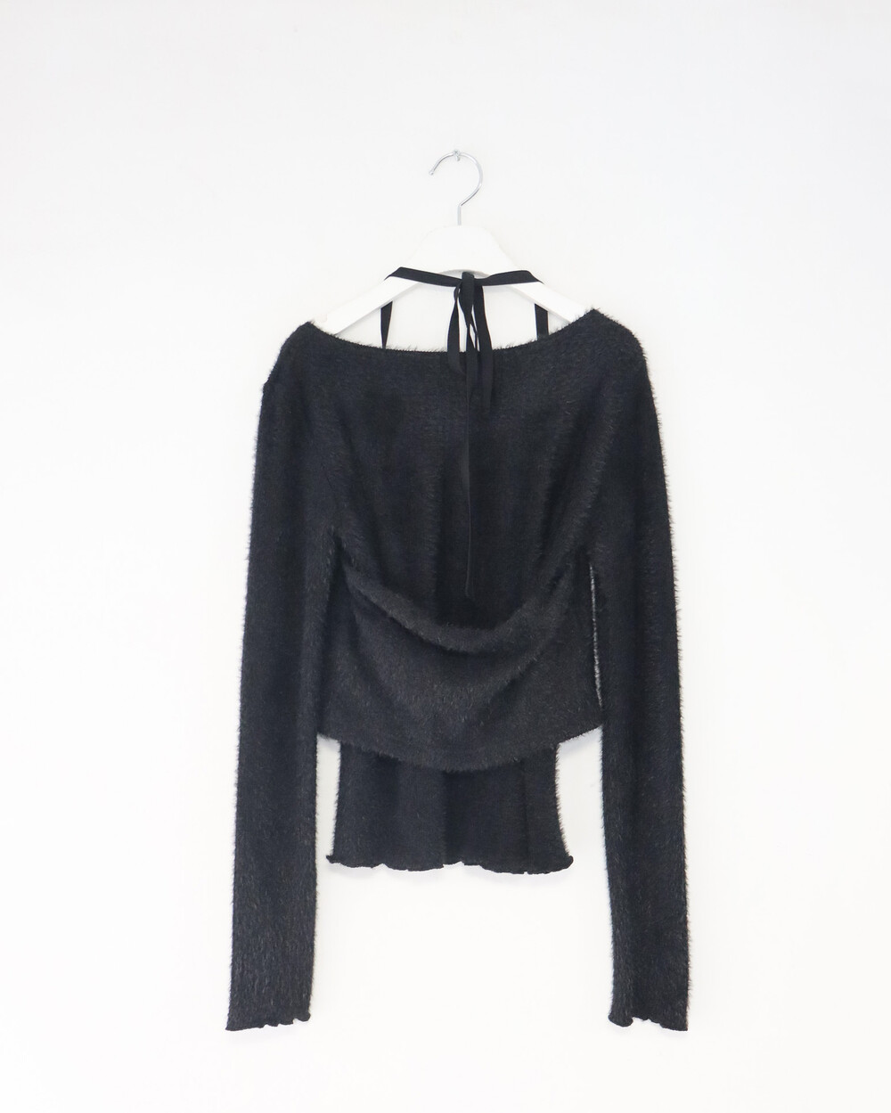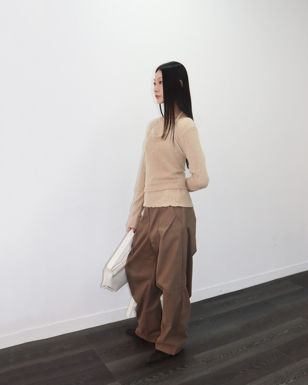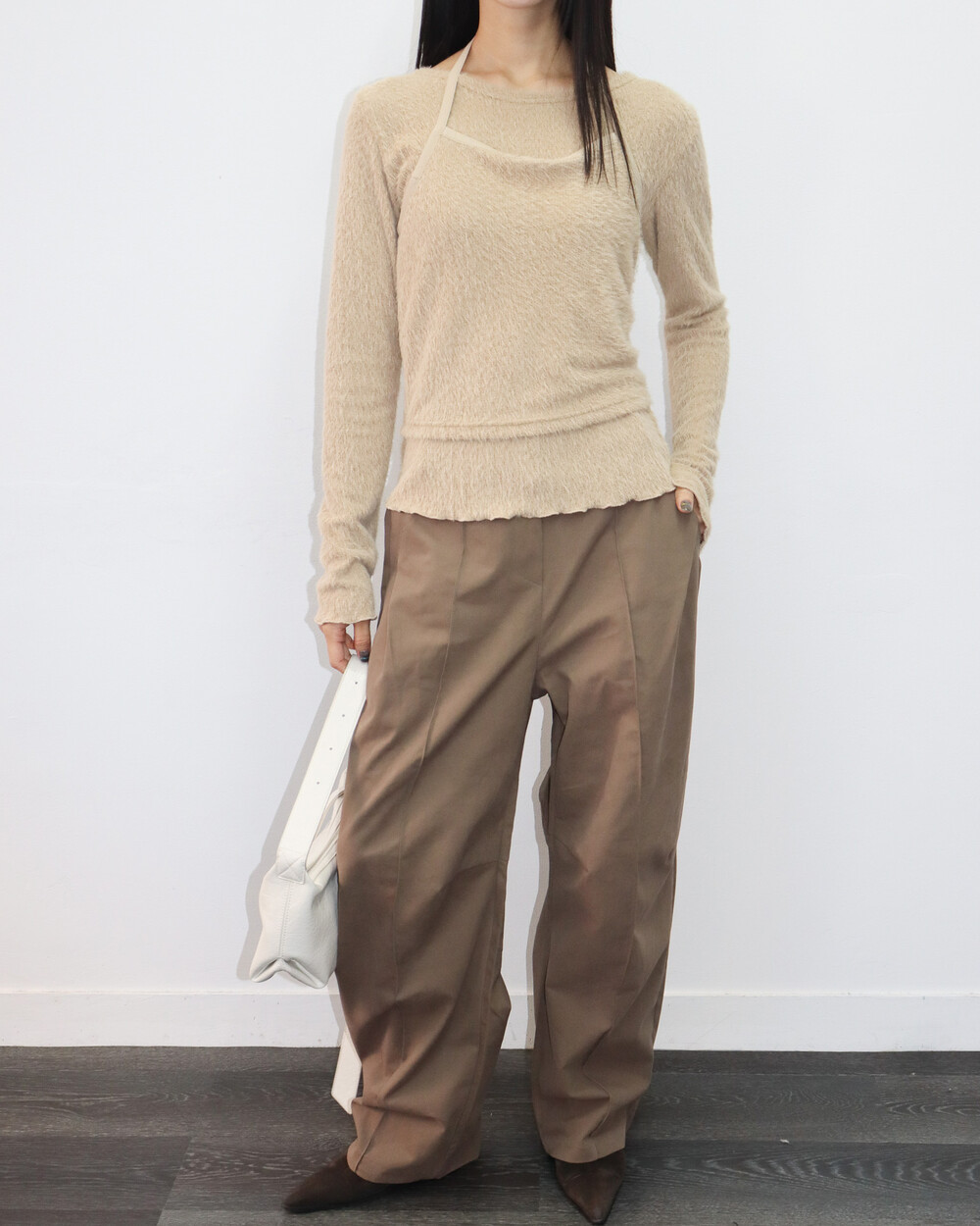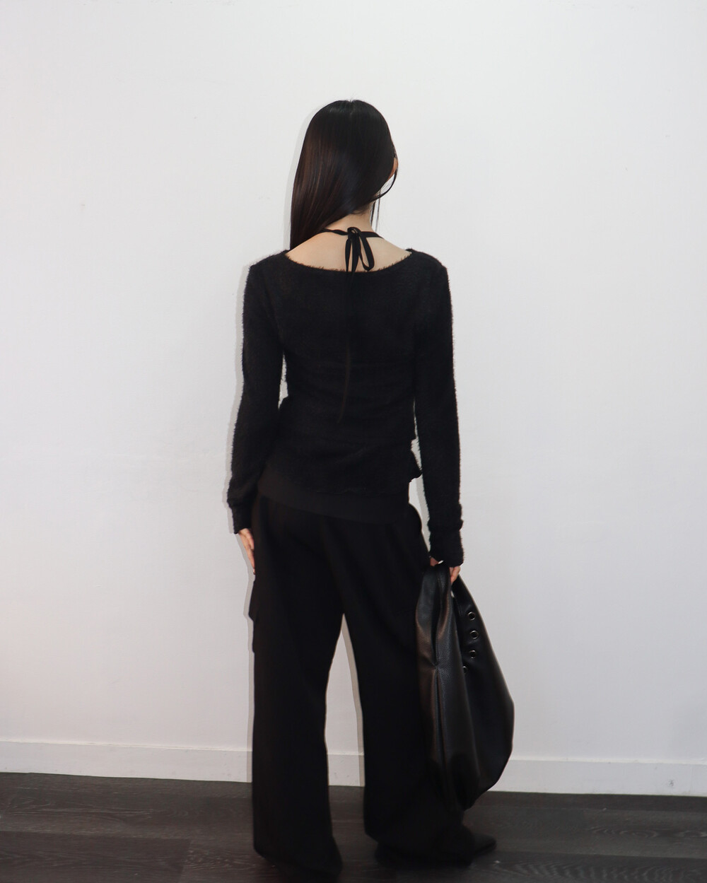 적당히 파여진 라운드 탑 위에 홀터넥을 얹으면