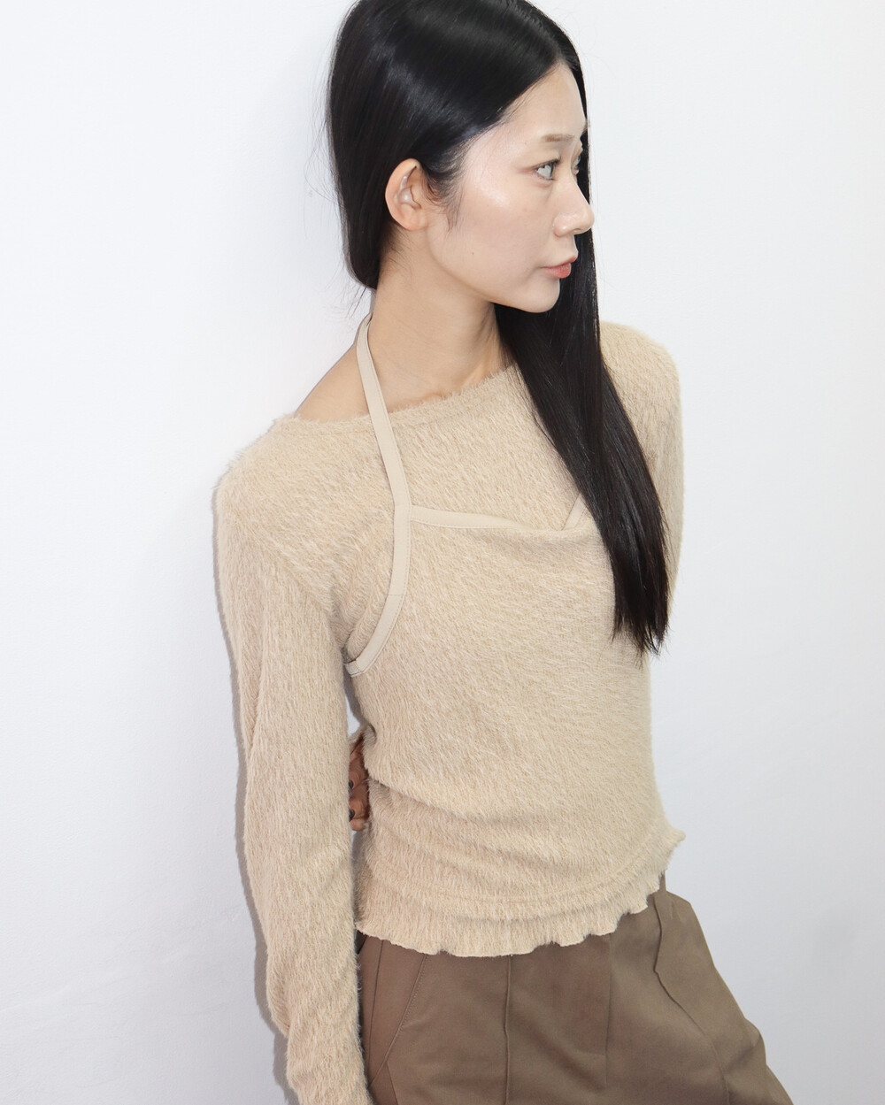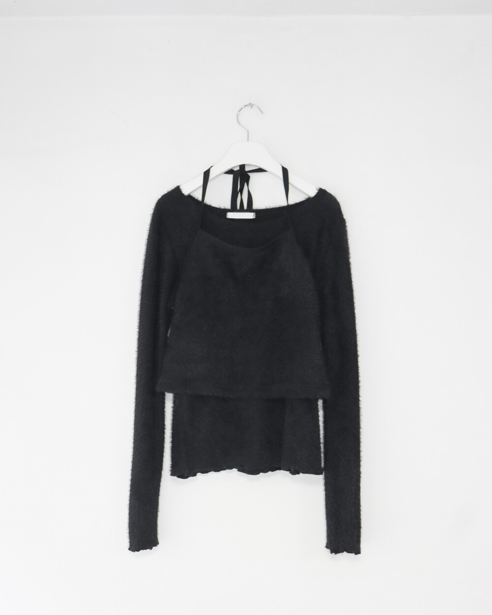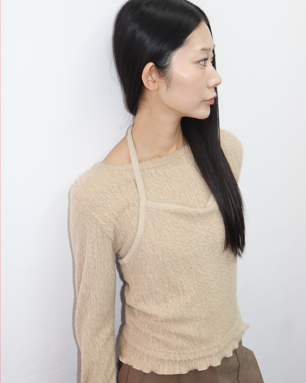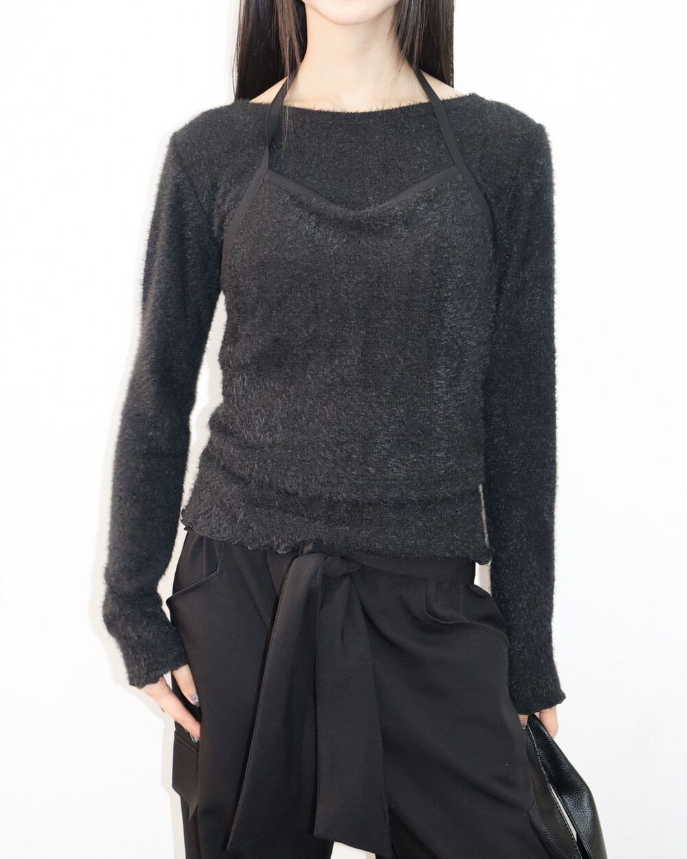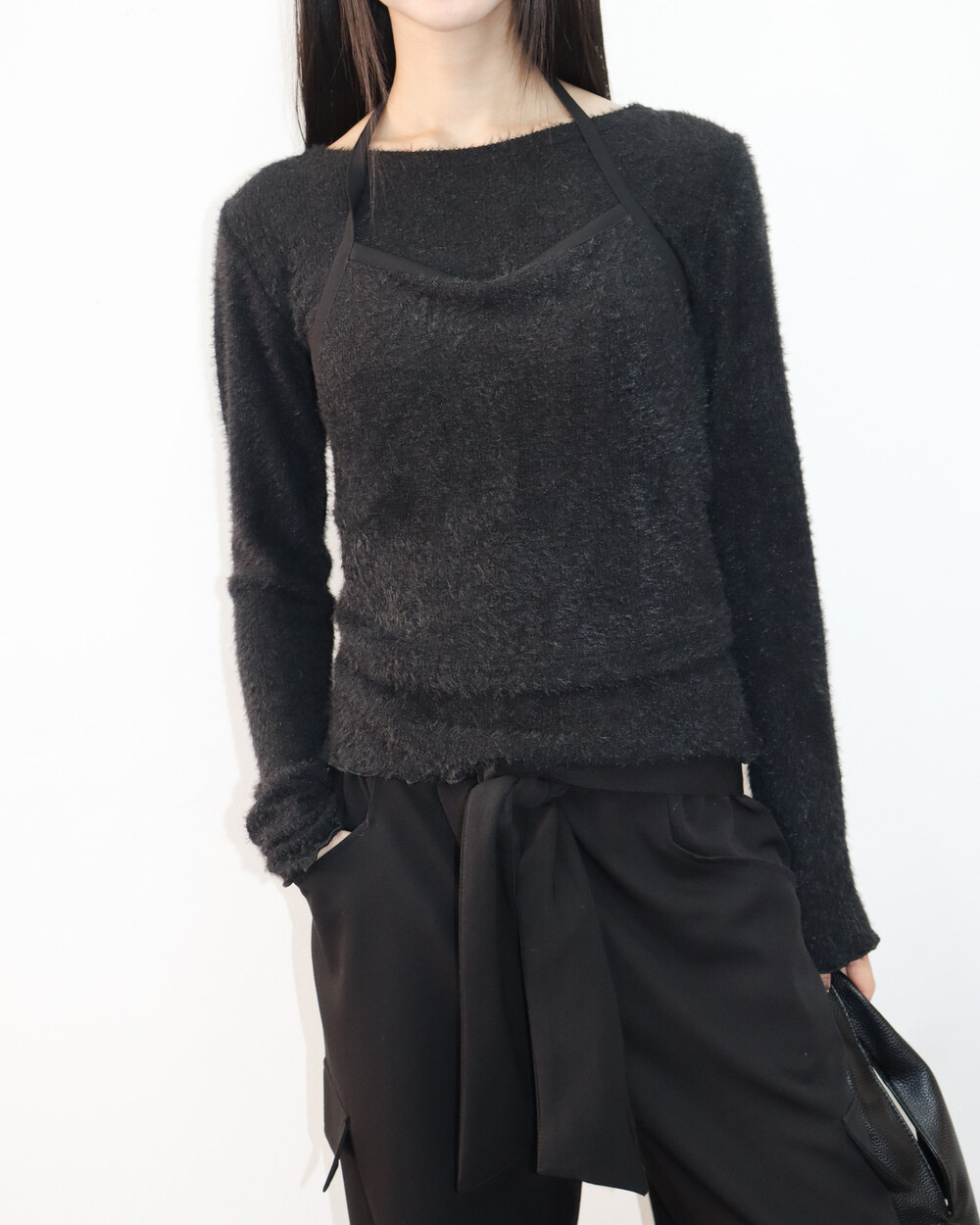 홀터넥 슬리브리스와 라운드 탑이 한 세트로 구성되어 있어요