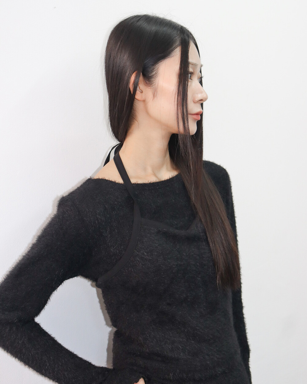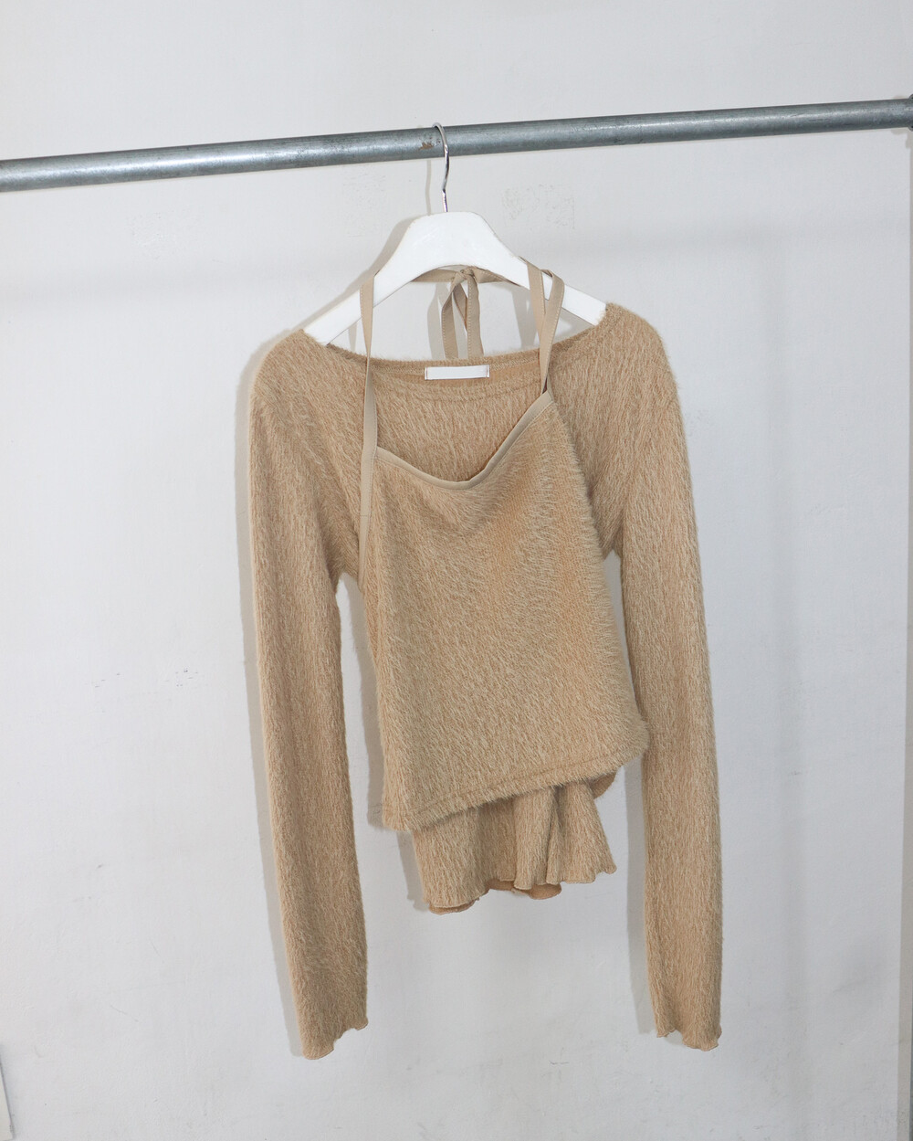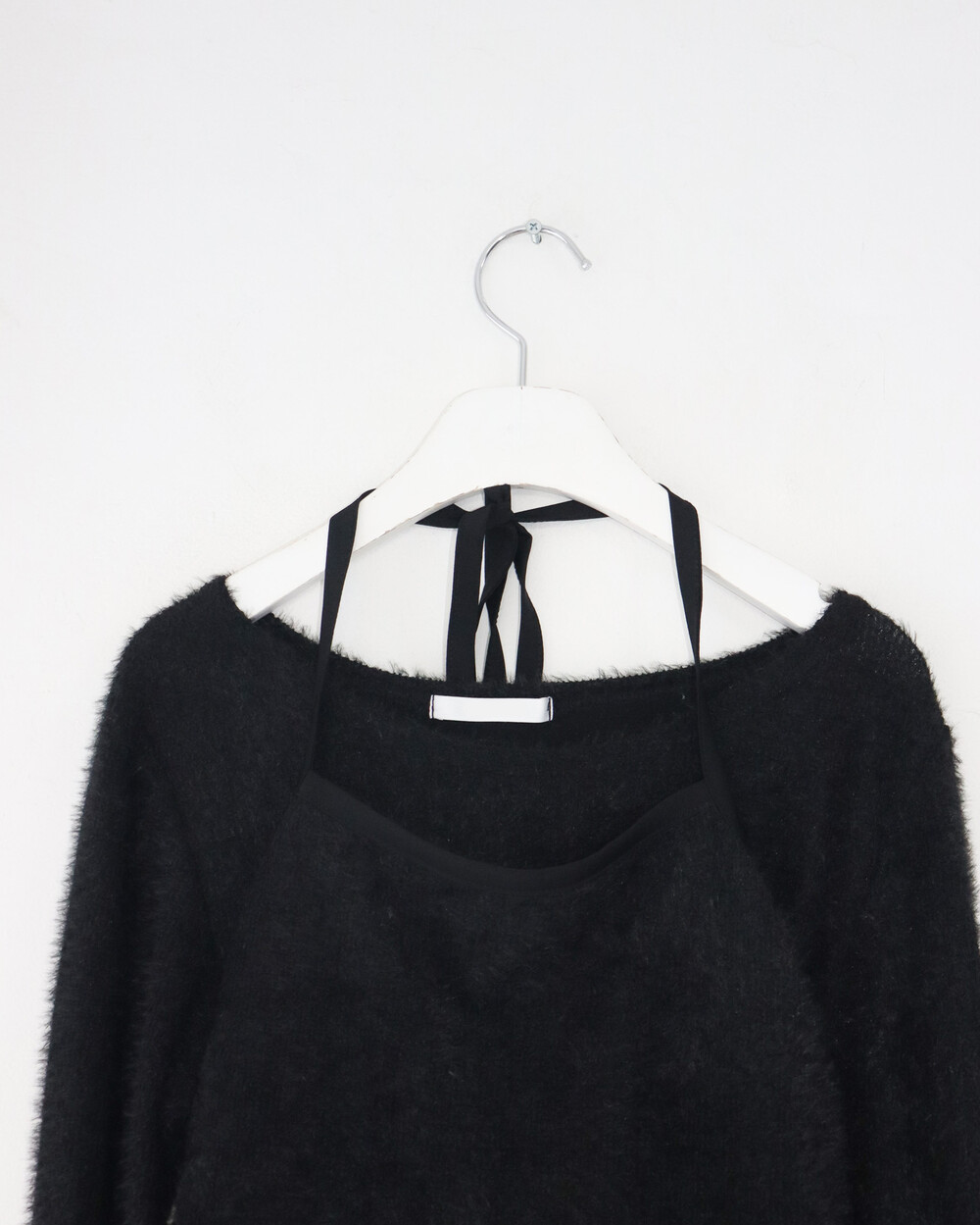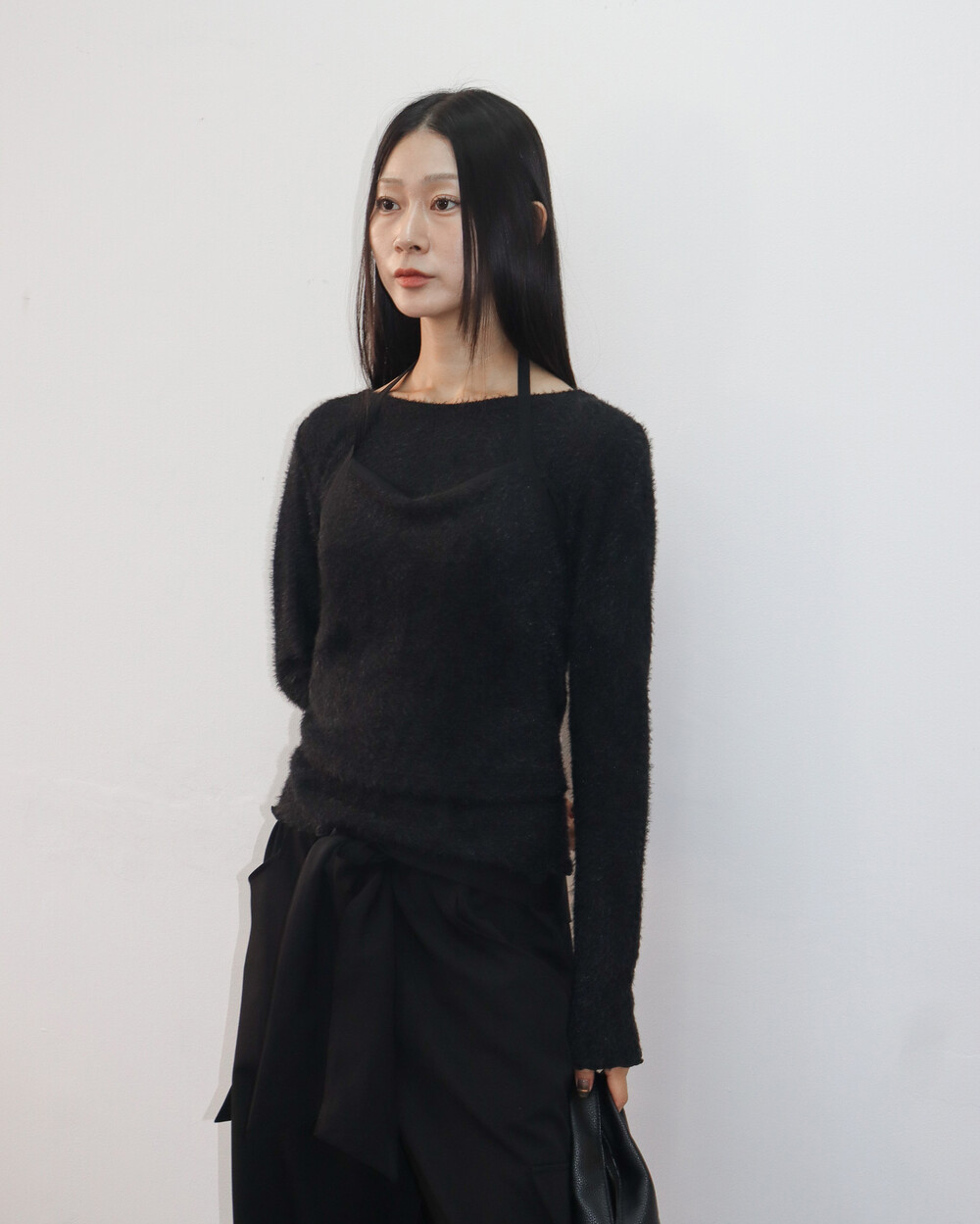 홀터넥 슬리브리스와 라운드 탑이 한 세트로 구성되어 있어요