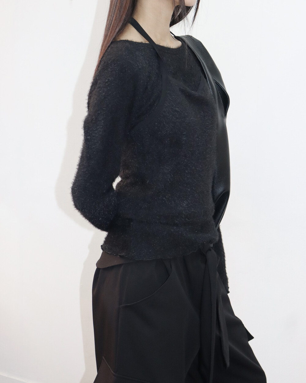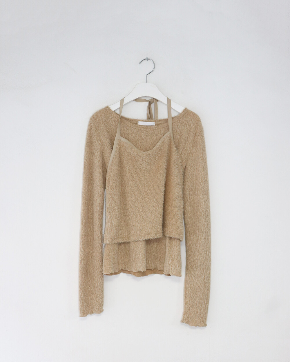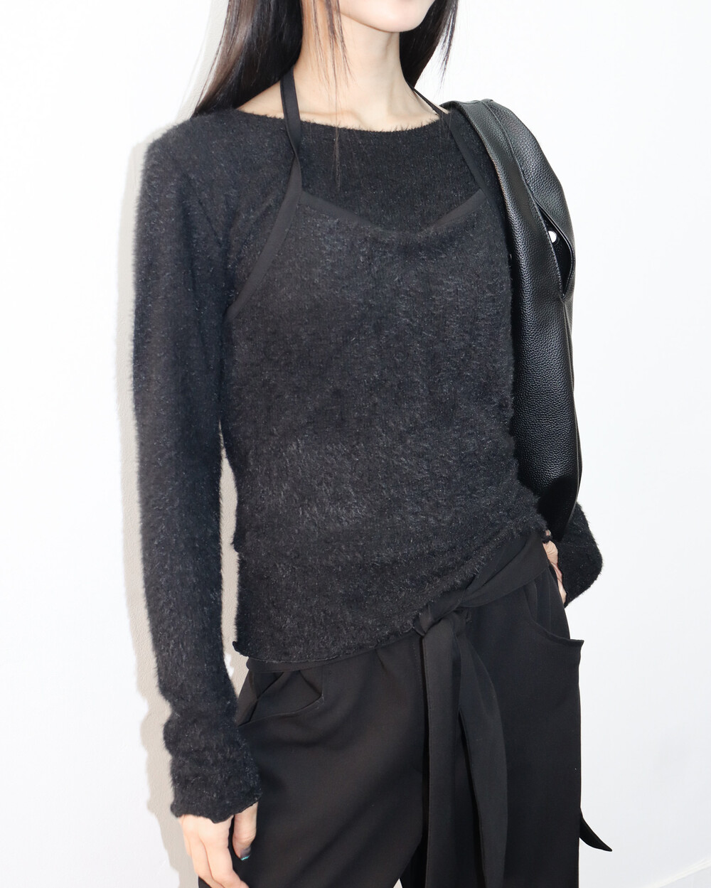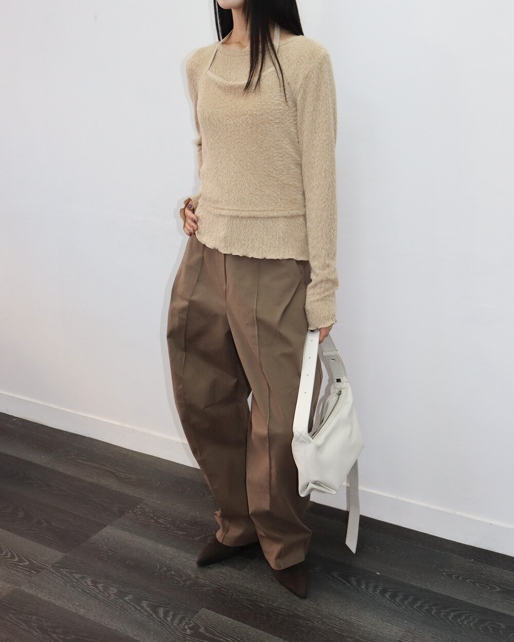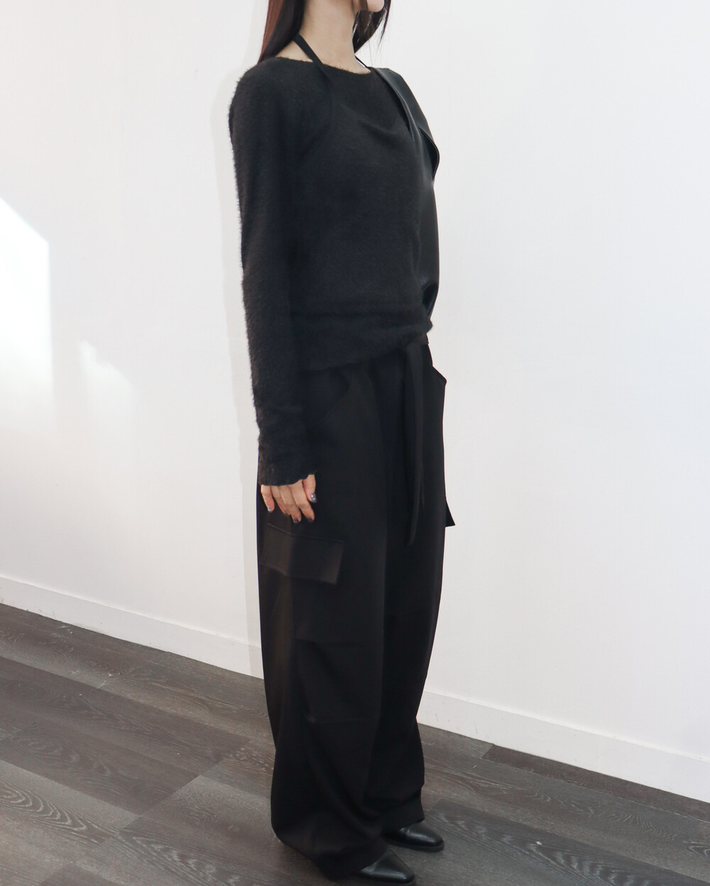 홀터넥 슬리브리스와 라운드 탑이 한 세트로 구성되어 있어요
