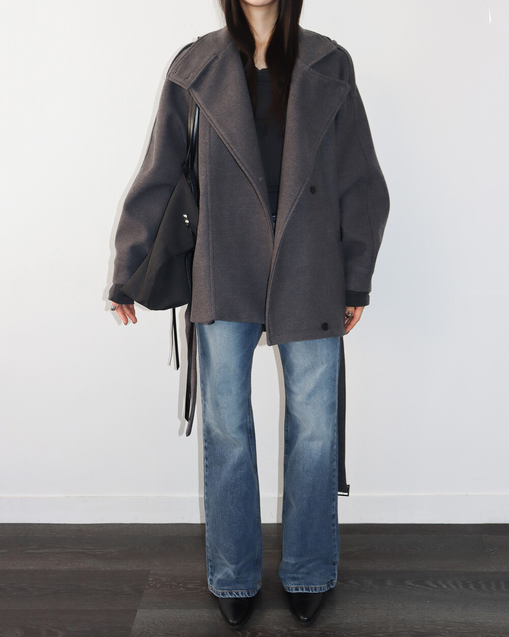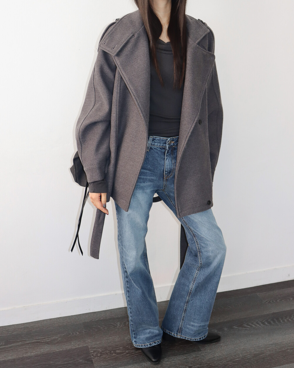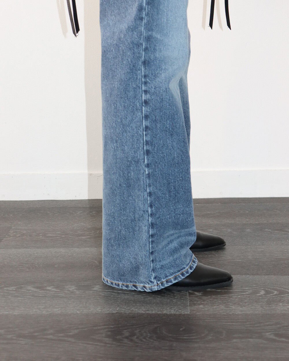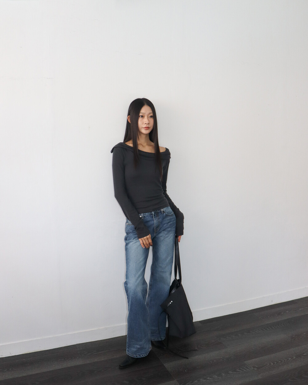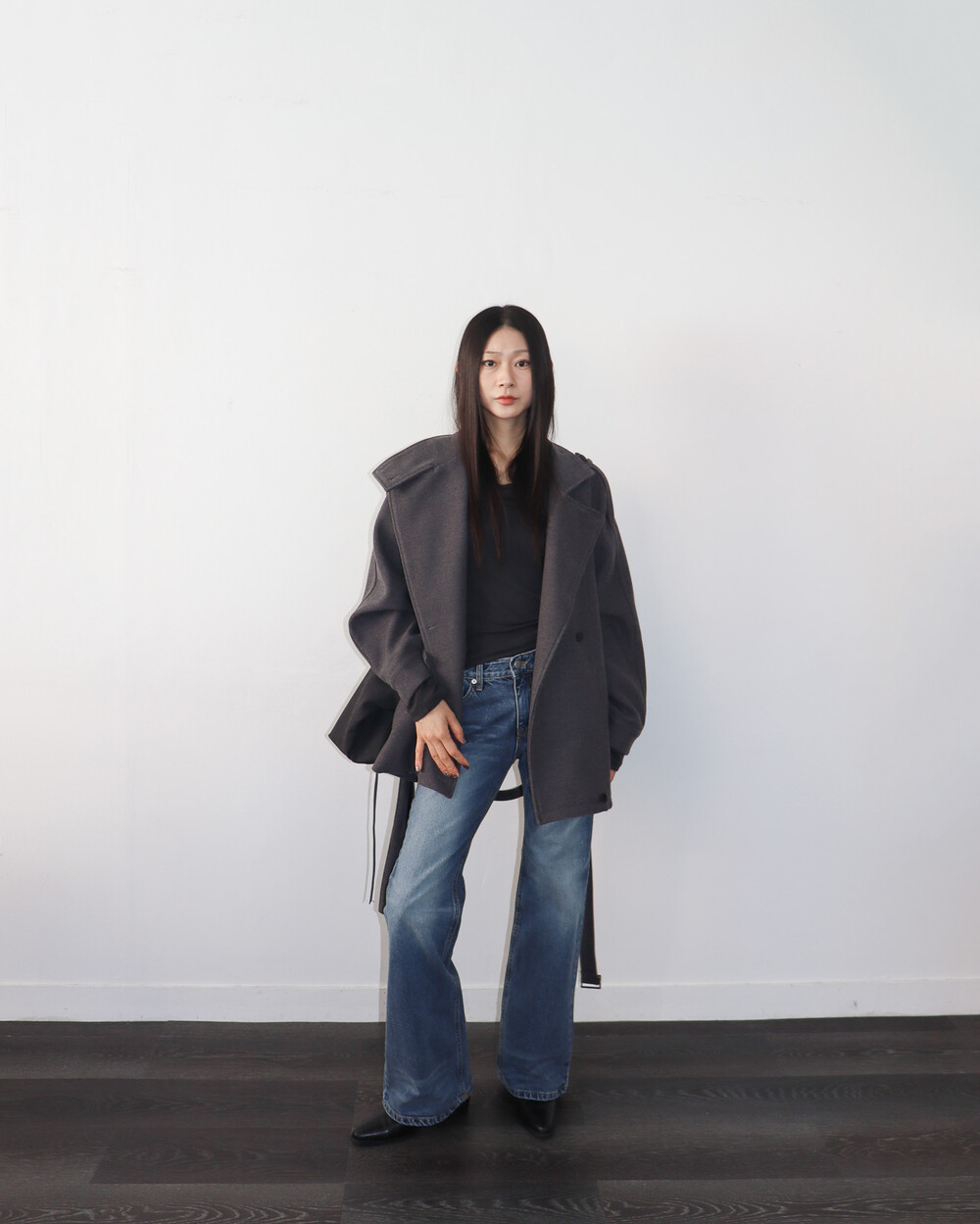 발등 위로 드롭되는 기장감, 살짝 플레어드 떨어지는 스트레이트 핏으로