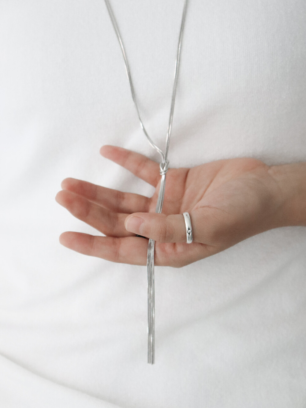 이 네크리스는 스네이크 체인이 트위스트 되어 있는 게 포인트 !