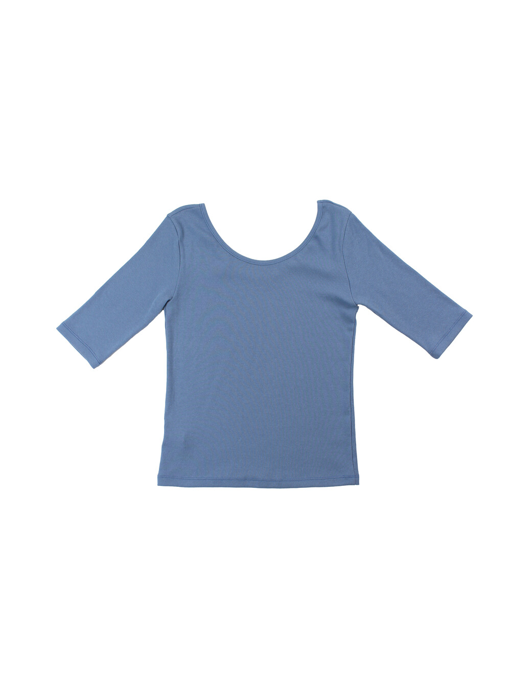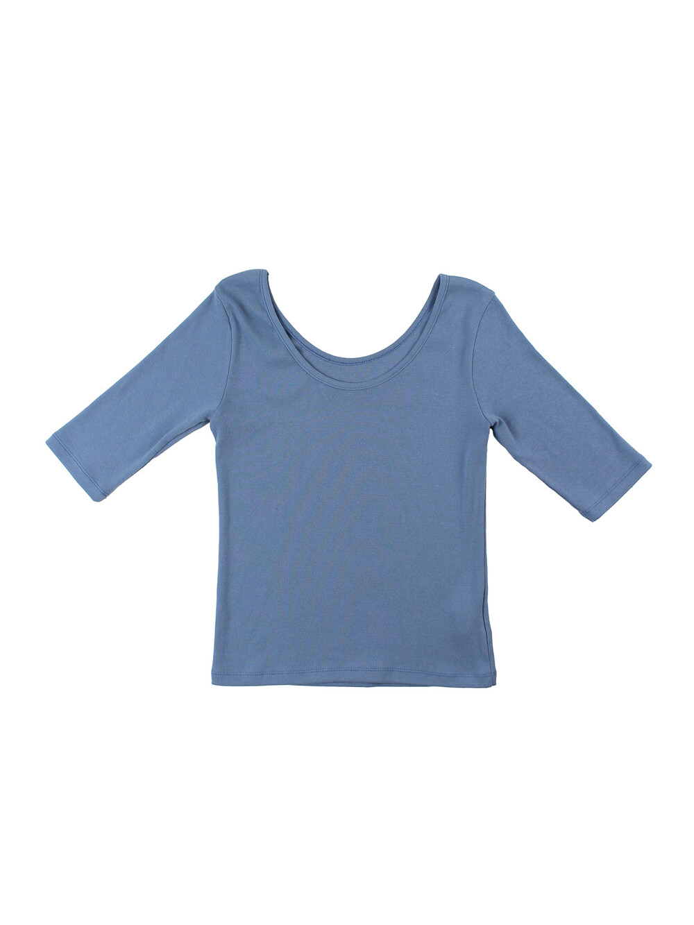기분 좋게 차분한 분위기를 선사하는 5부 기장감의 심플한 티셔츠