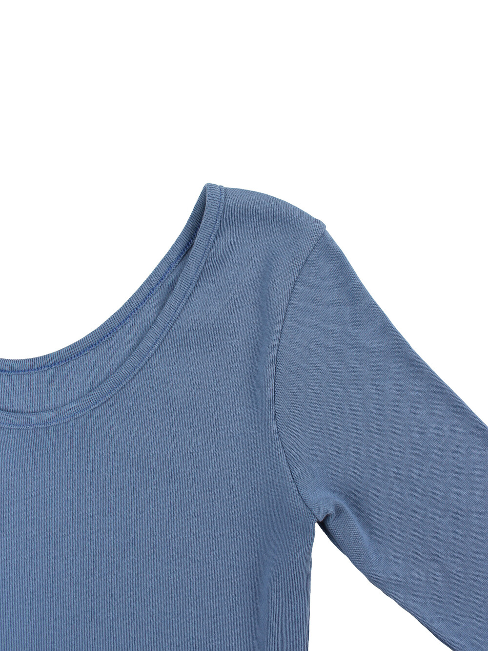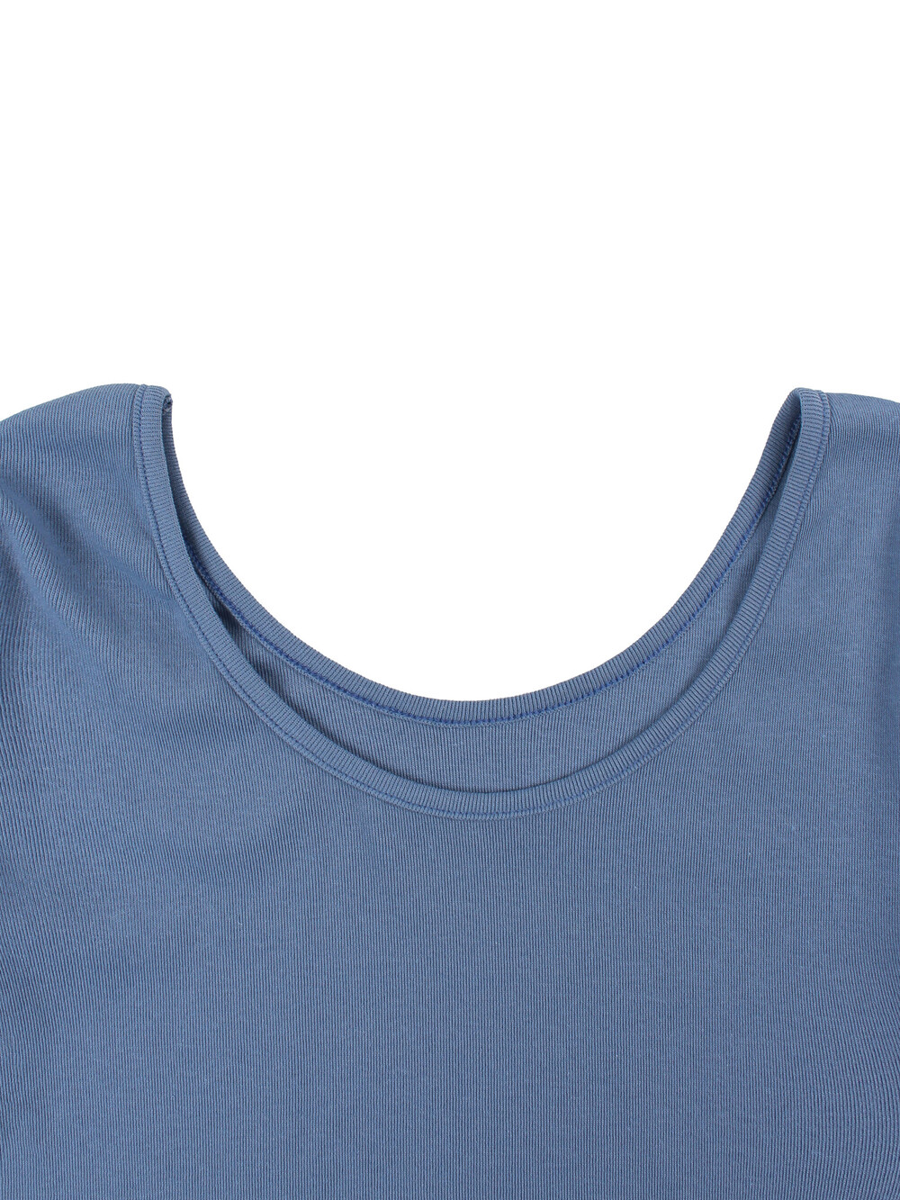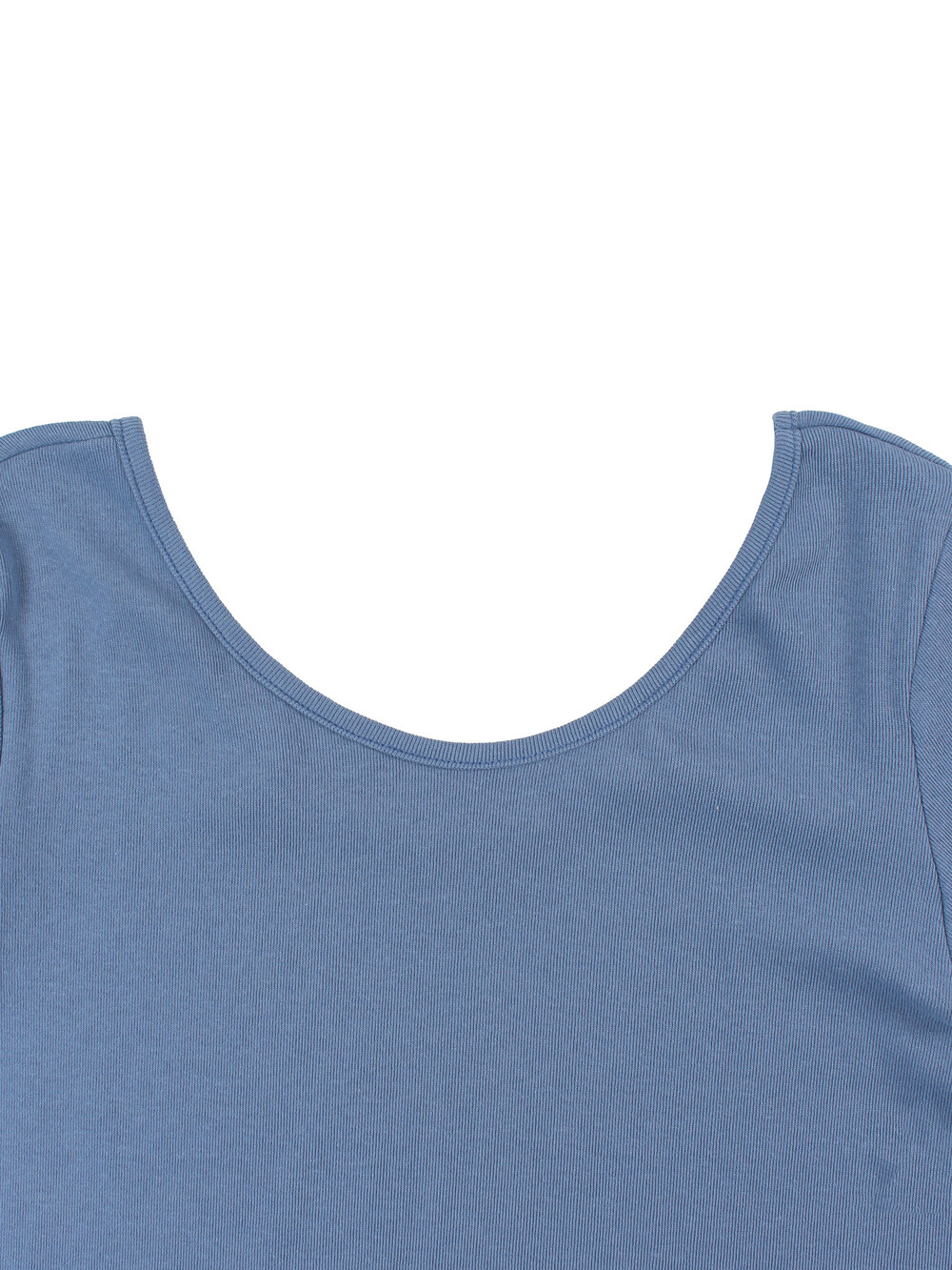 목선을 돋보이게 하는 라운드 네크라인, 자연스러운 실루엣이 연출되며
