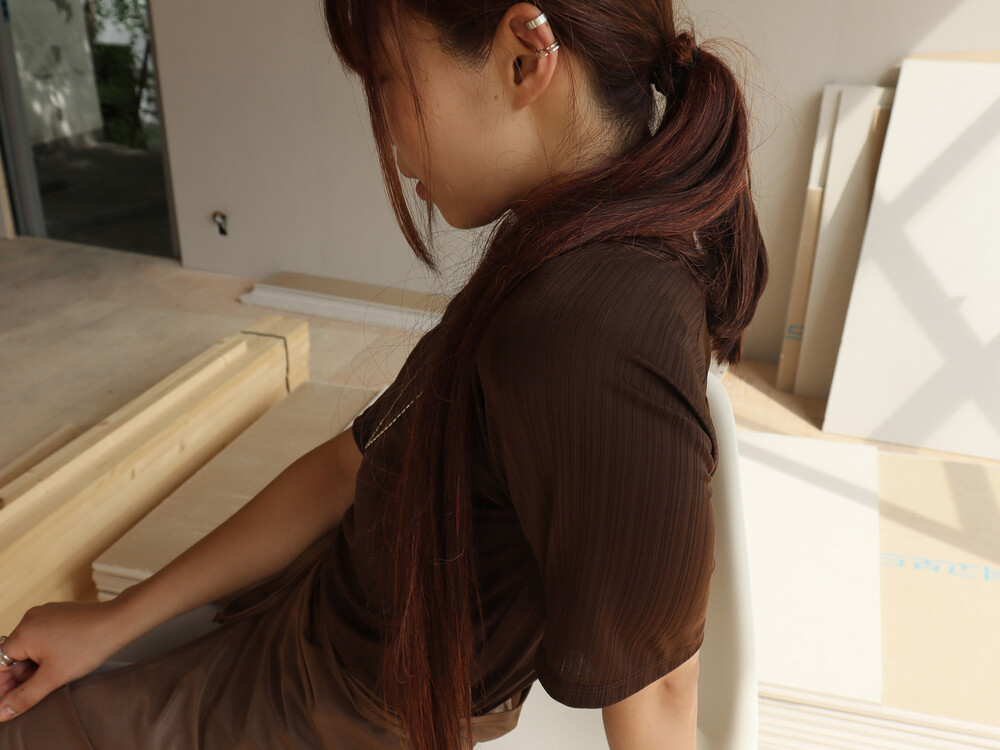 끝단이 후루룩 말리게 입어져 애쓰지 않아도 팬츠 위에 우아하게 얹어져요