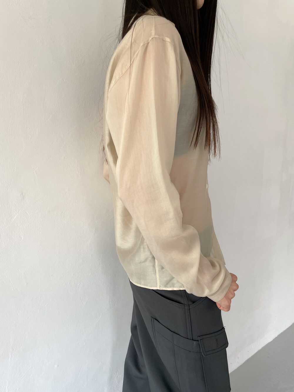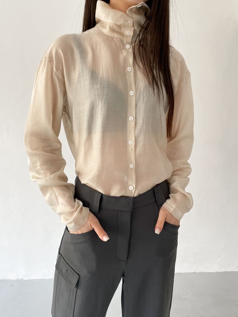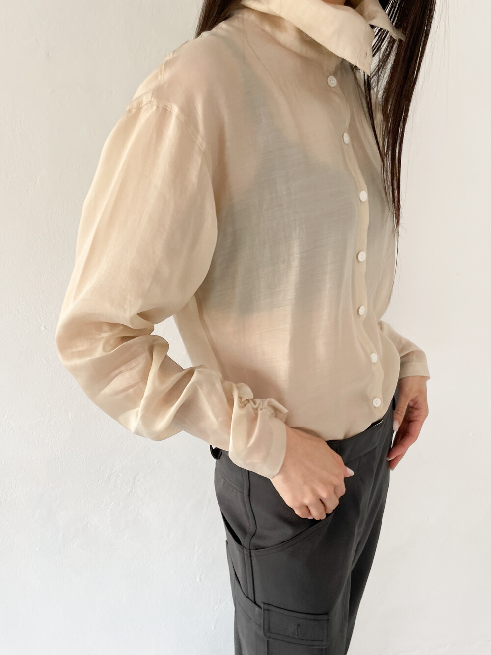 얇게 합포를 해서 실루엣이 딱 떨어지며 스판기가 있는 원단이라