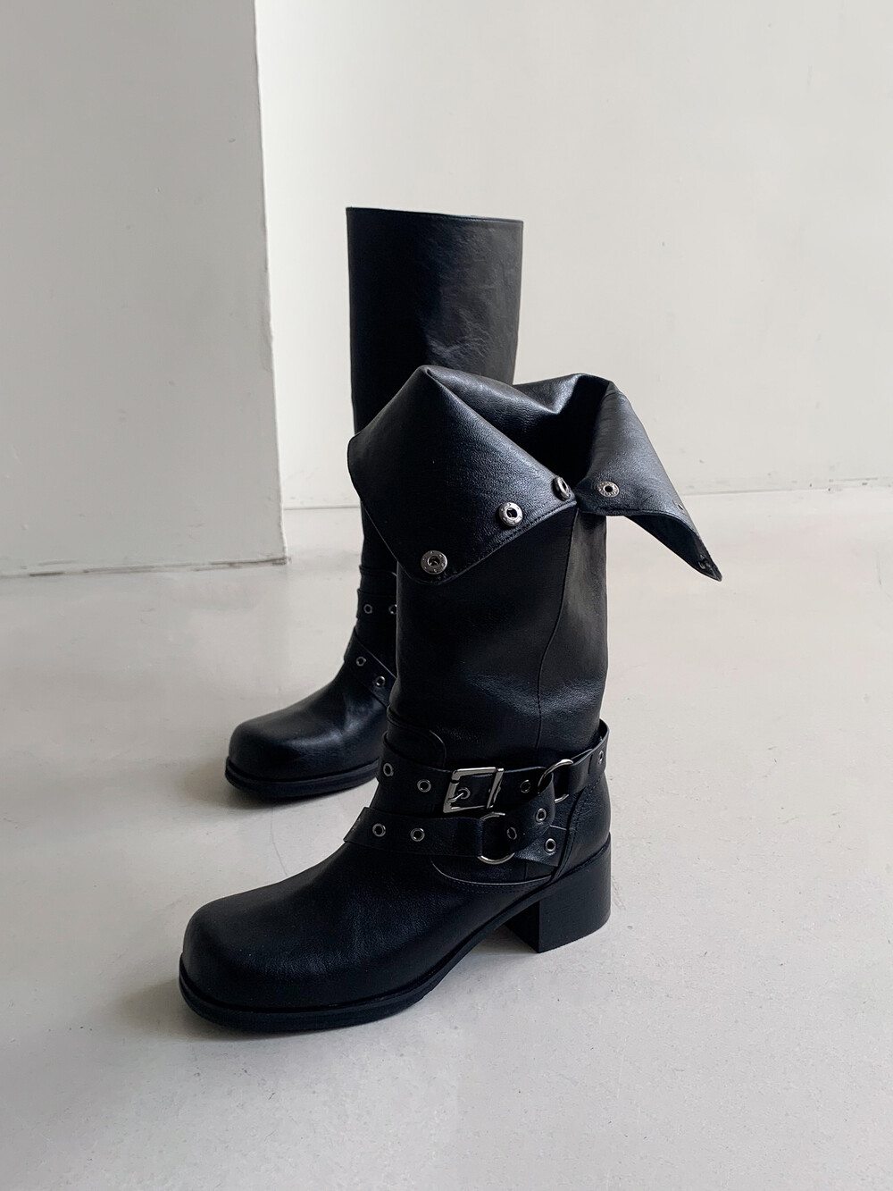 ROUGH BUTTON FOLDING BOOTS (ONE COLOR)