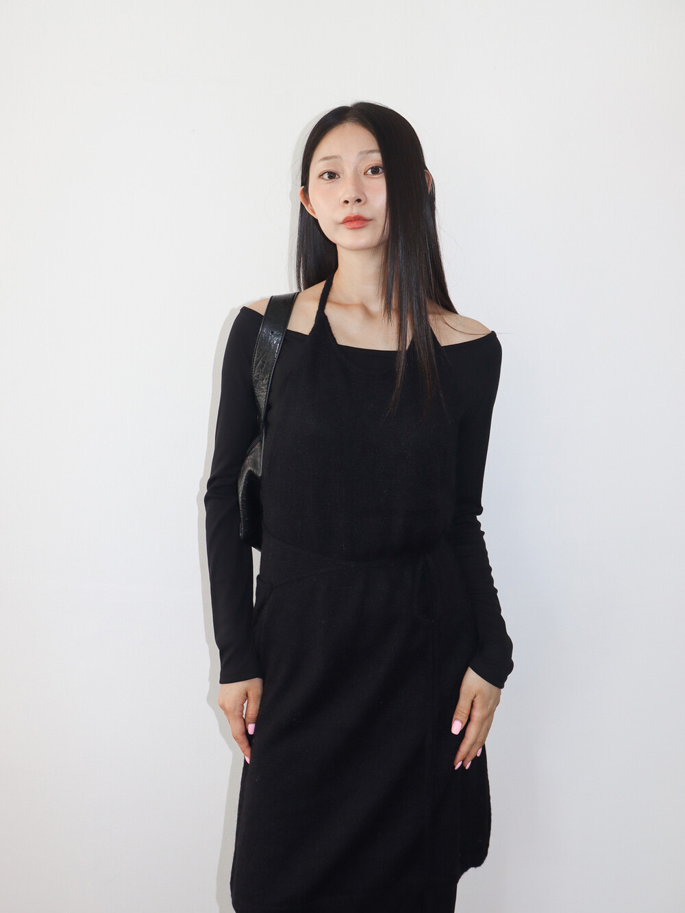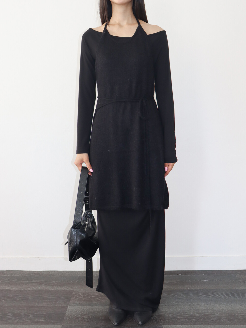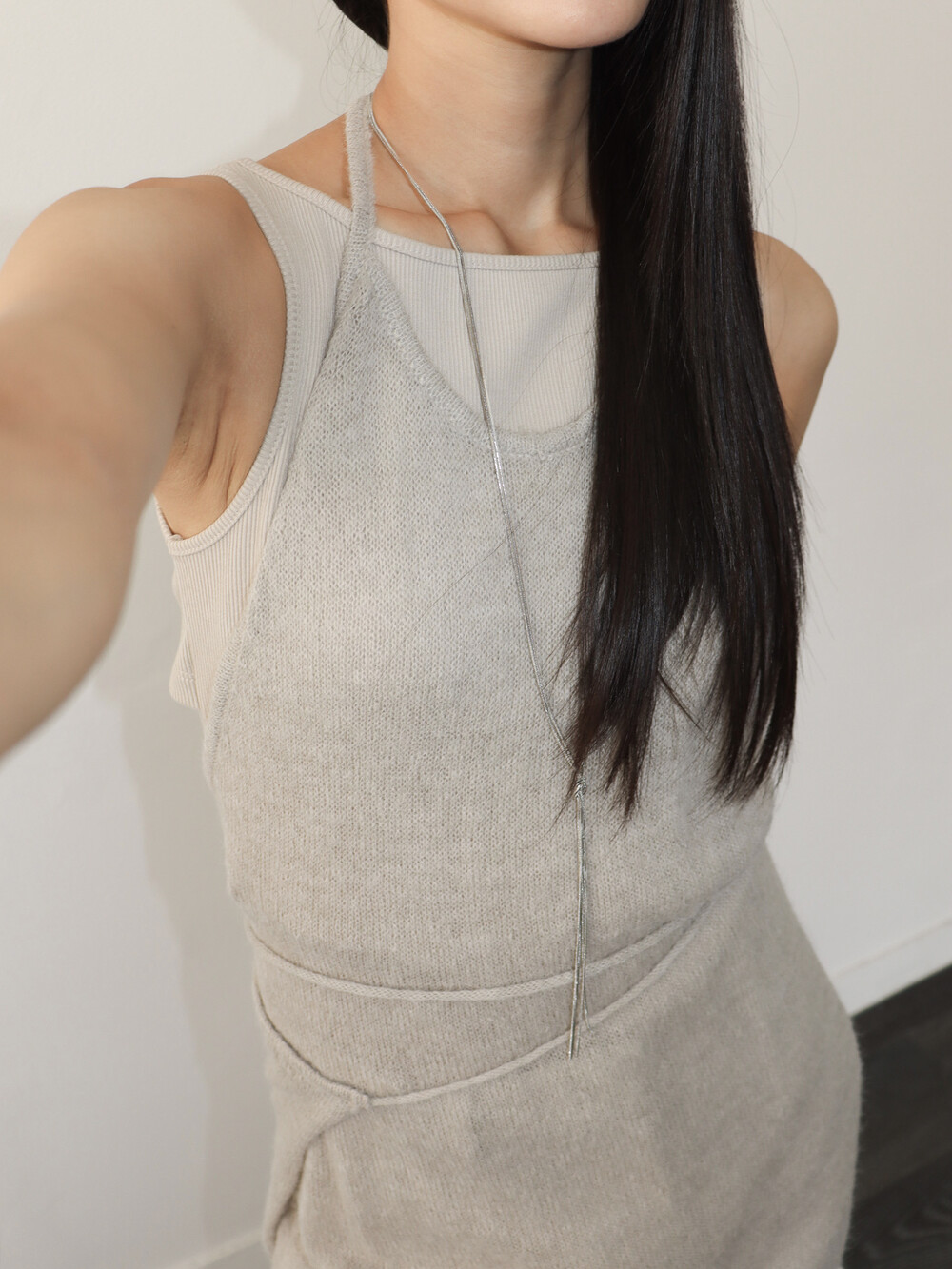 센슈얼한 무드에 빈티지한 느낌도 한 스푼 담긴 홀터 니트 원피스