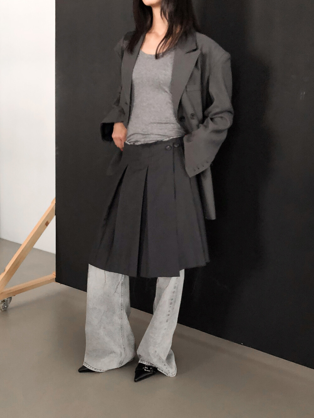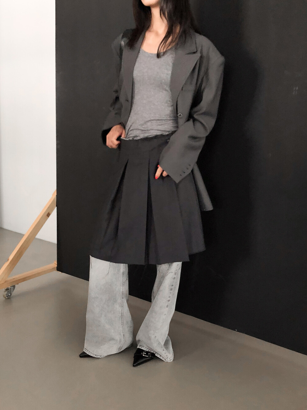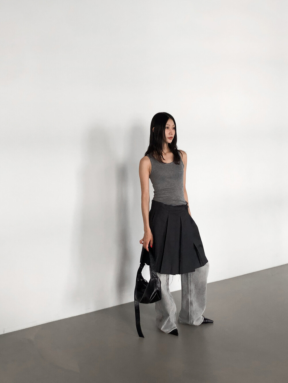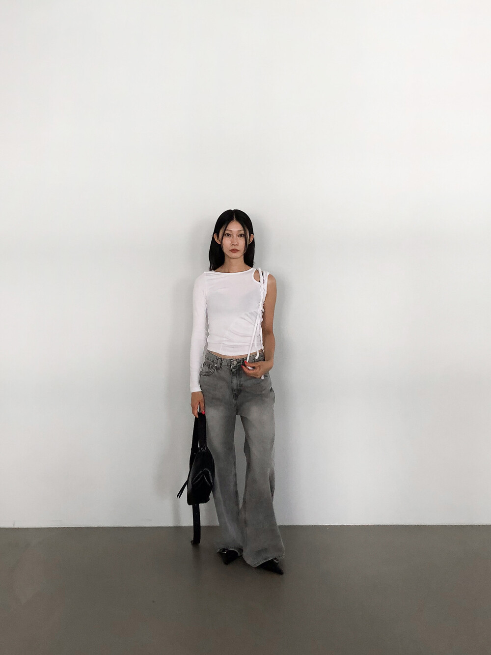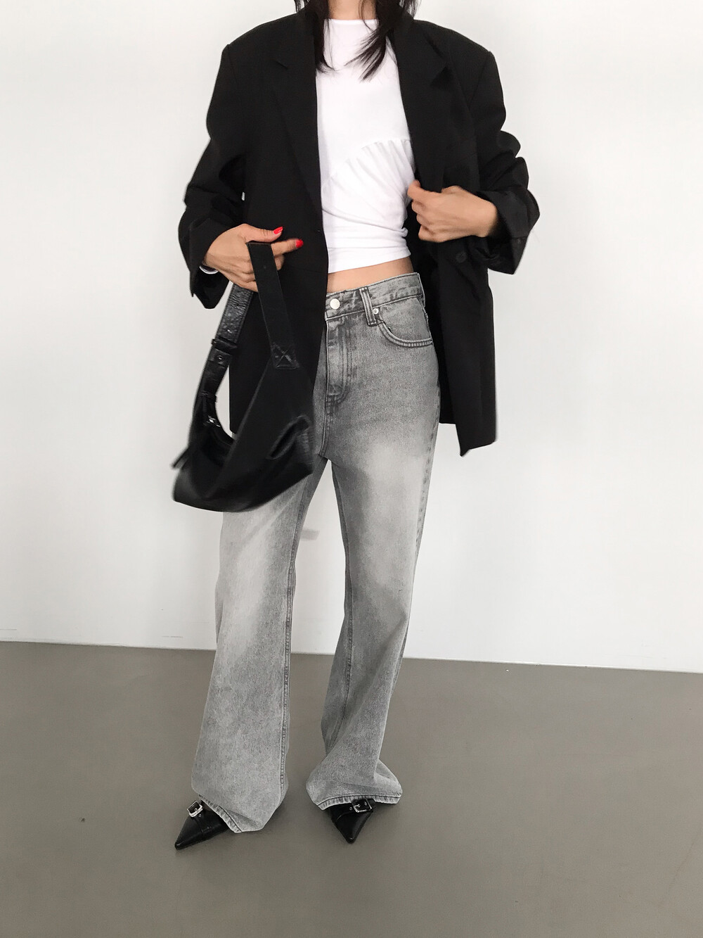 그레이쉬한 데님 컬러가 깔끔하고 쉬운 매치를 유도하는 제품
