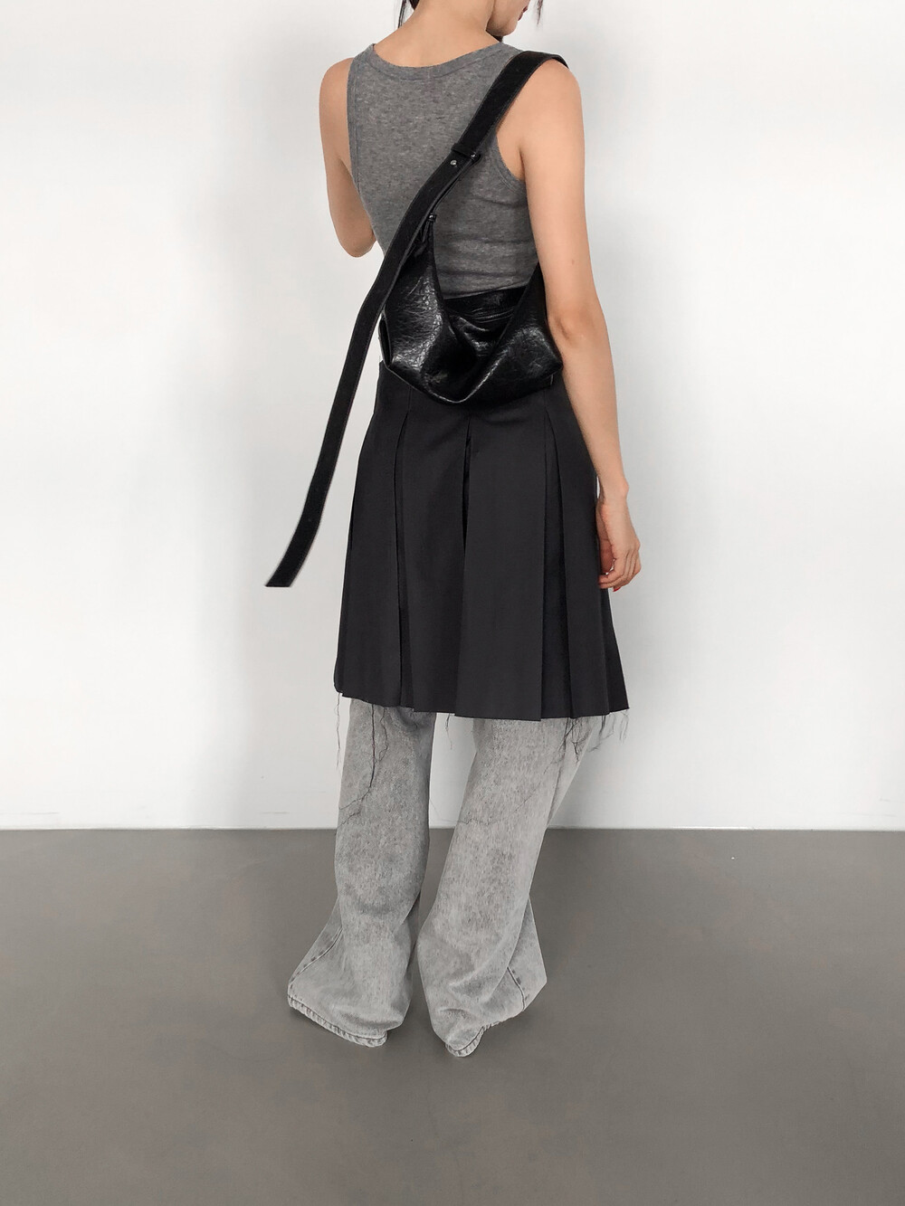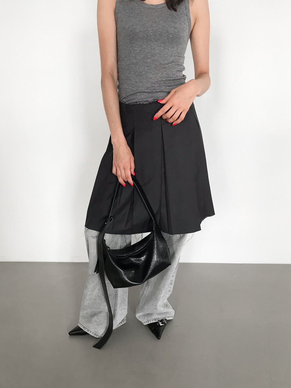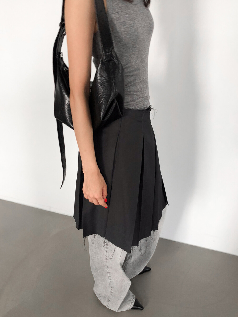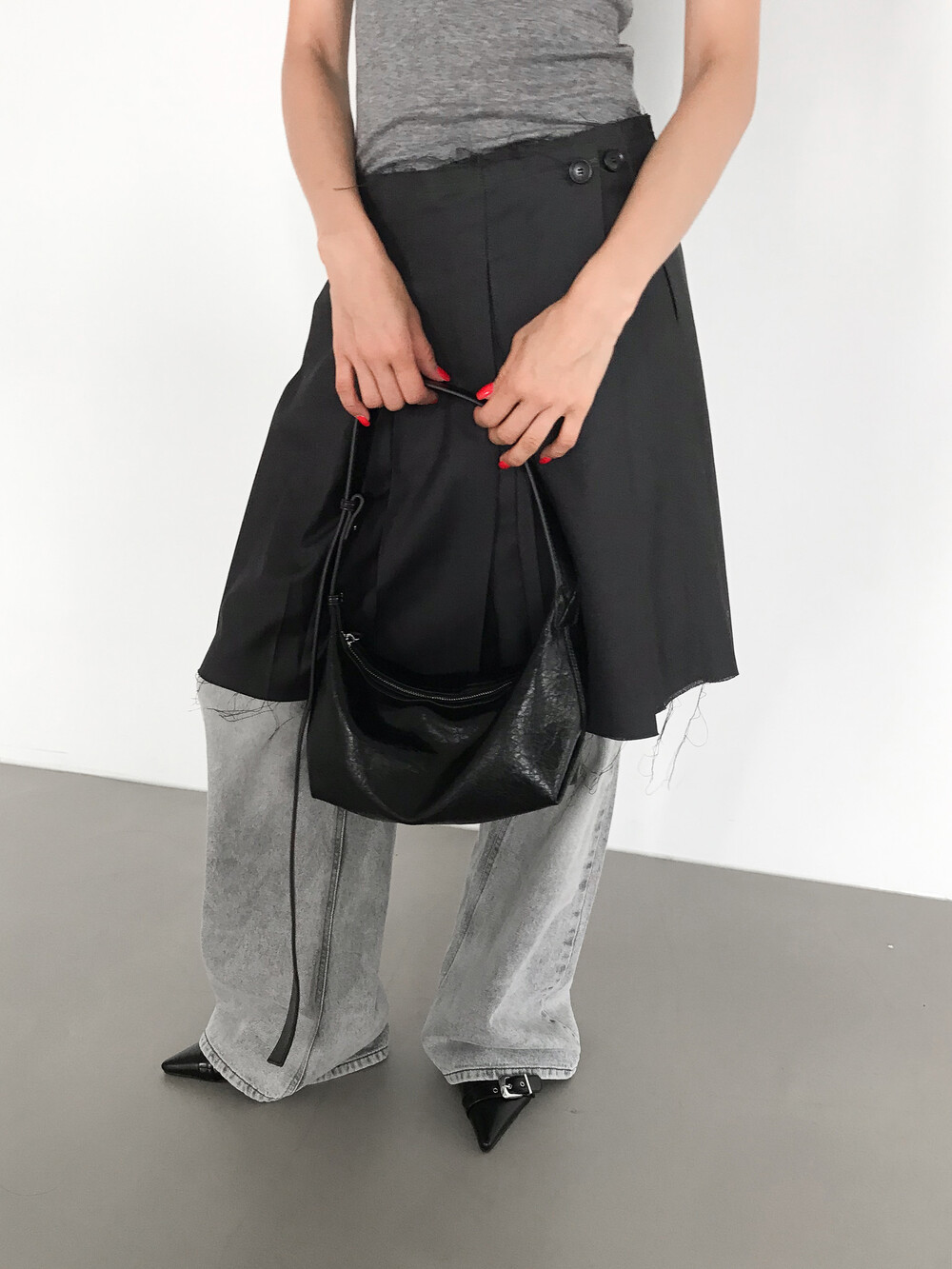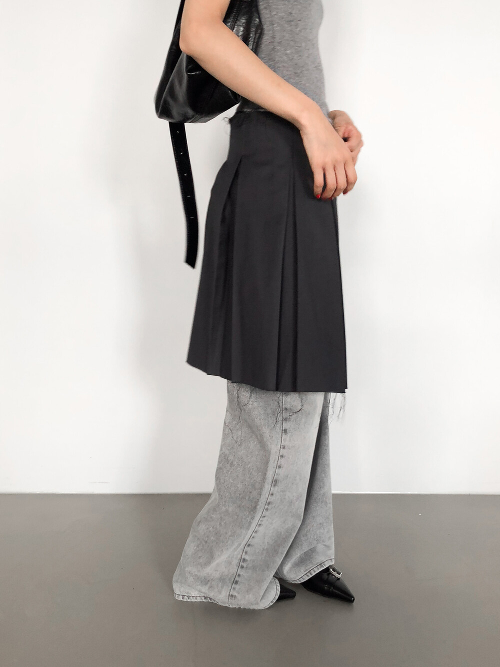 와이드한 실루엣과 발등에 루즈하게 쌓이는 기장감