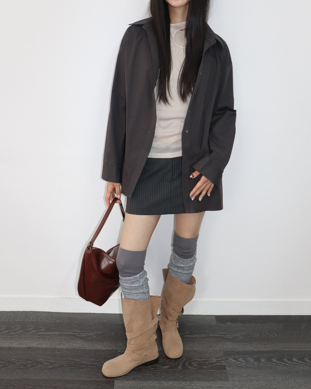 깔끔한 아웃핏이 특징.