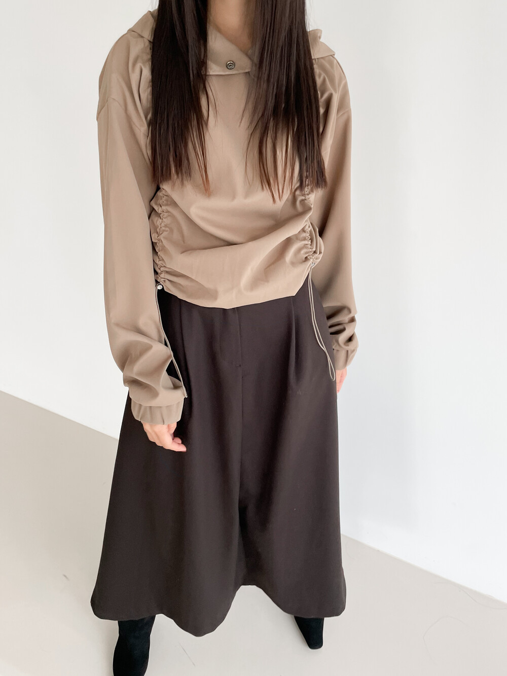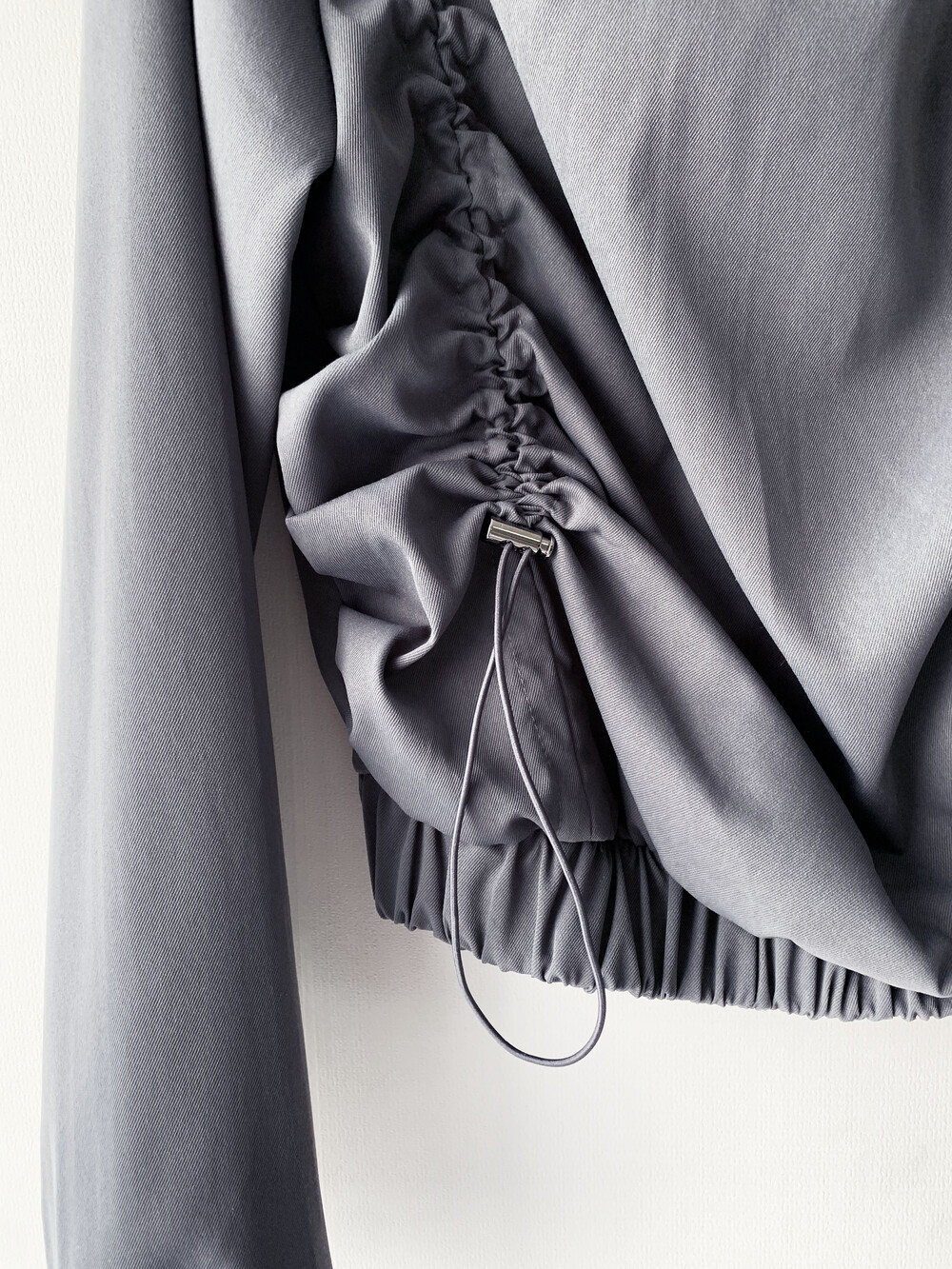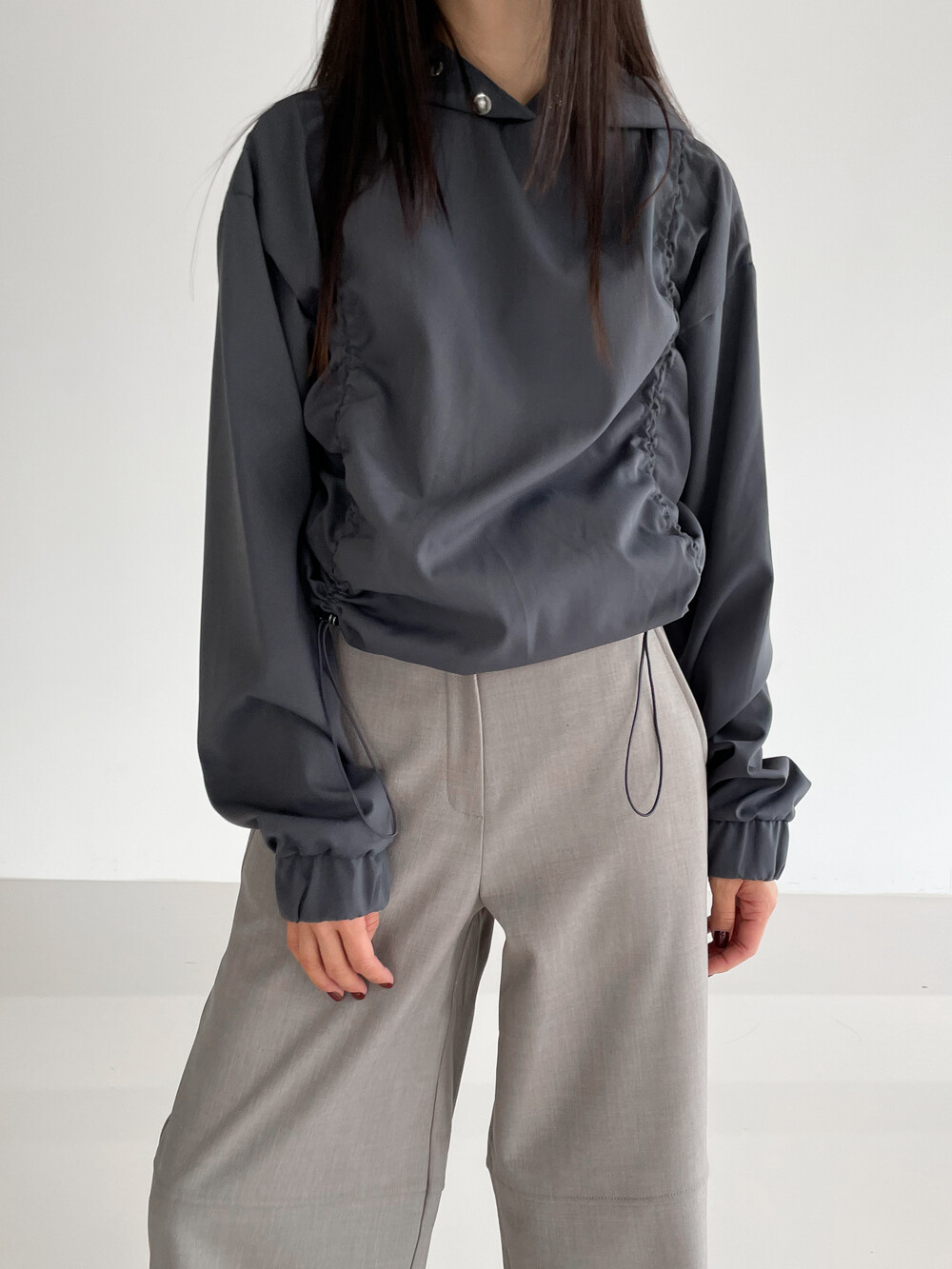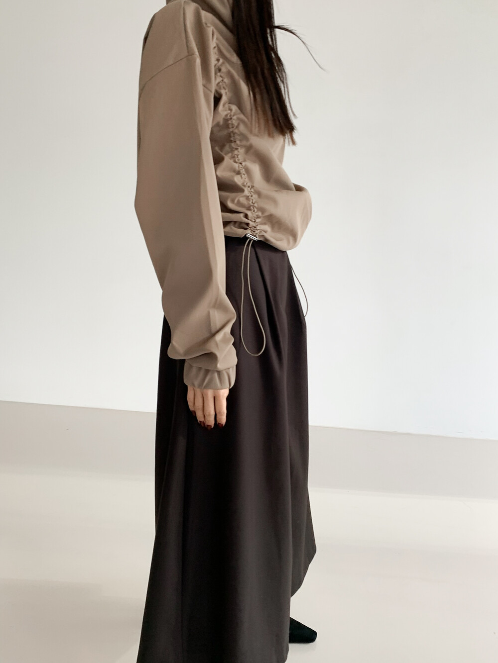 어깨라인부터 밑단까지 이어지는 셔링 디테일