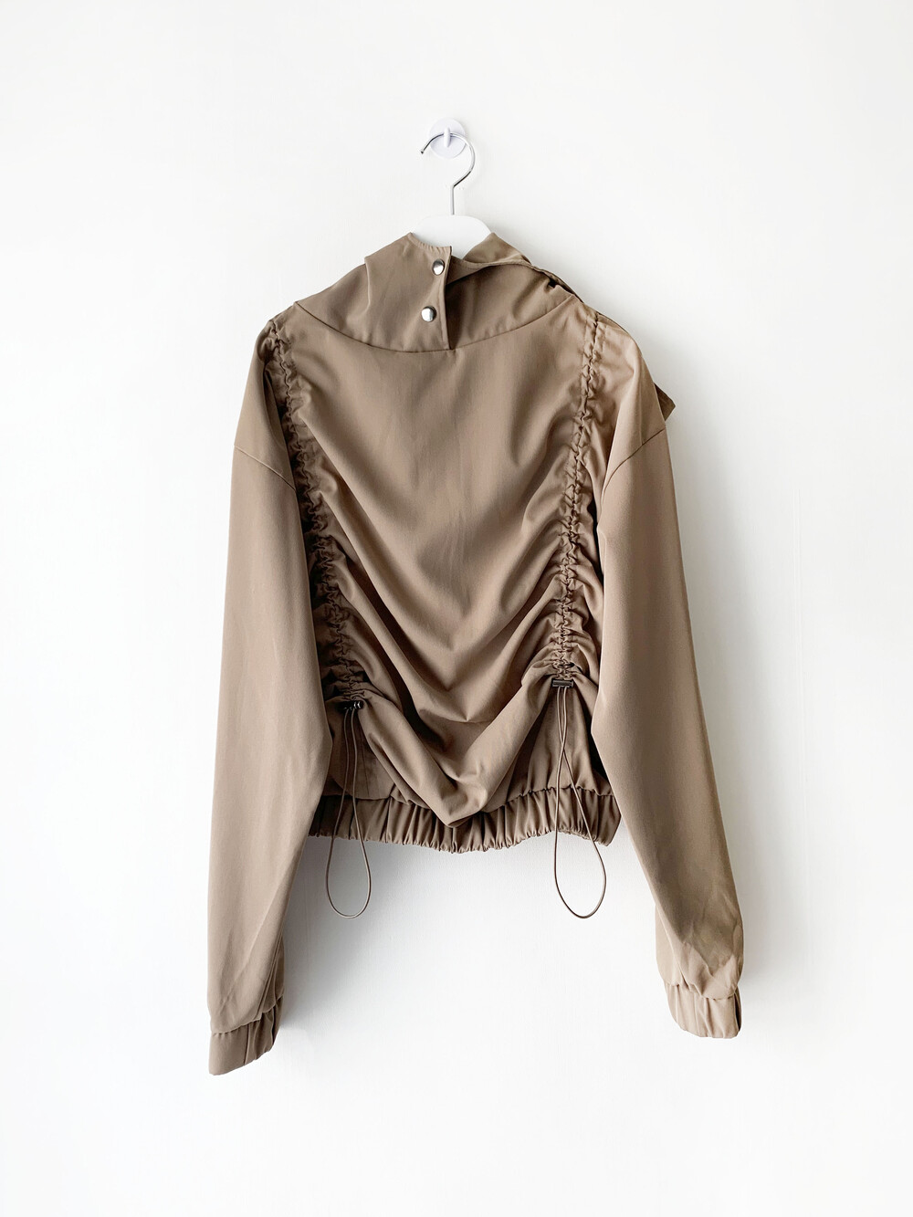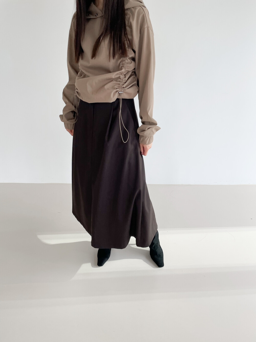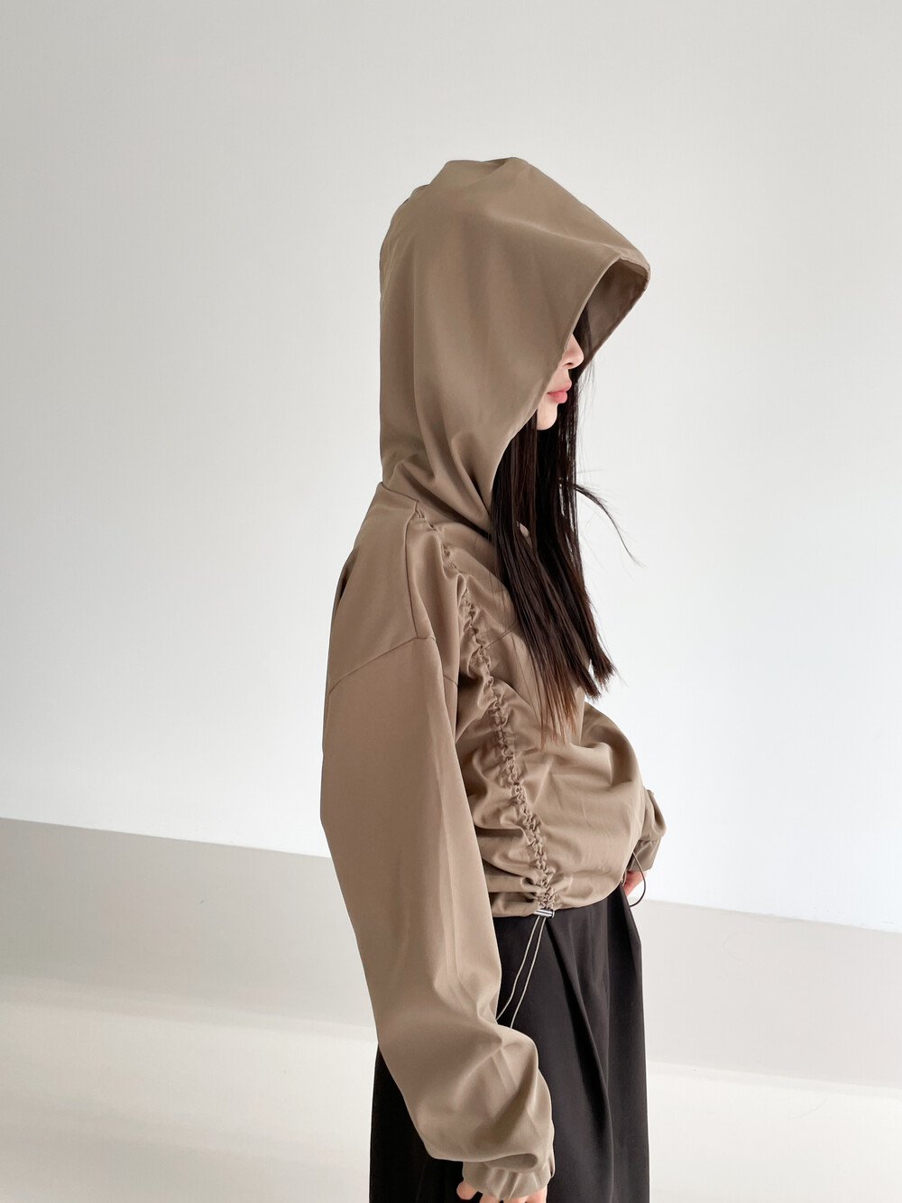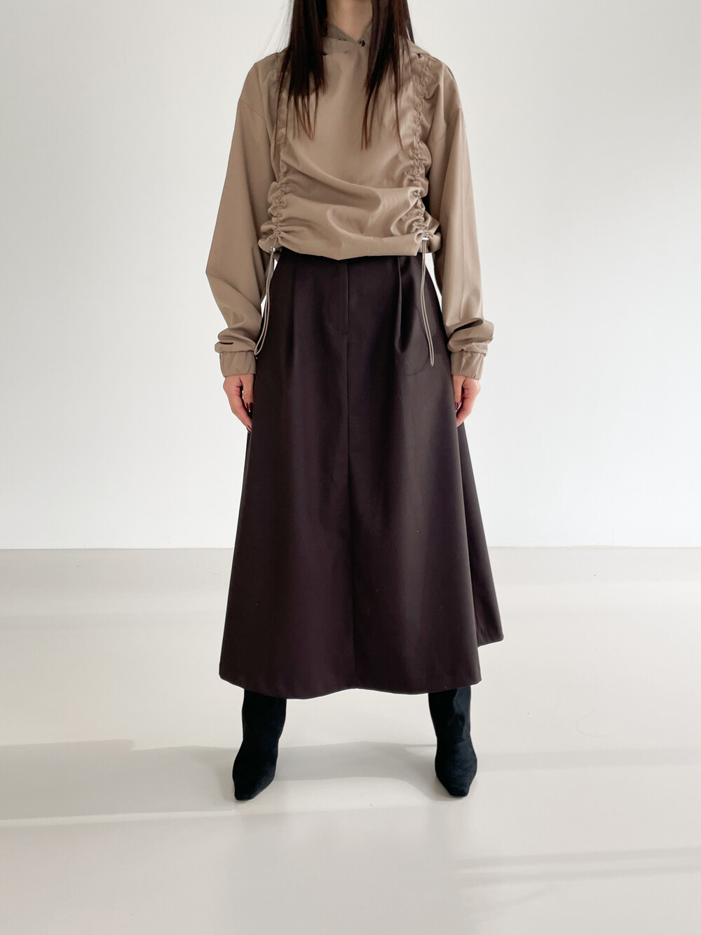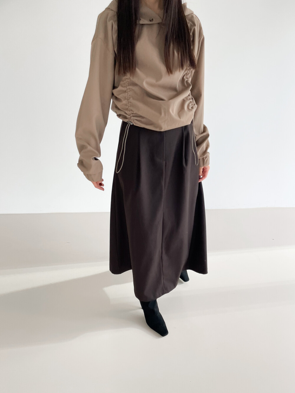 어깨라인부터 밑단까지 이어지는 셔링 디테일