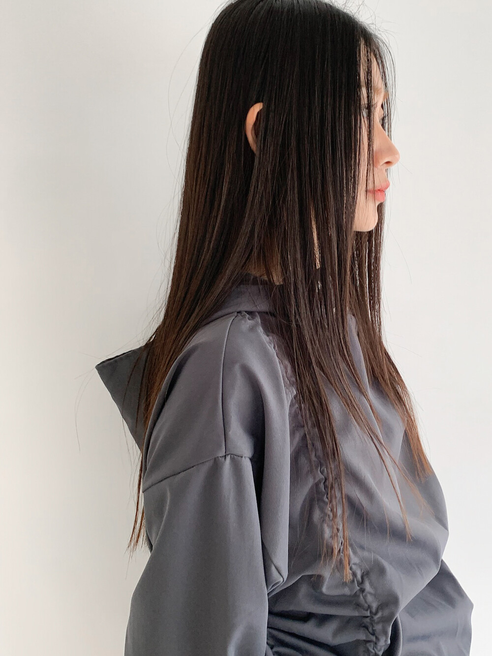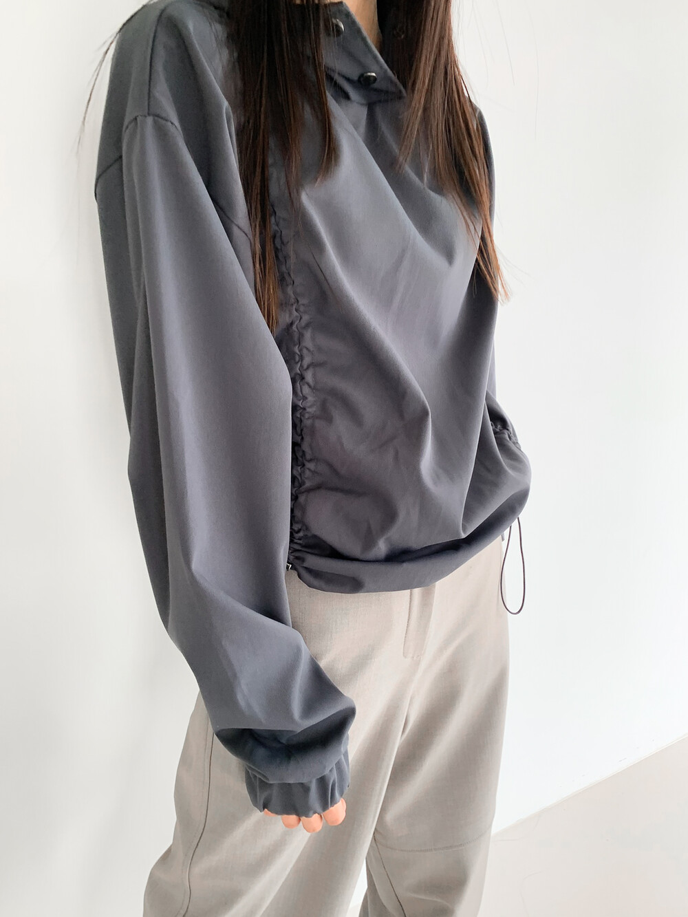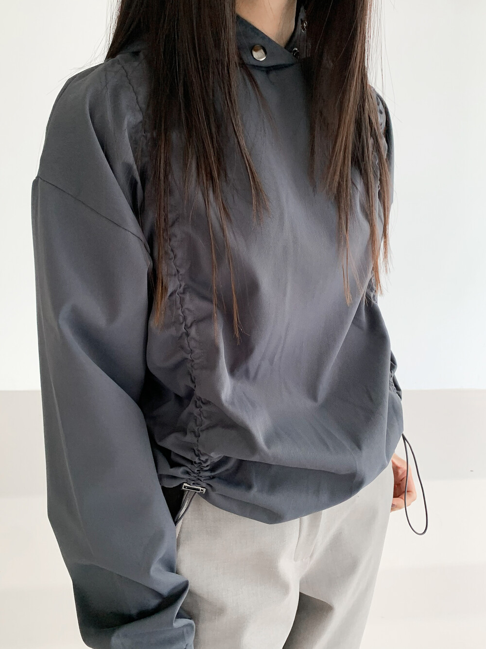 스냅 버튼으로 하이넥 또는 기본 넥 라인 이렇게, 투웨이로 연출 가능