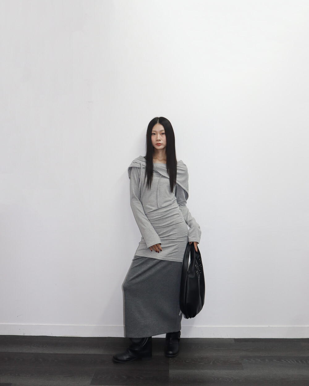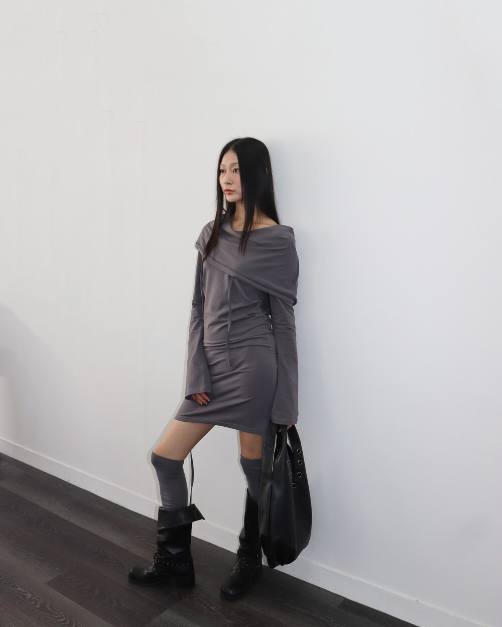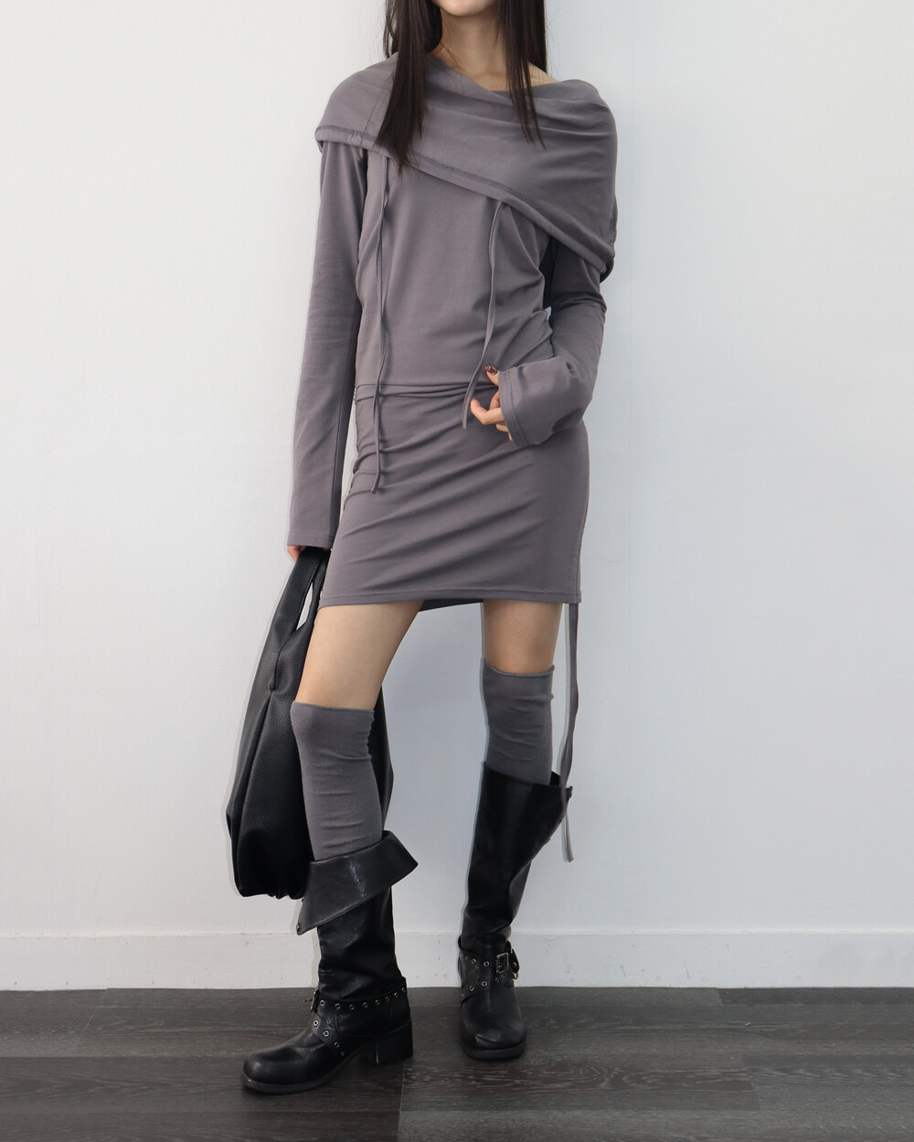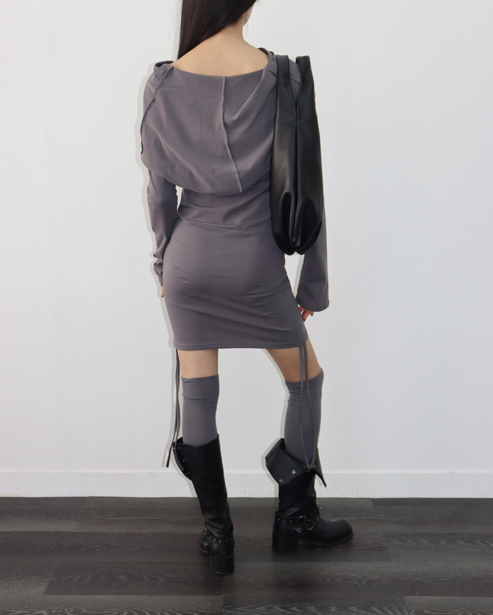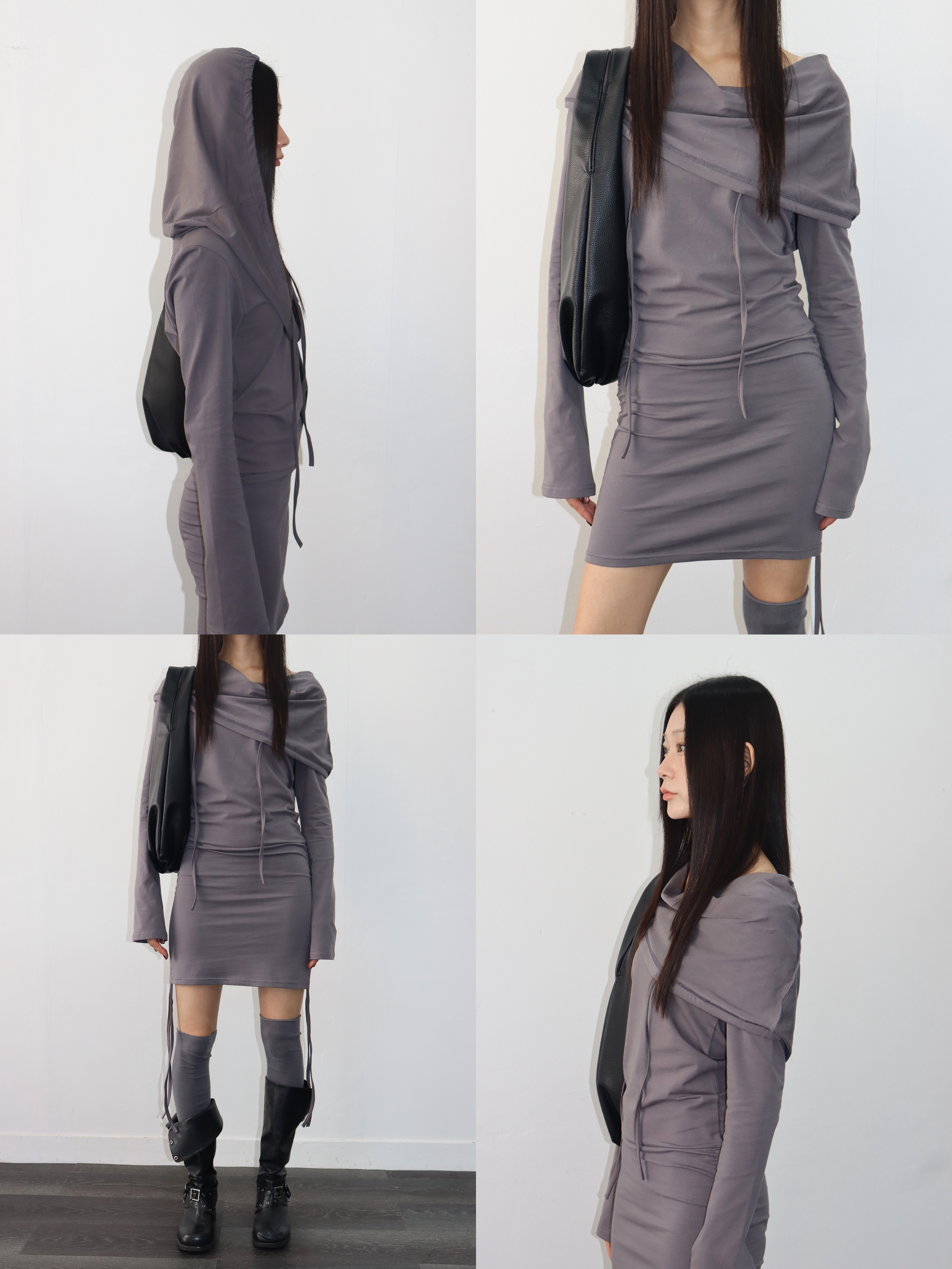 후드로도 오프숄더로도 활용이 가능한 원피스