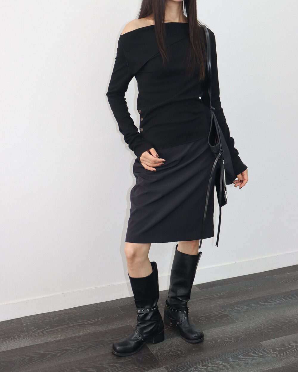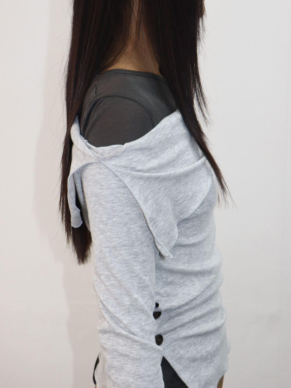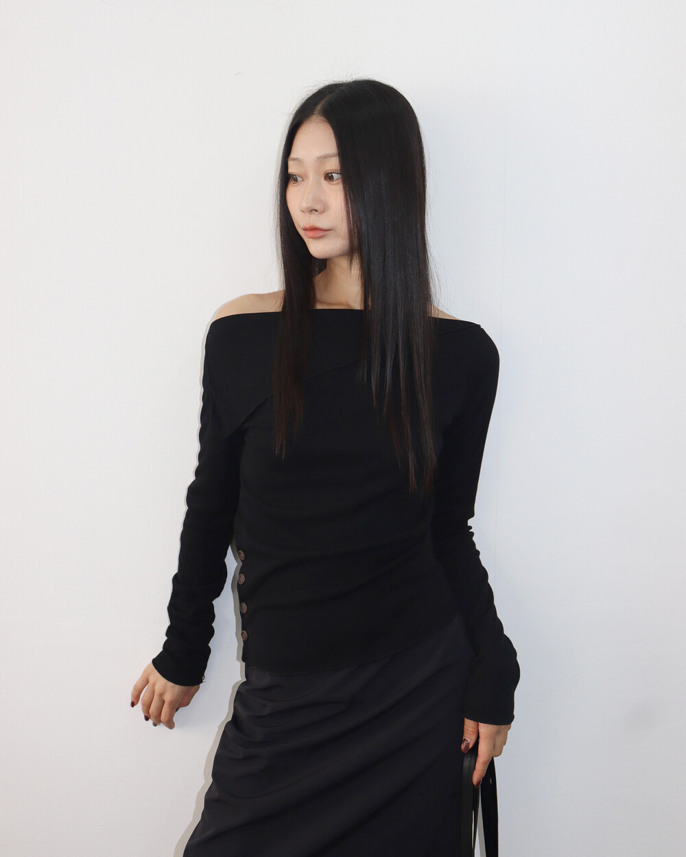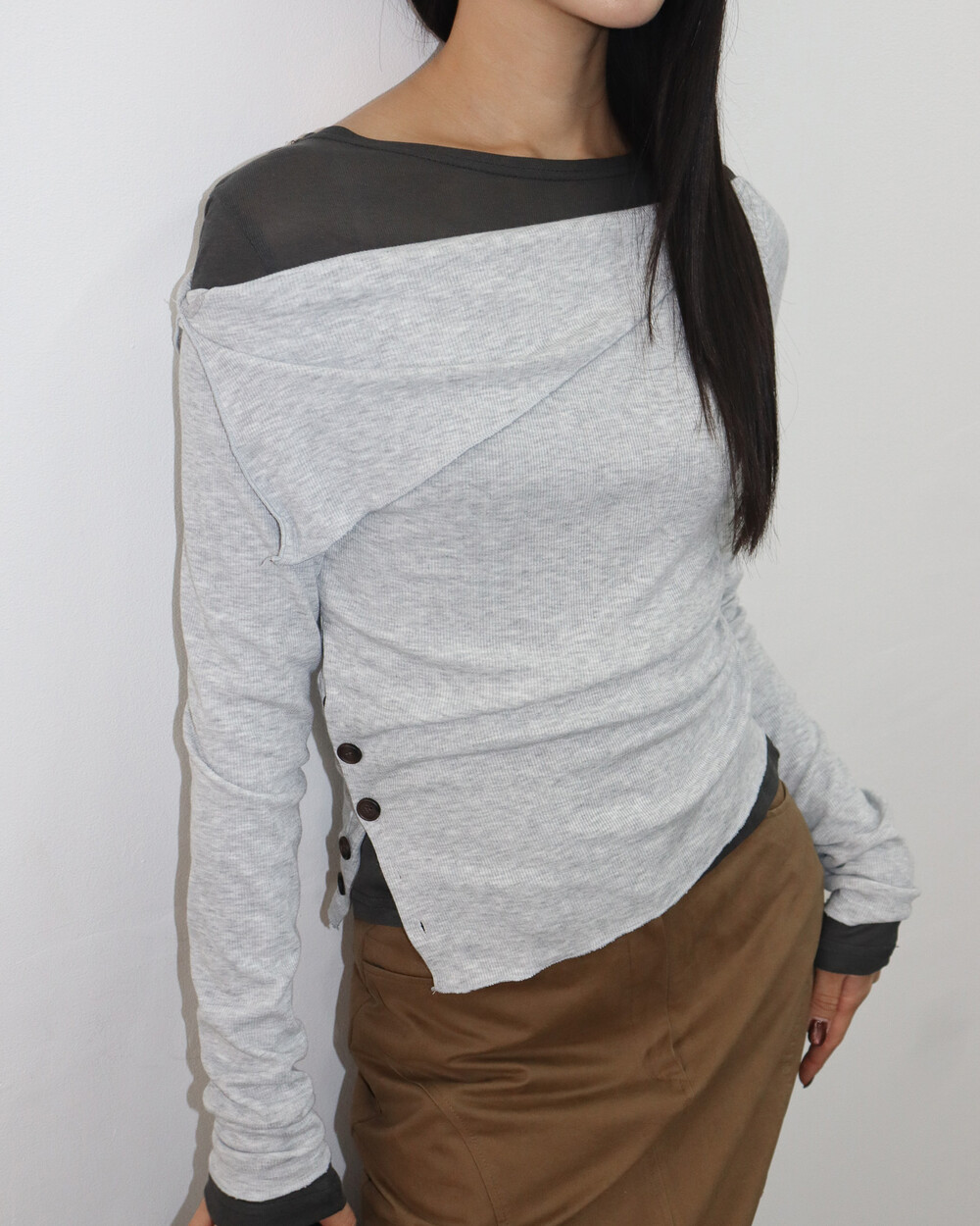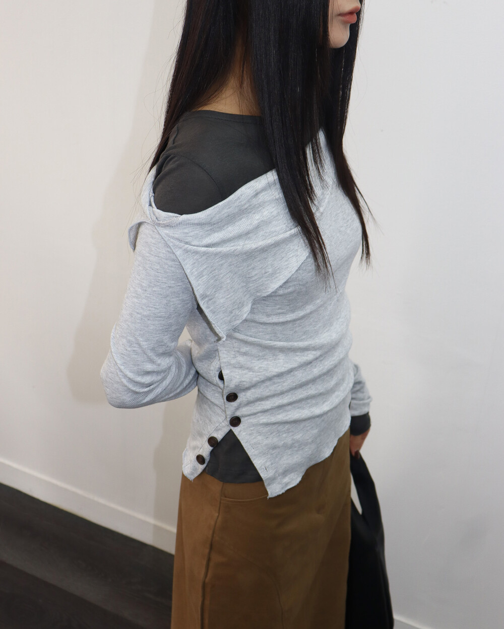 저희처럼 티셔츠와 레이어링해줘도 오프숄더의 느끼함을 덜어줄 수 있어요