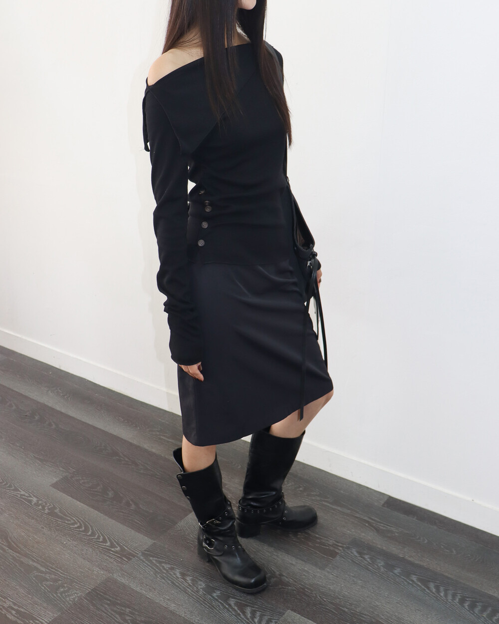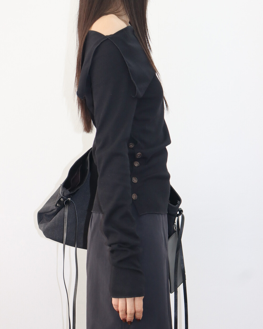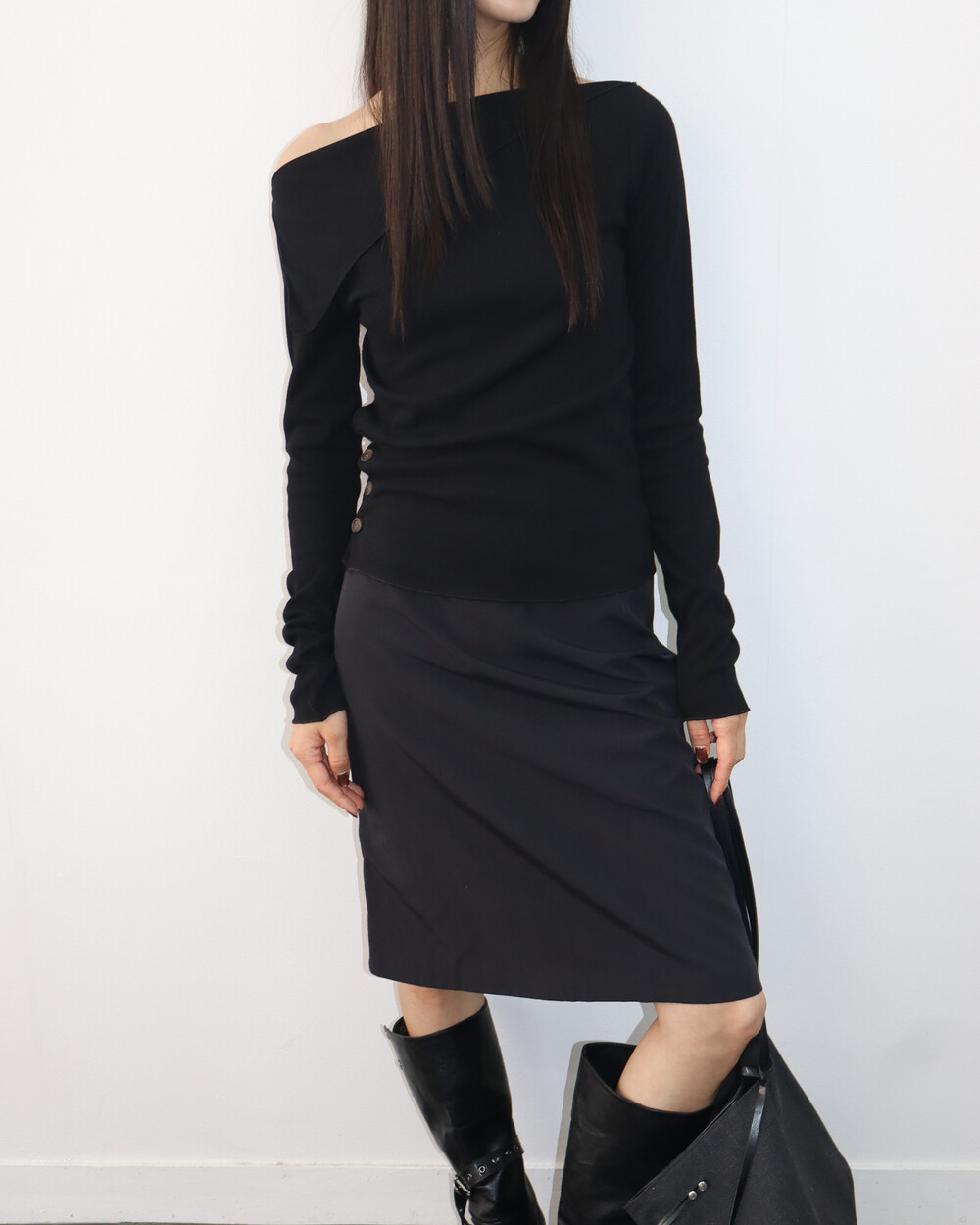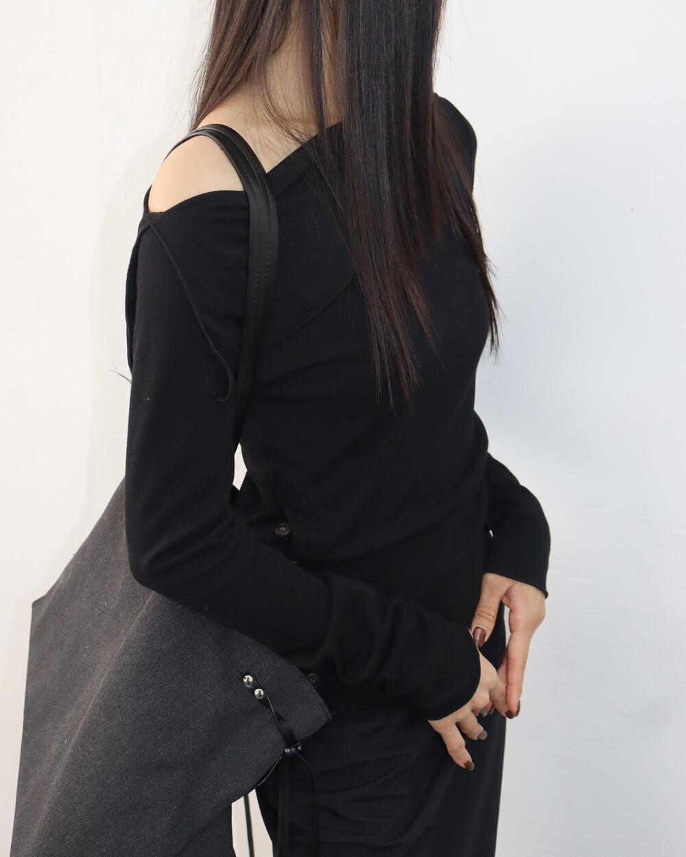 와이드한 숄더 라인이 어깨를 가볍게 감싸주어