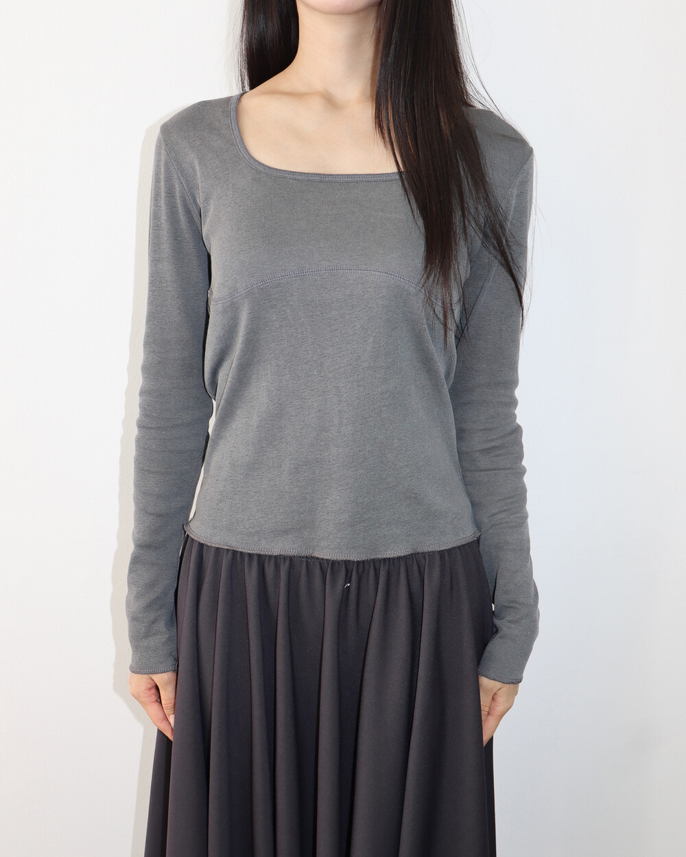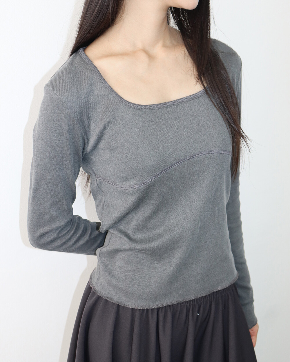 절개 라인이 바스트 라인을 따라 퍼져있어