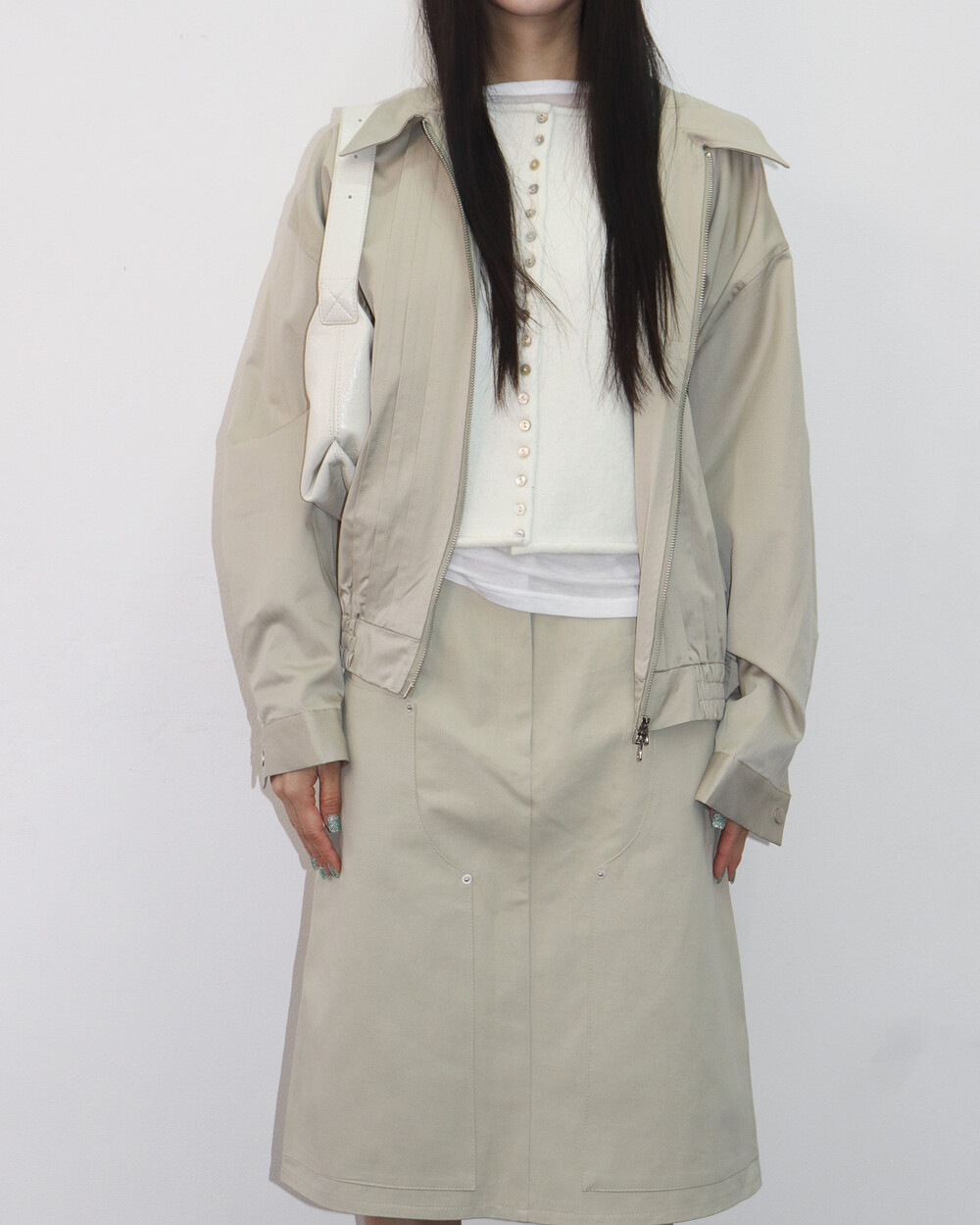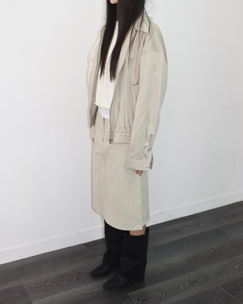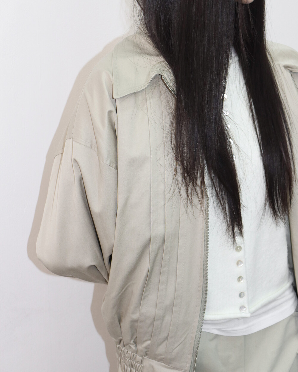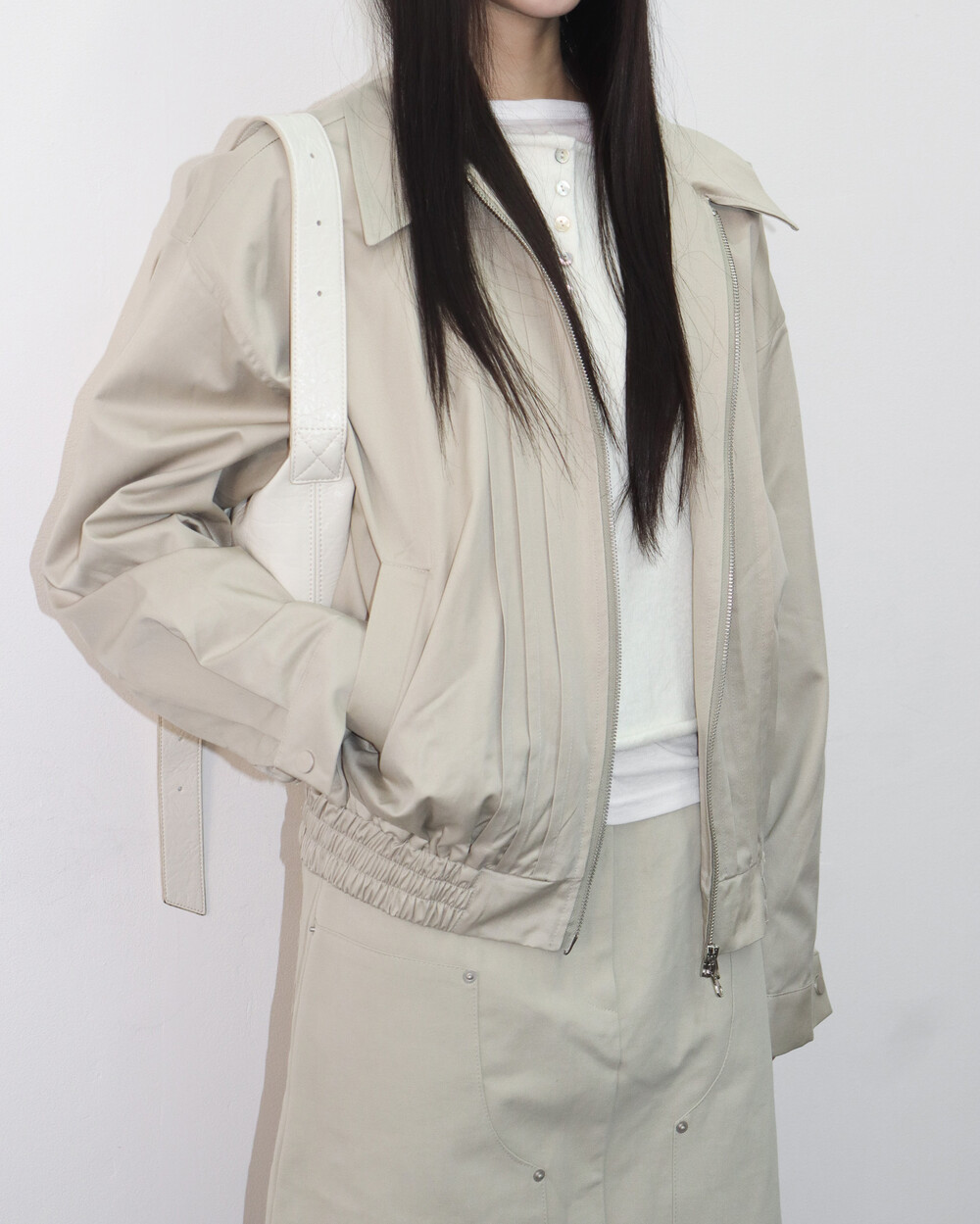 앞판 핀턱 디테일이 섬세한 포인트가 되어주며,