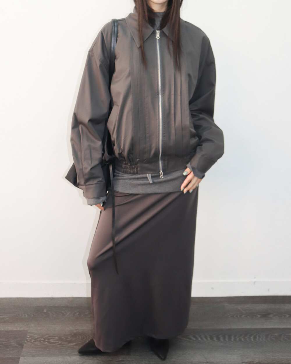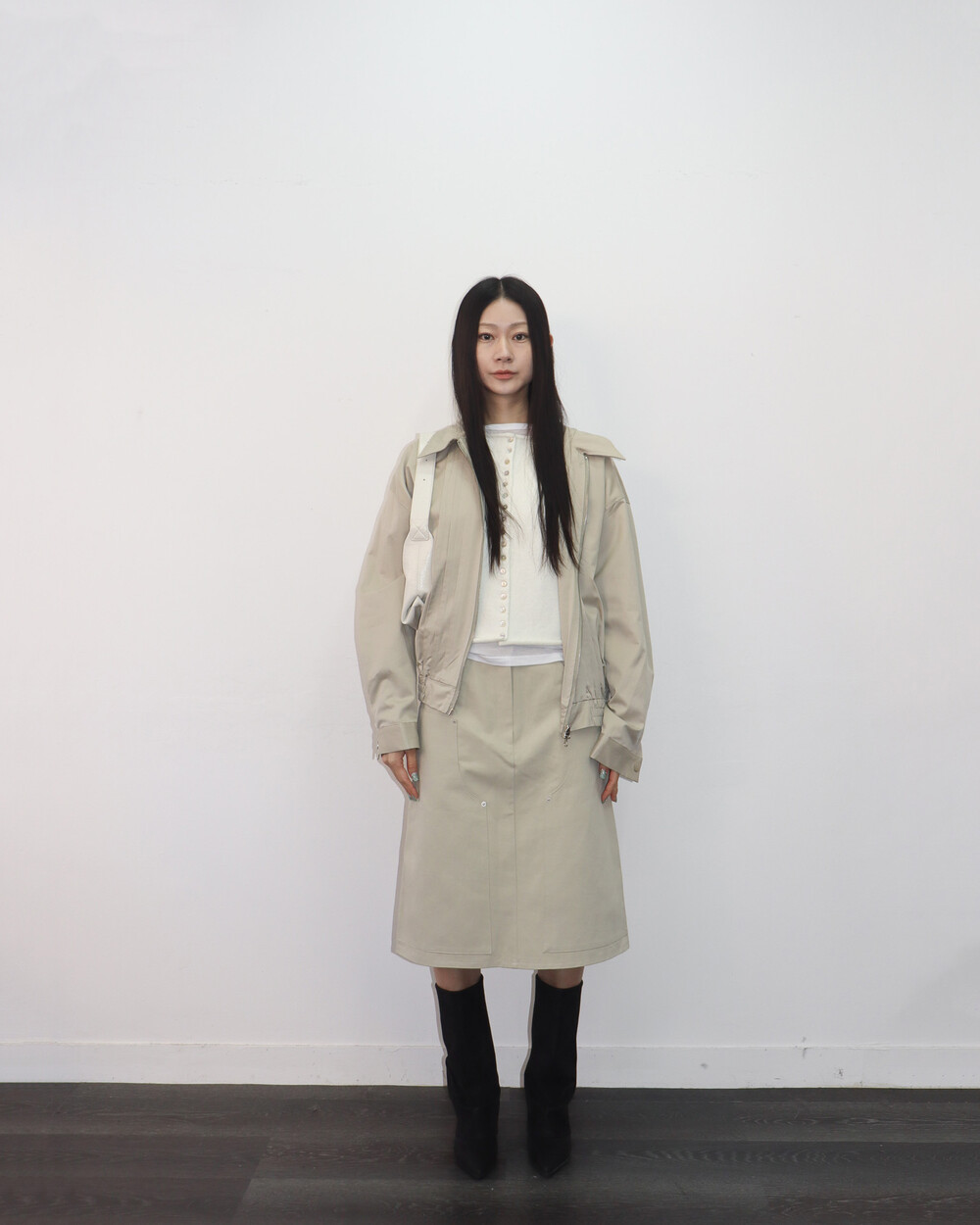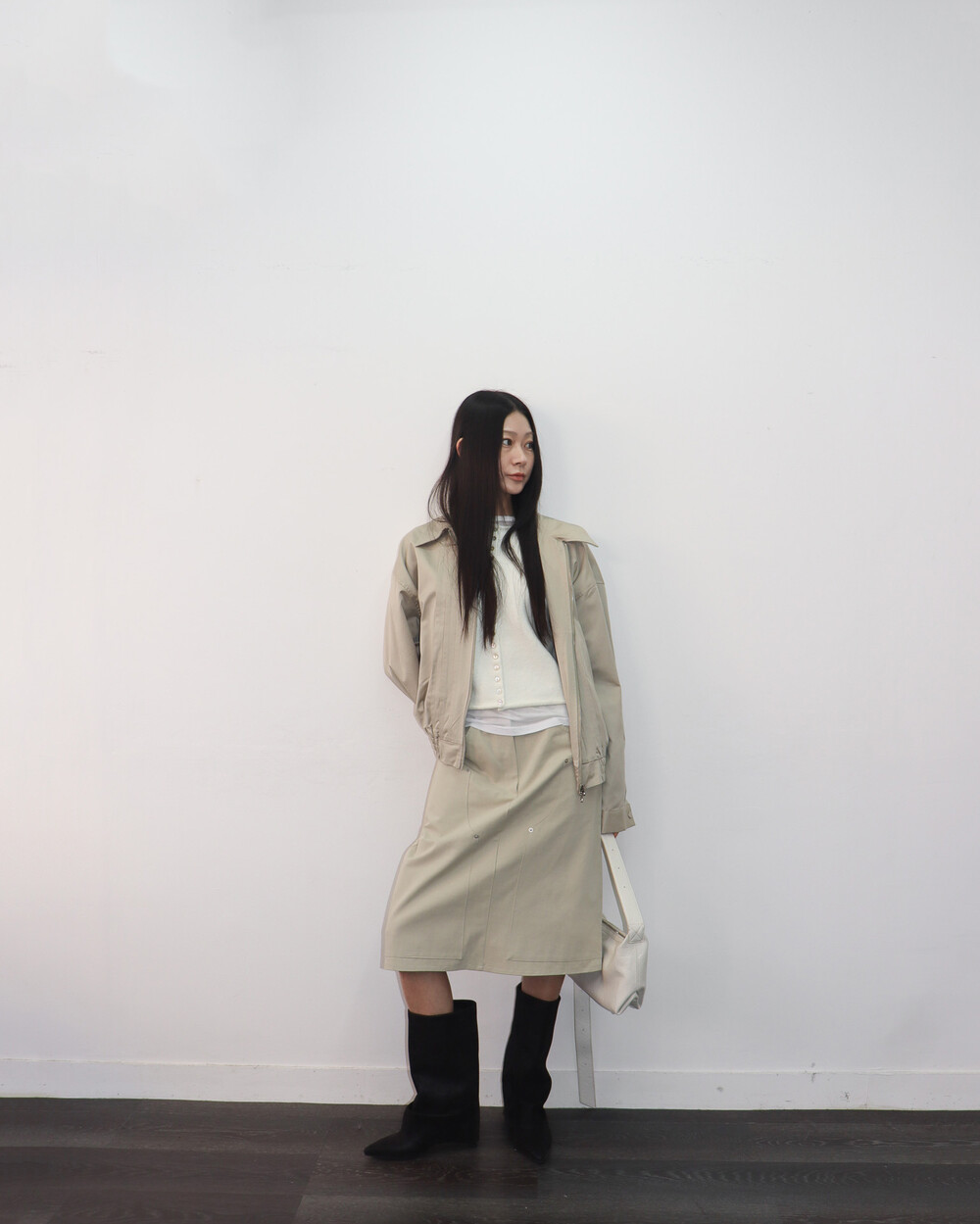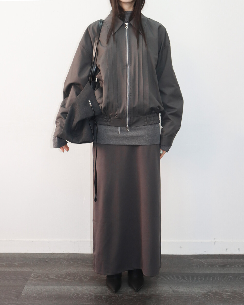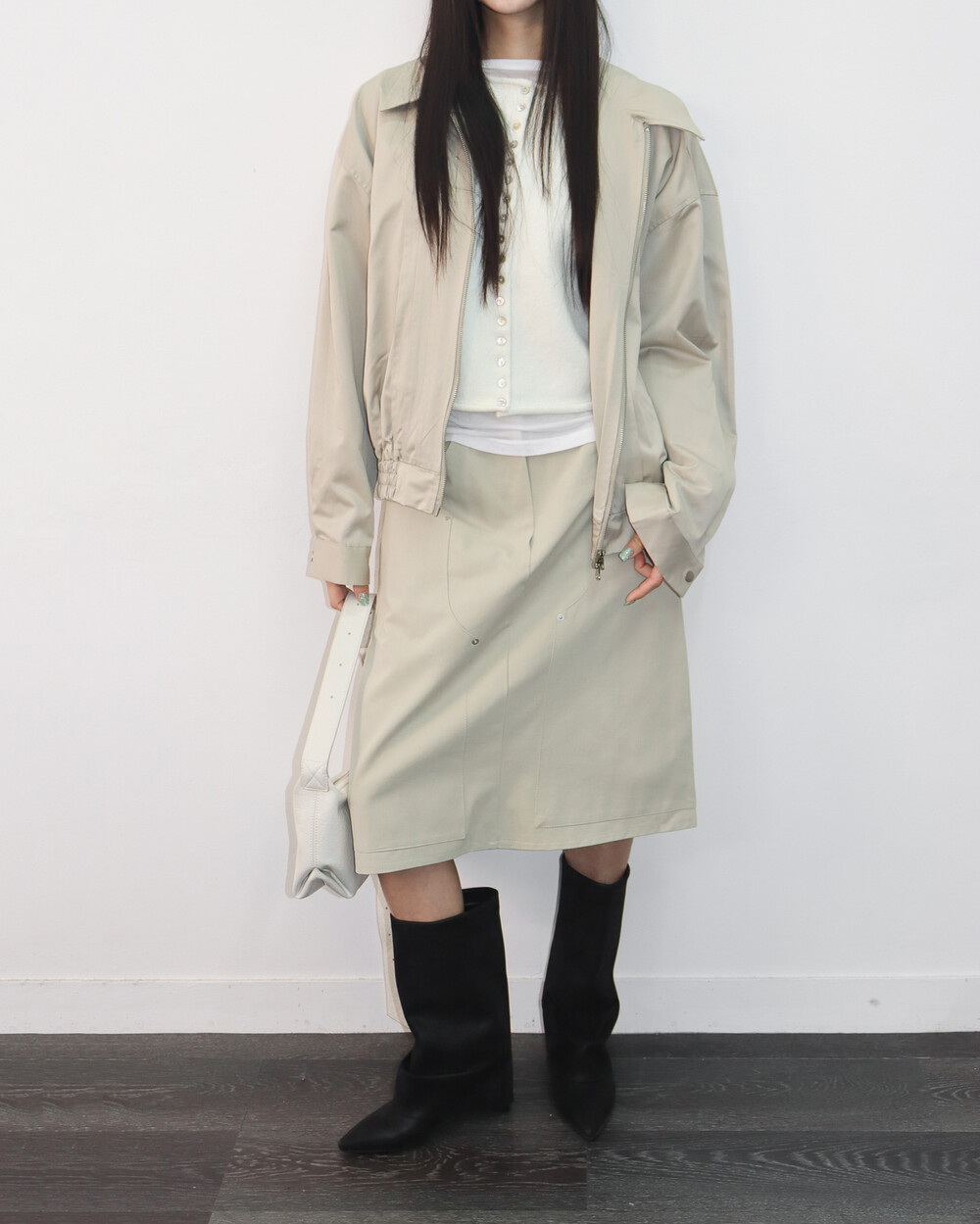 앞판 핀턱 디테일이 섬세한 포인트가 되어주며,