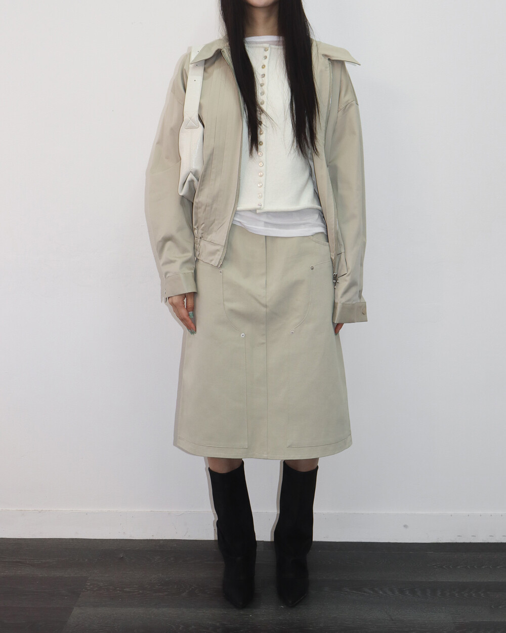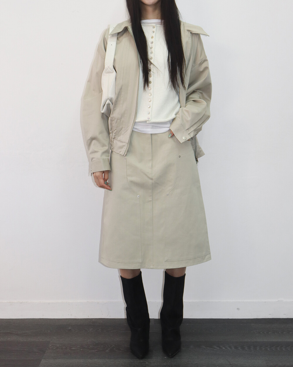 - TOM MIDI SKIRT (BEIGE)
