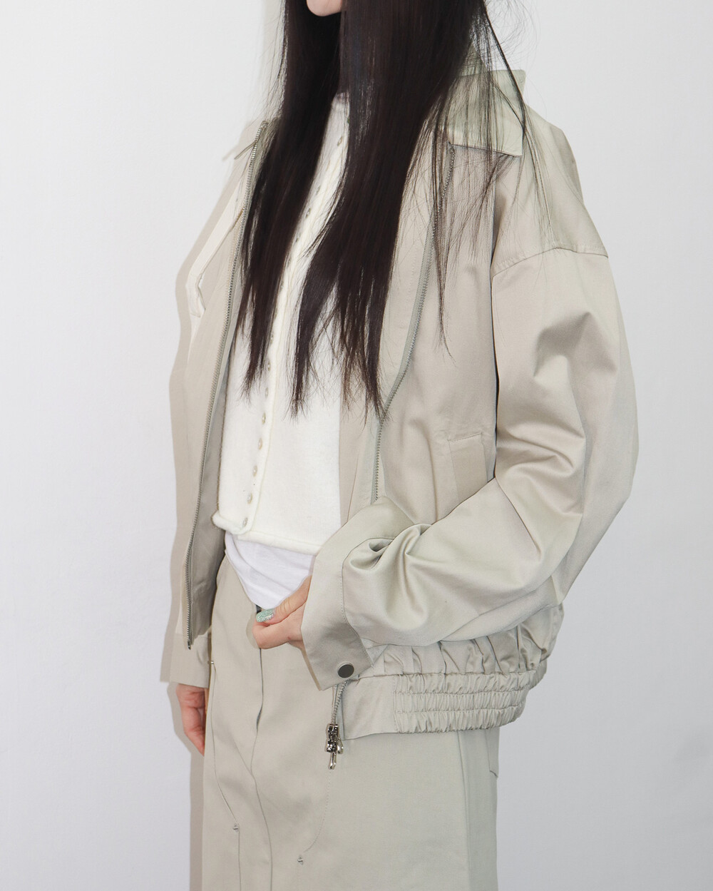 2-way 지퍼, 소매의 버튼도 깔끔하게 제작되어