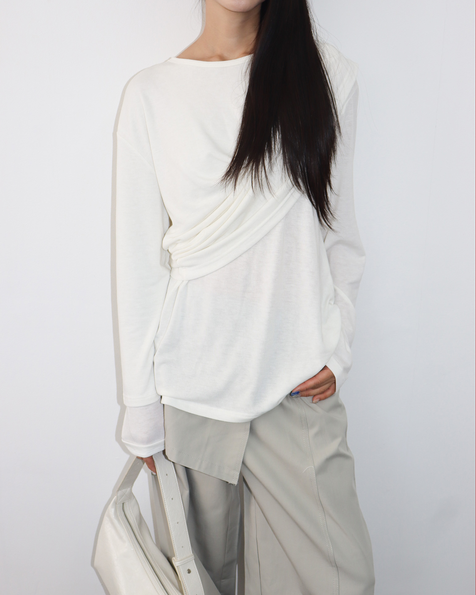 티셔츠를 걷어낸 주름이 숄 느낌처럼 표현이 된답니다