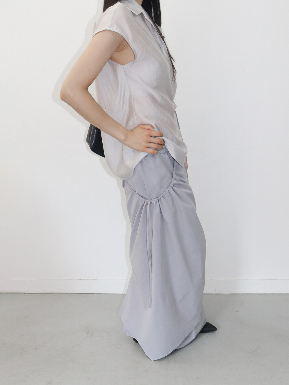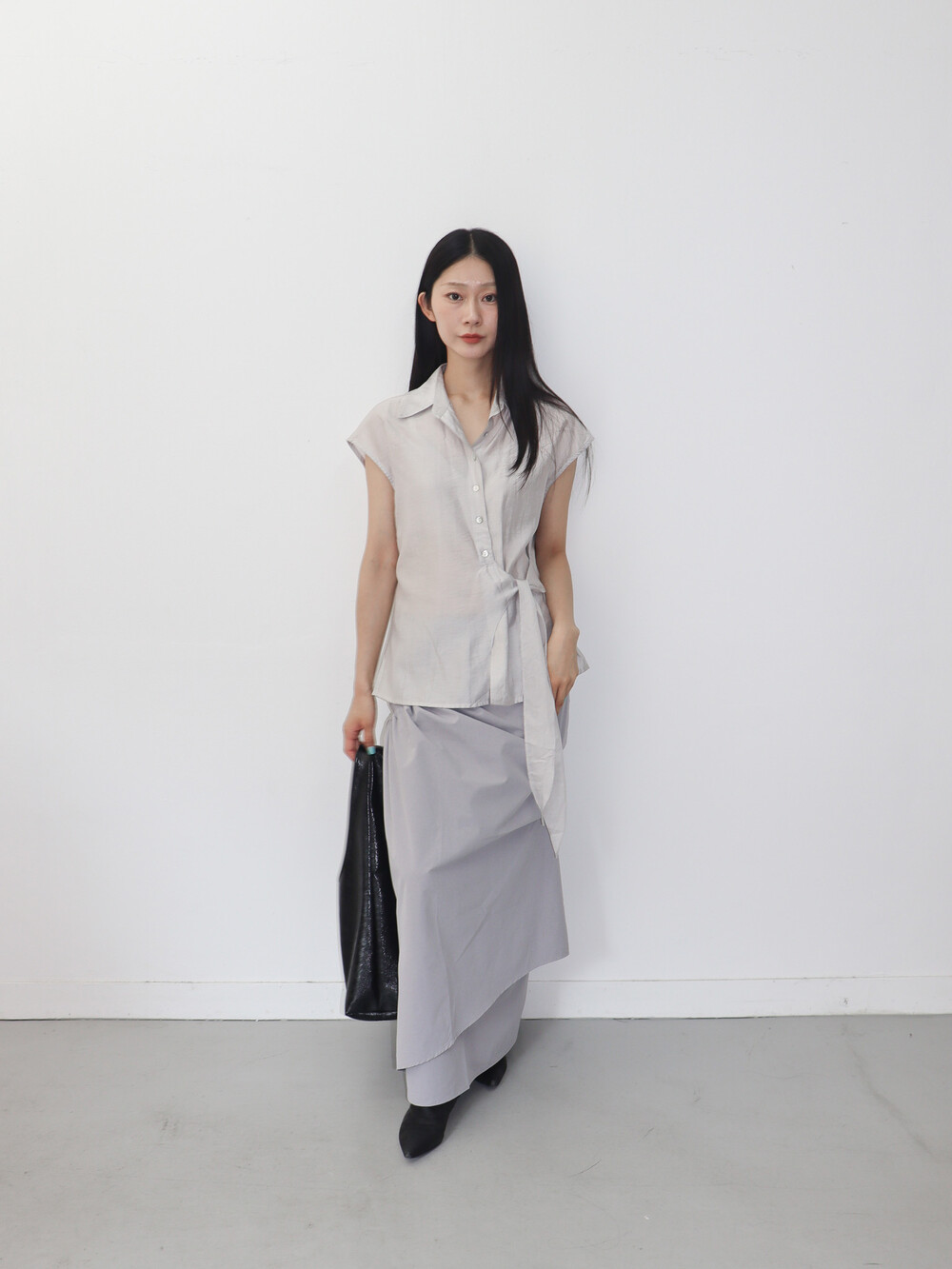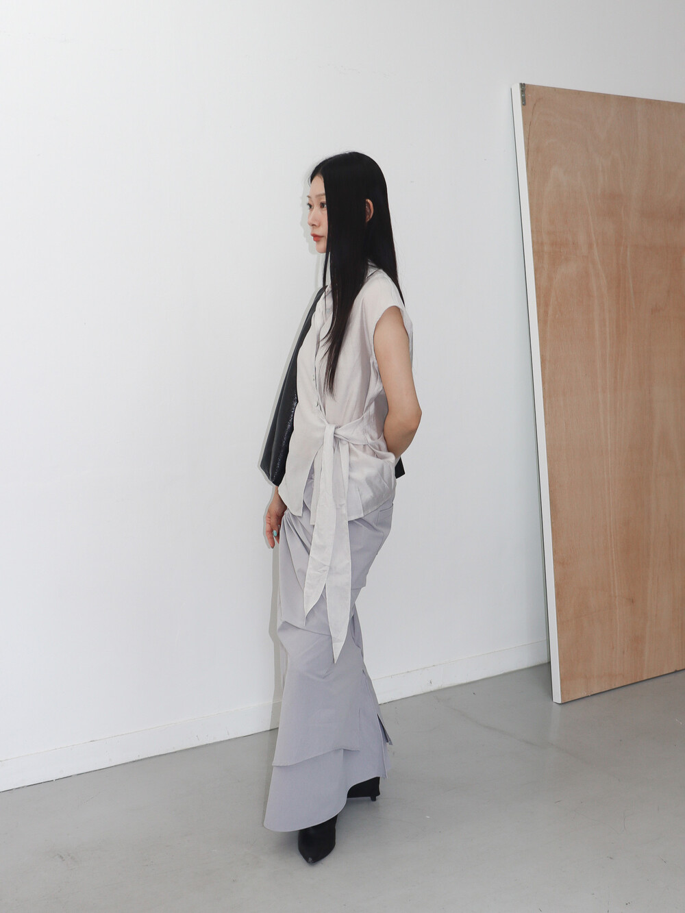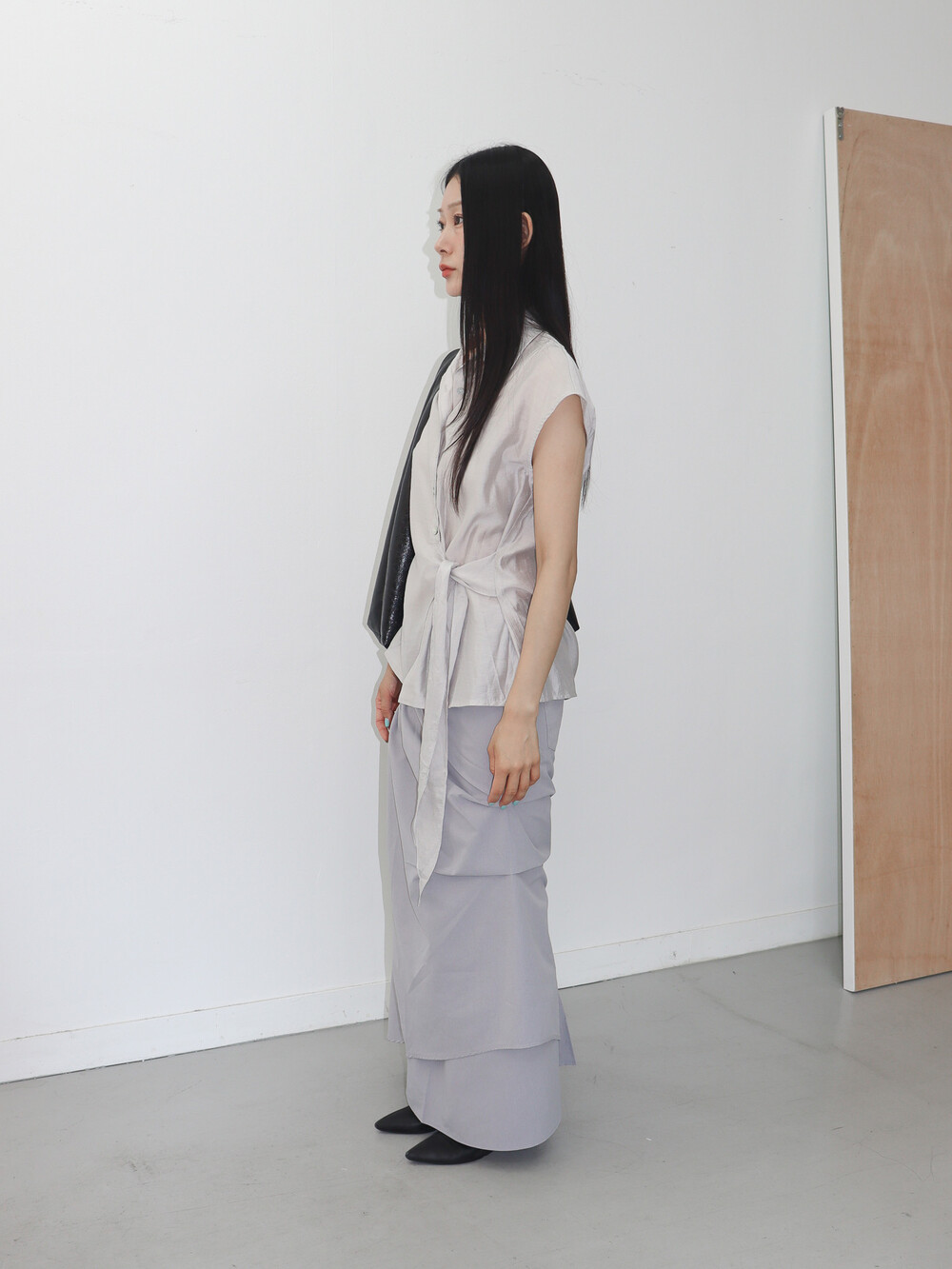 또한 핀턱을 여러 겹 잡아 흐르듯 떨어지는 실루엣이