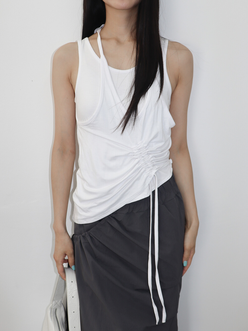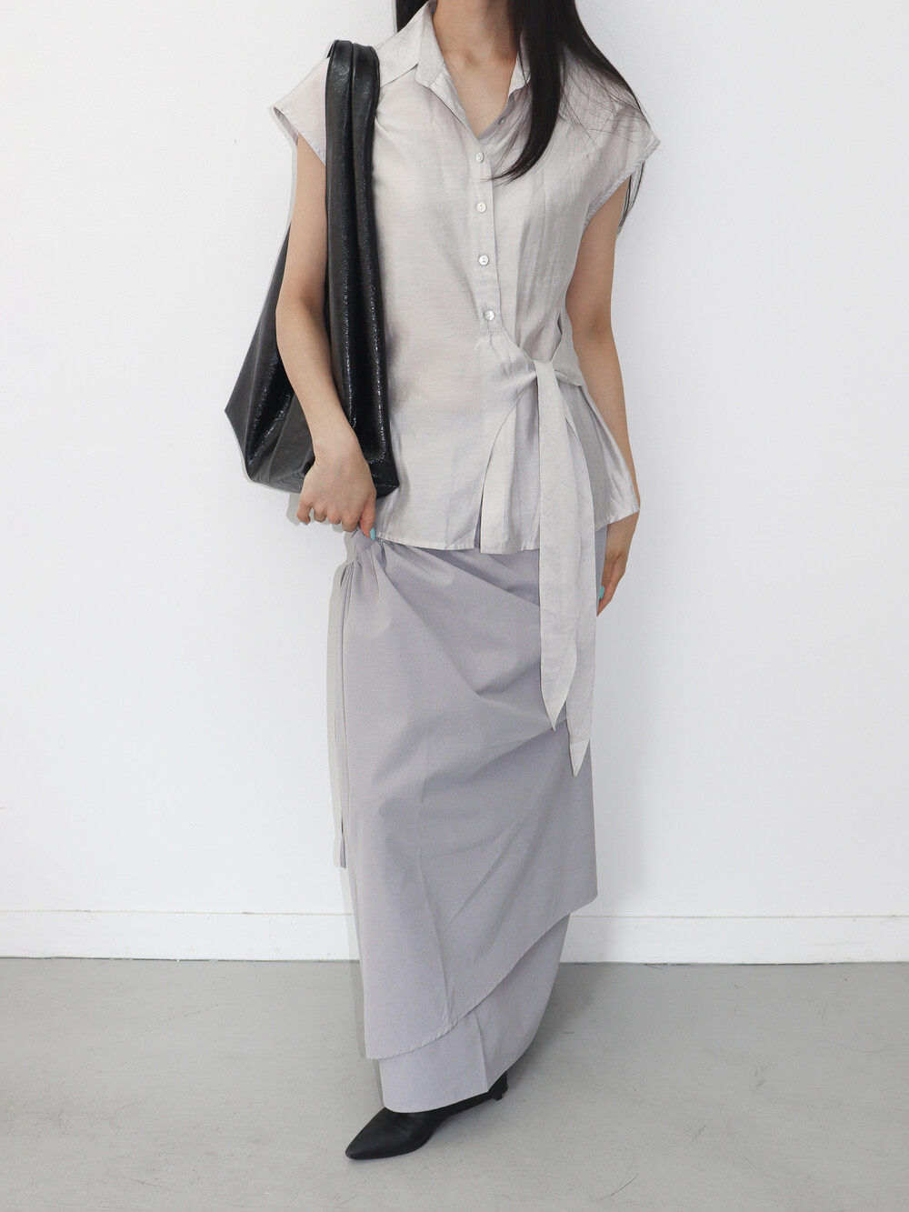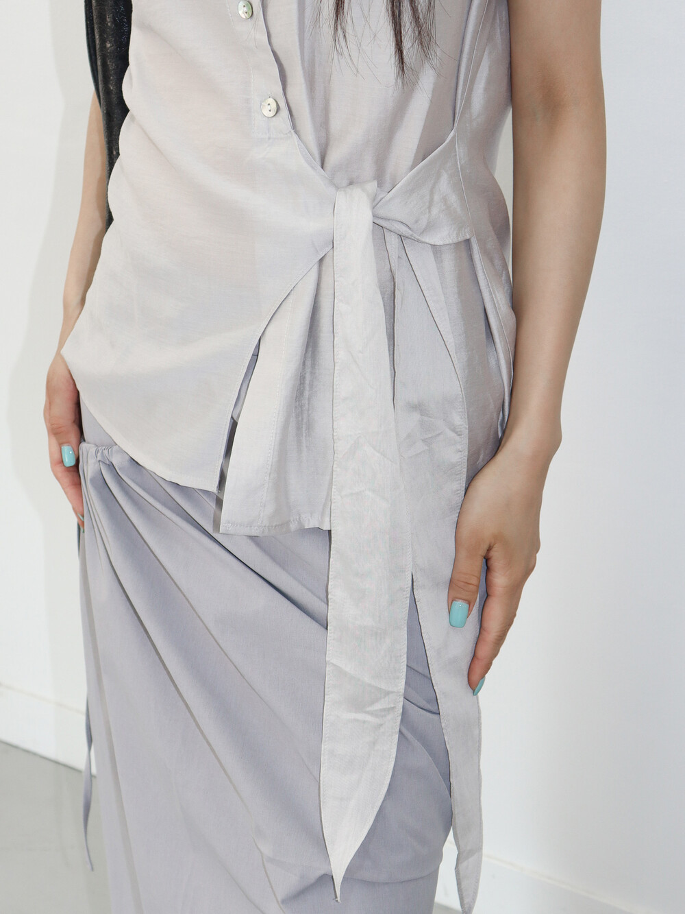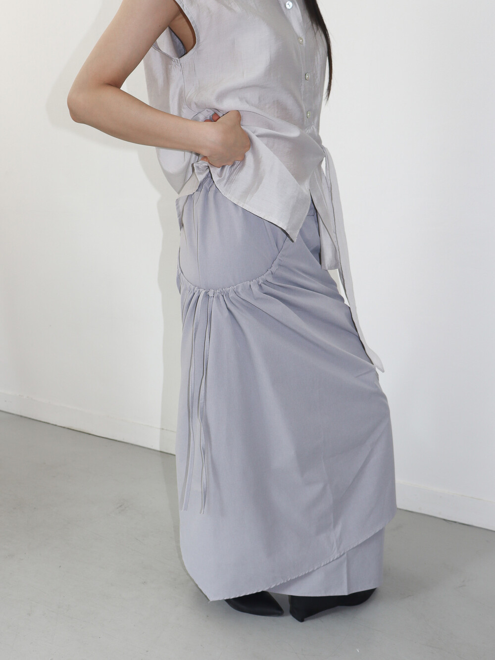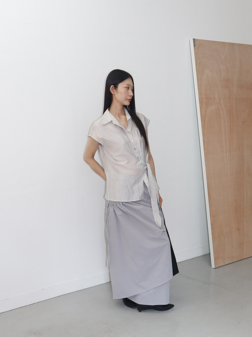 또한 핀턱을 여러 겹 잡아 흐르듯 떨어지는 실루엣이