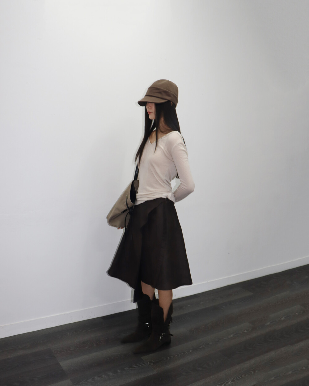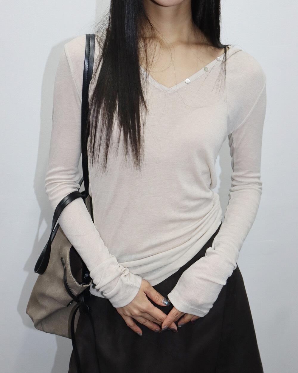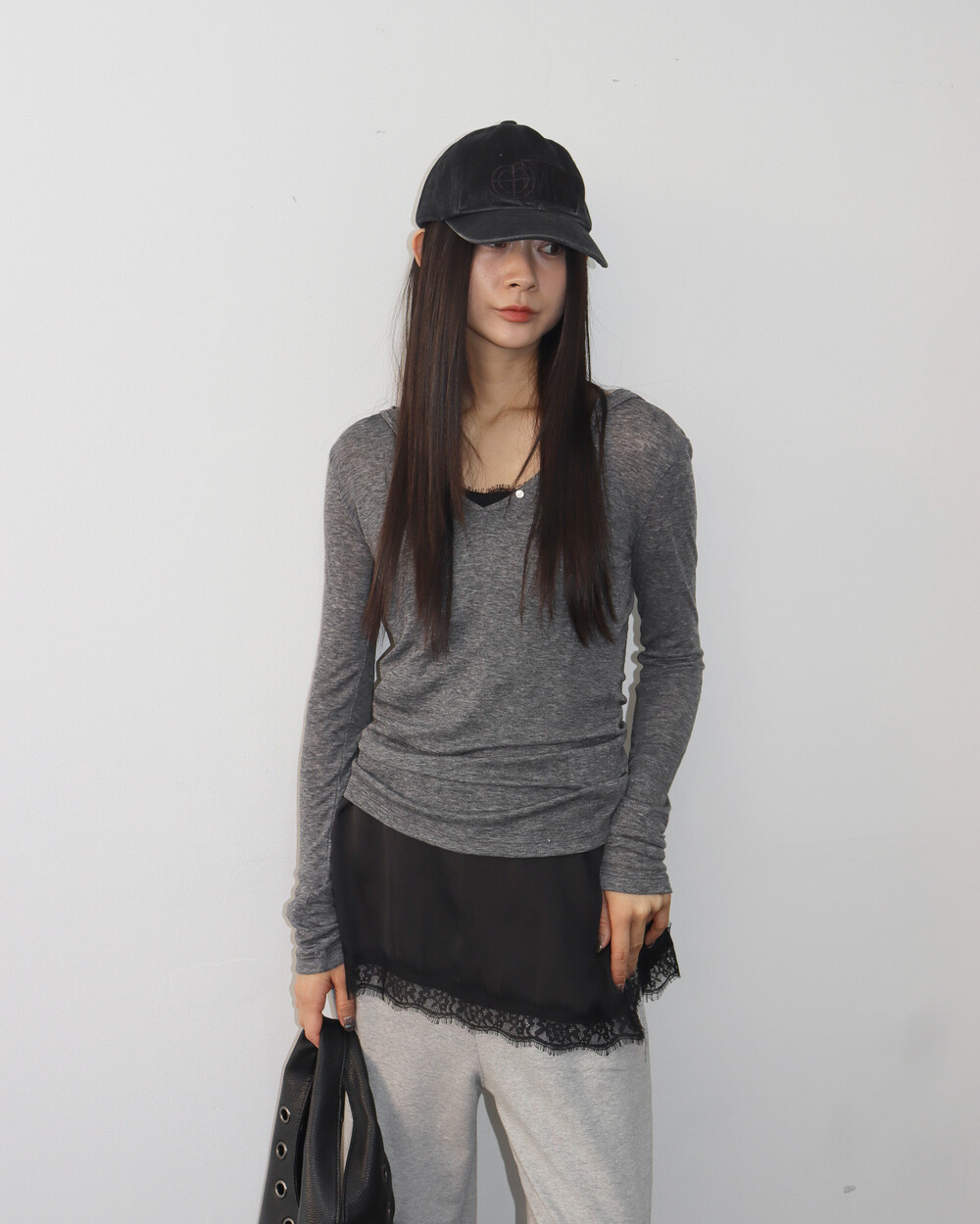 브이넥 라인으로 떨어져 여리여리함은 덤