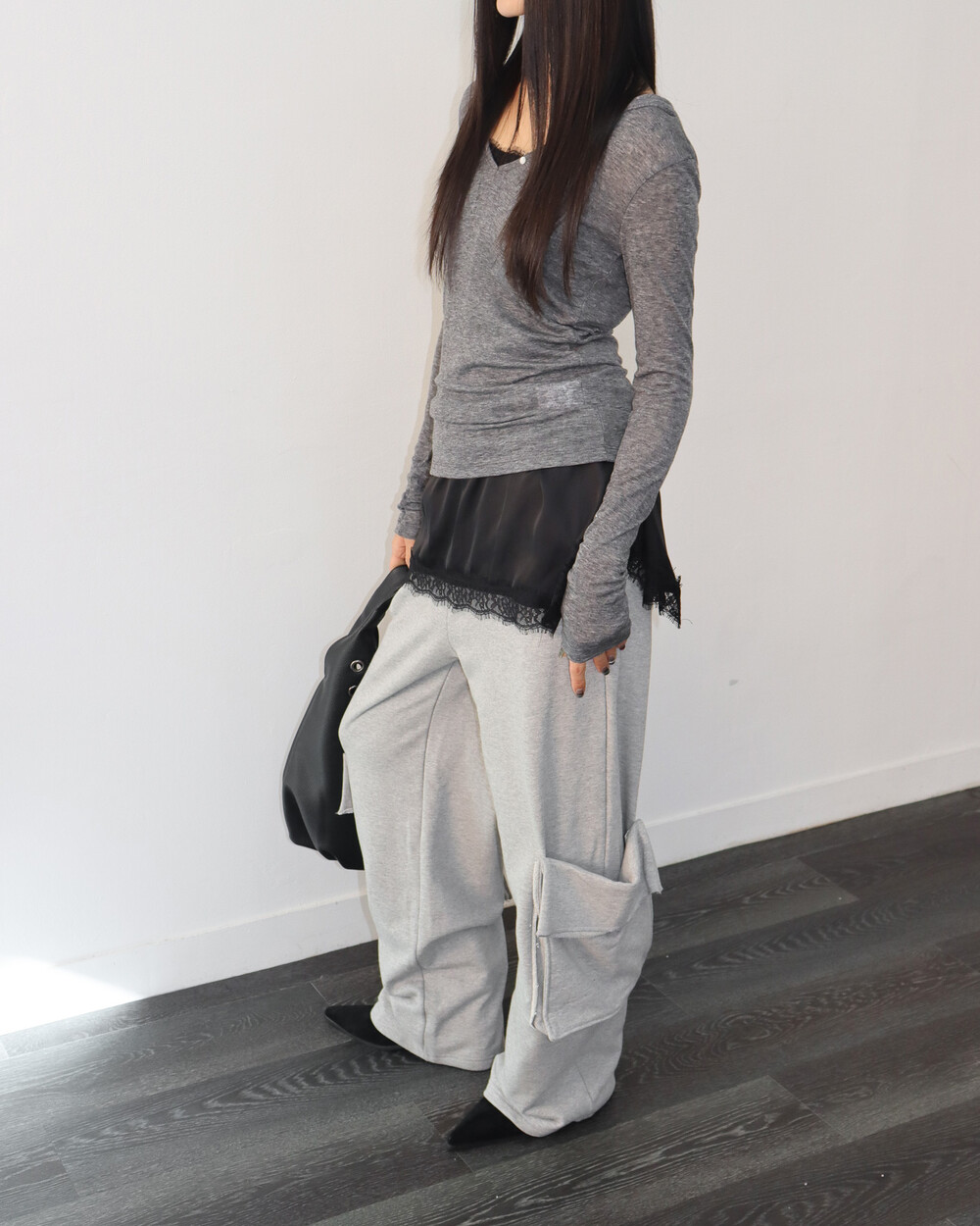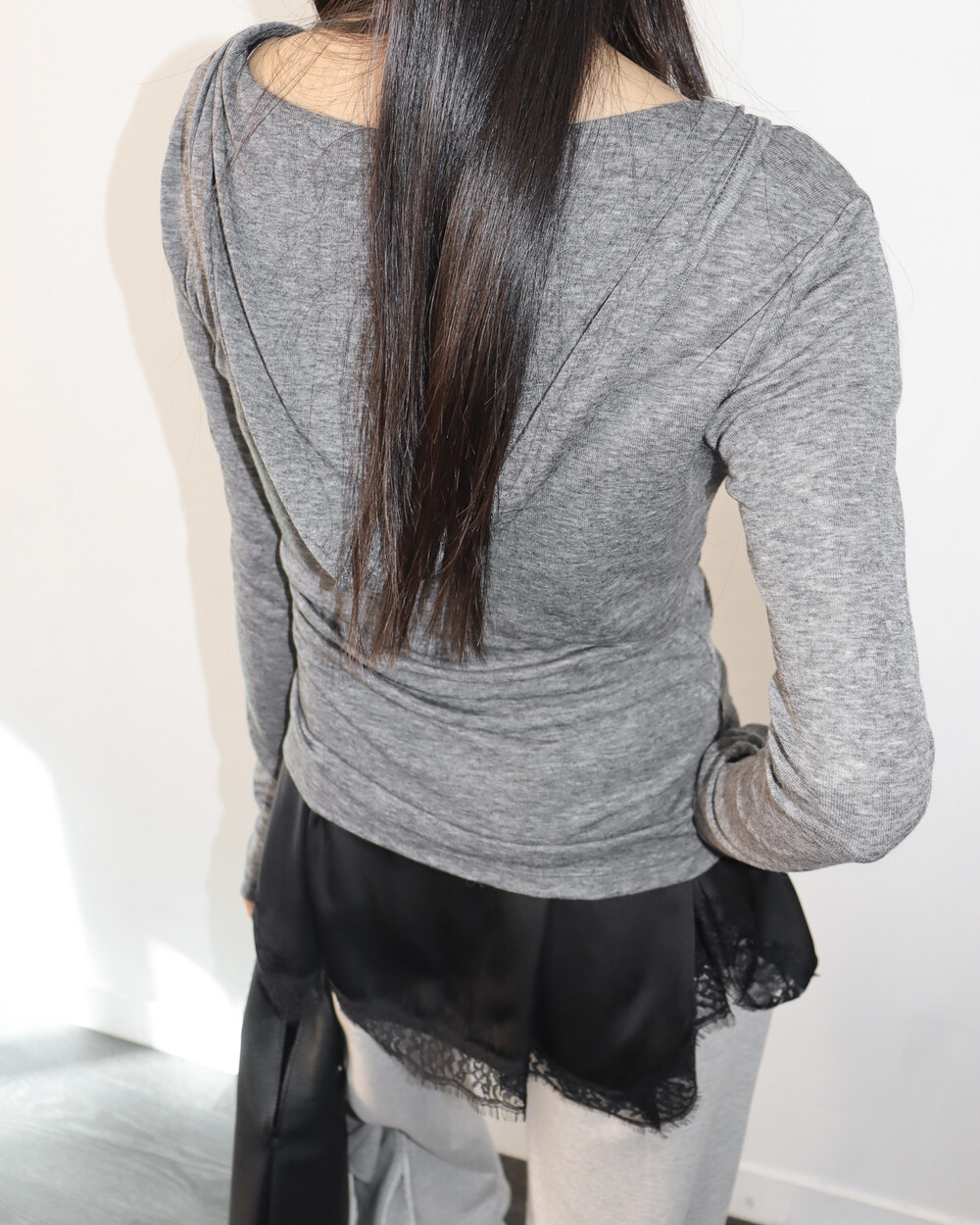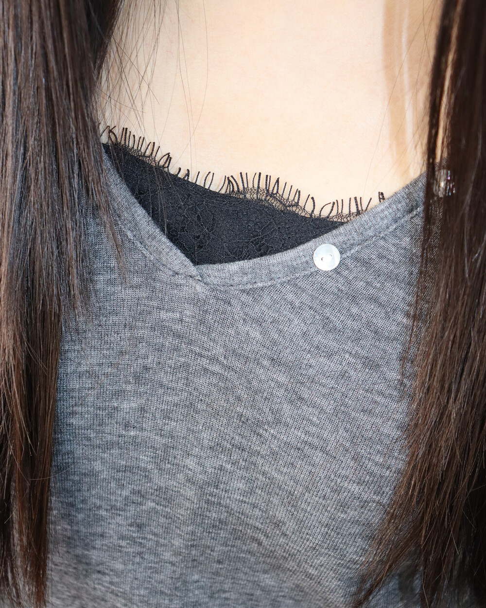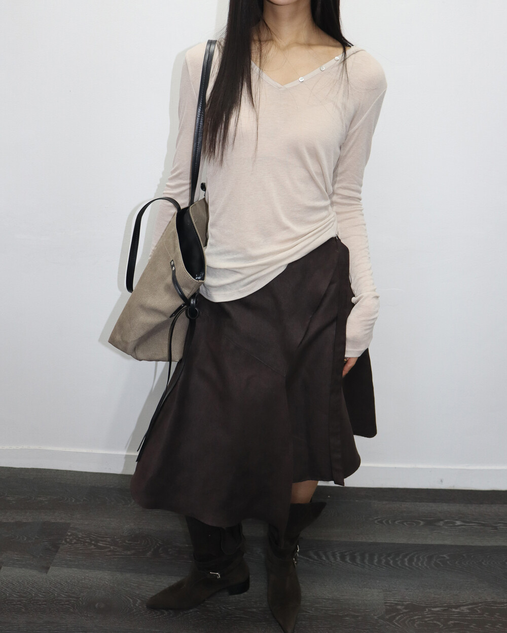 브이넥 라인으로 떨어져 여리여리함은 덤