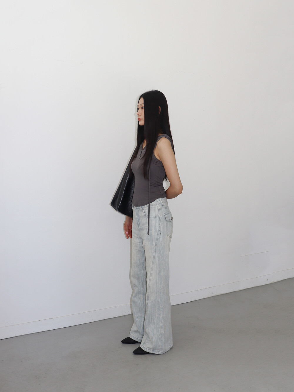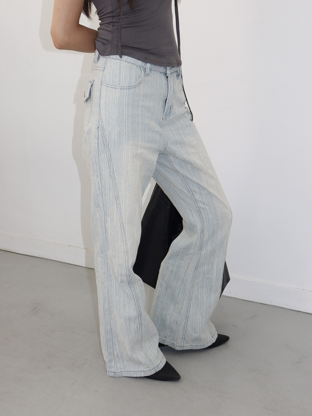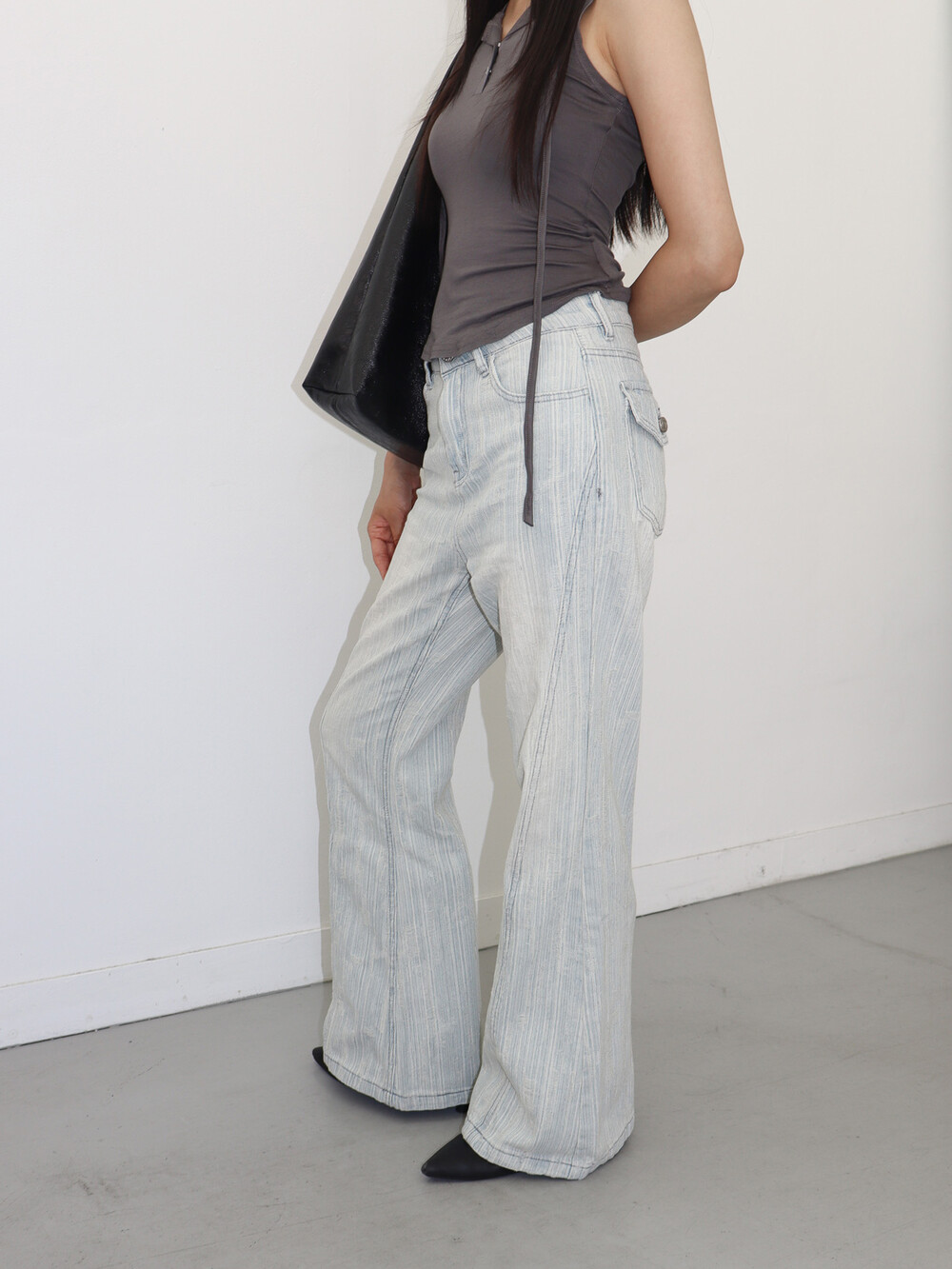 VERTICAL SLIM BOOTS CUT PANTS (LIGHT BLUE)