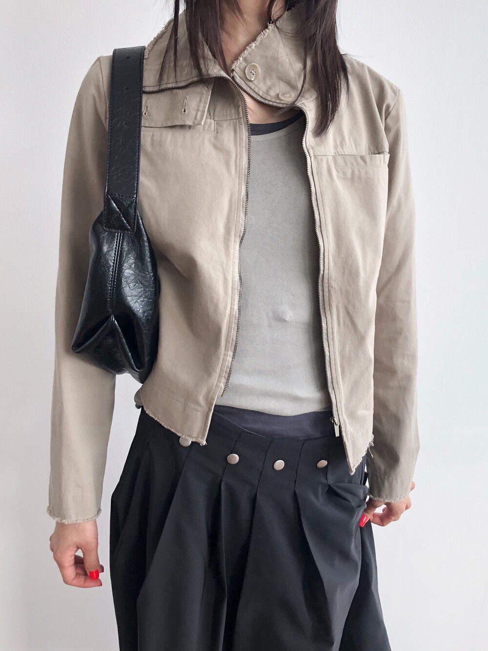 특히 하이넥 디테일이 빈티지하게 커팅되어