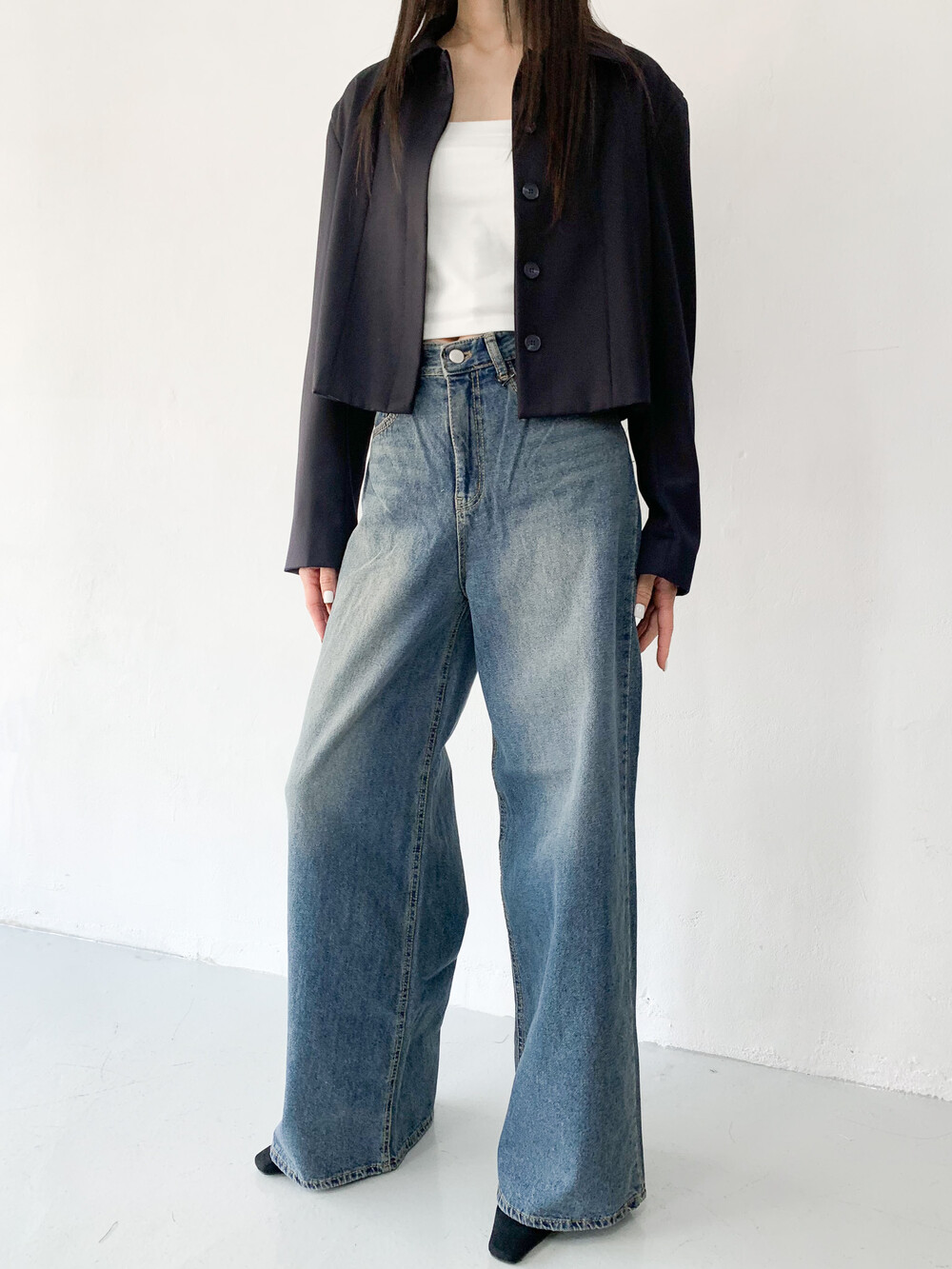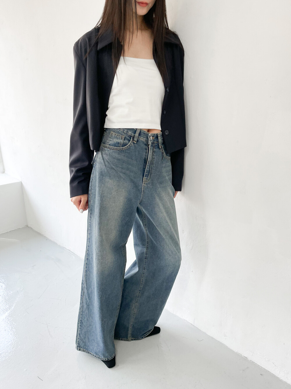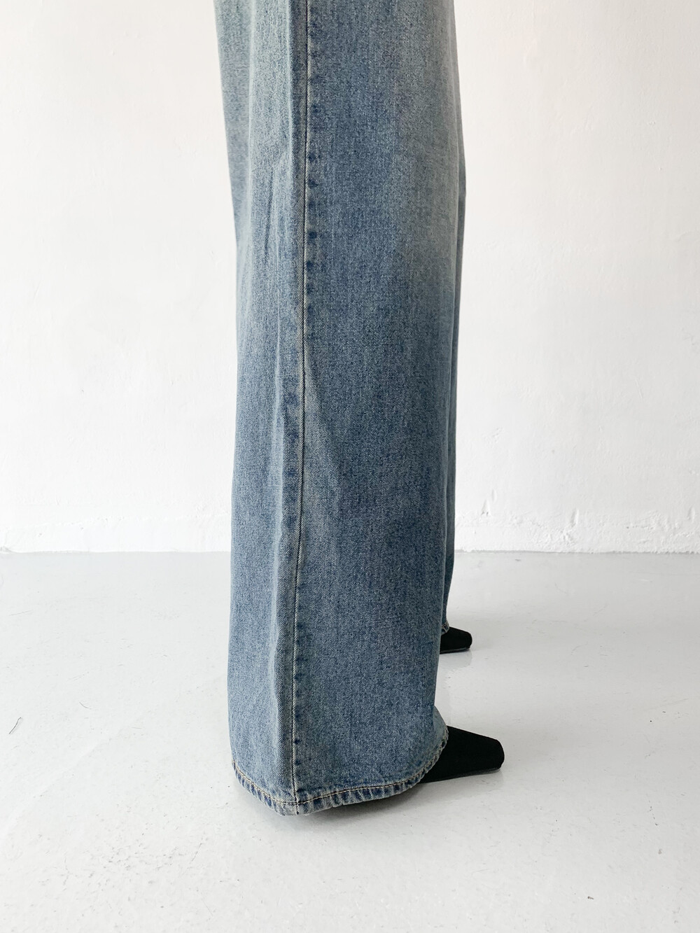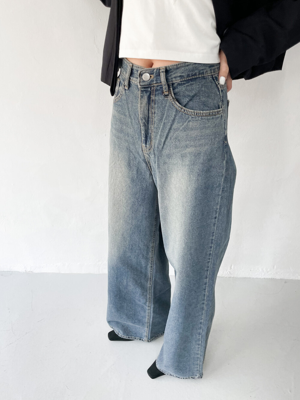 그대로 물 흐르듯 플레어지는 이 와이드 데님