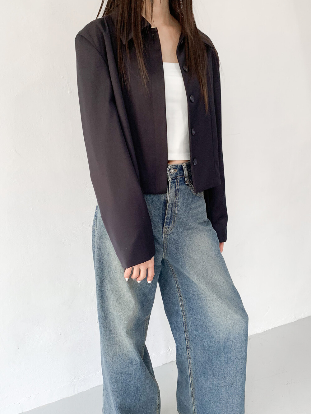 전체적인 룩을 업 시켜주는 멋진 실루엣의 데님,