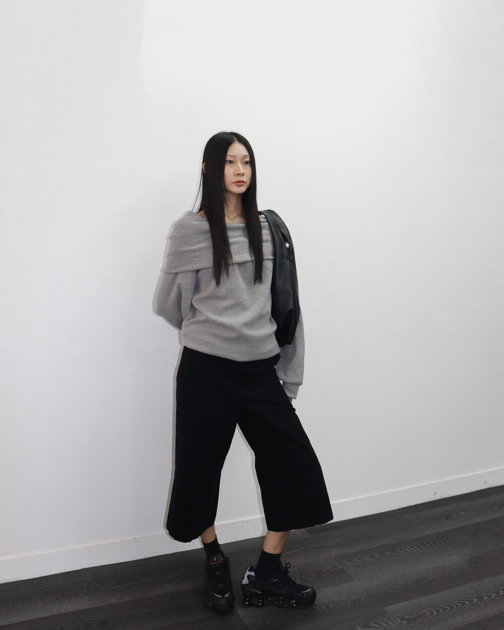 밑단으로 갈수록 약간 플레어드하게 떨어져 종아리가 얇아보이는 .., !
