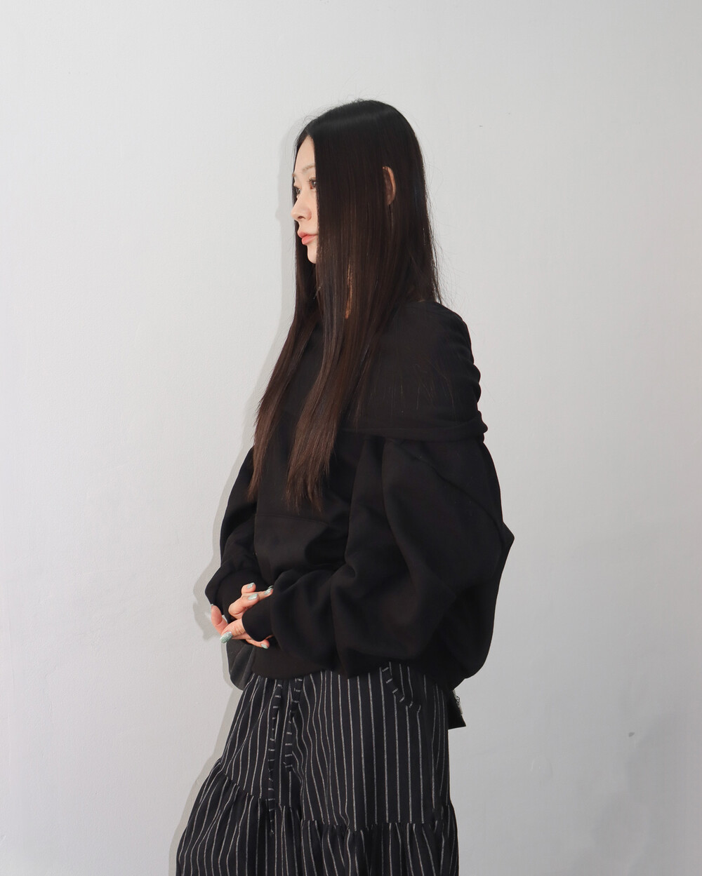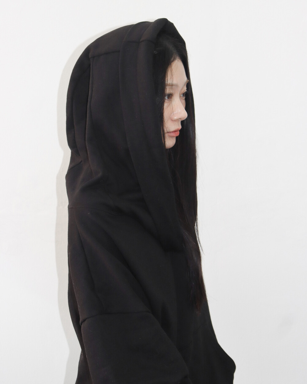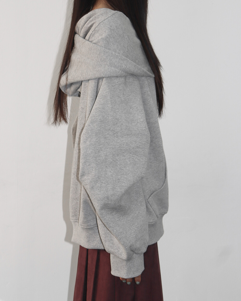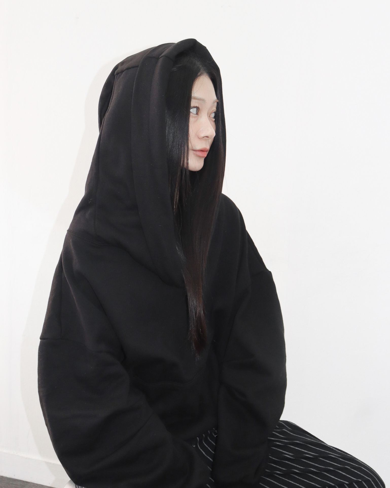 총장 64 어깨 67 가슴 61 소매 50 암홀 26 밑단 43 / 후드 가로 37 세로 44