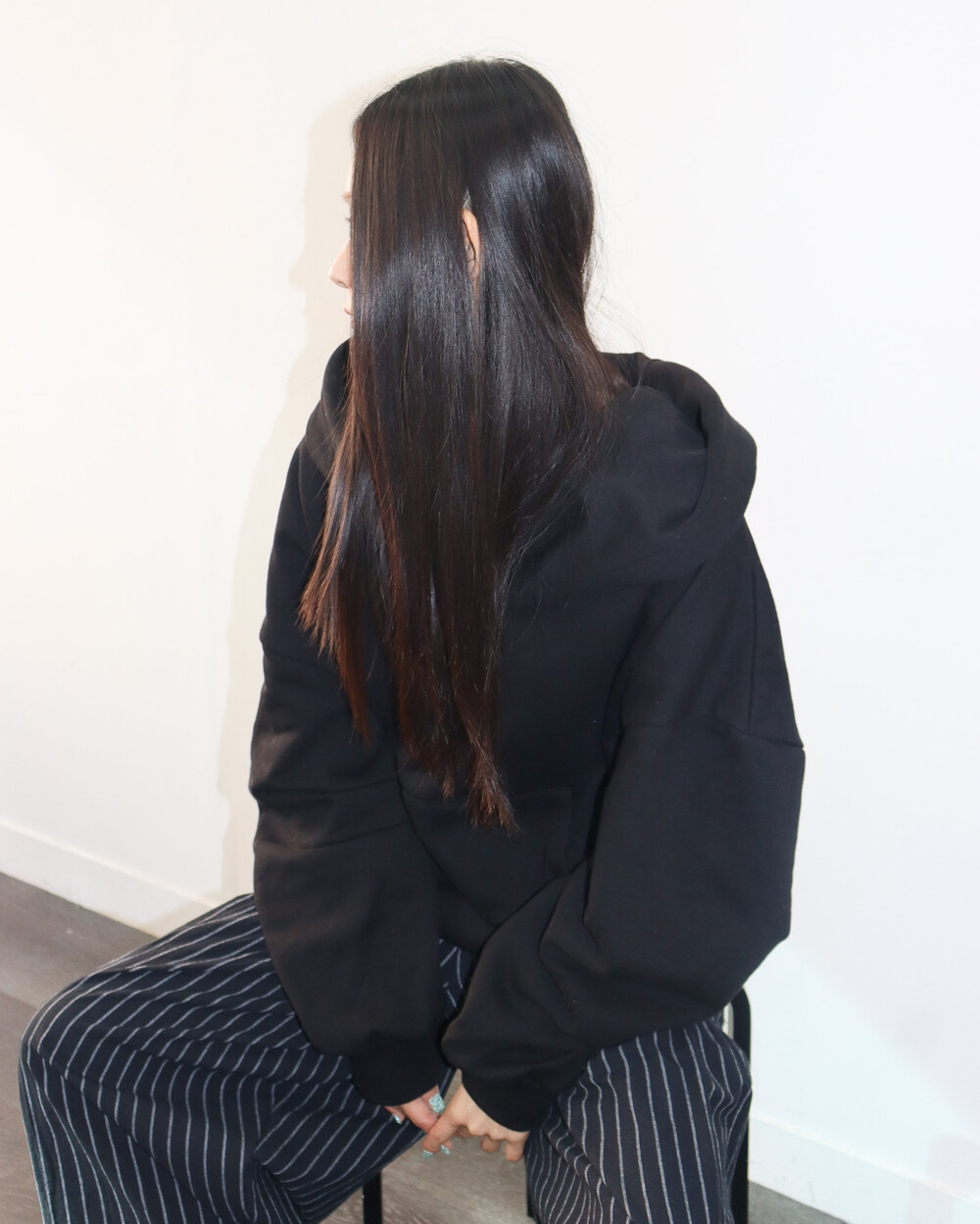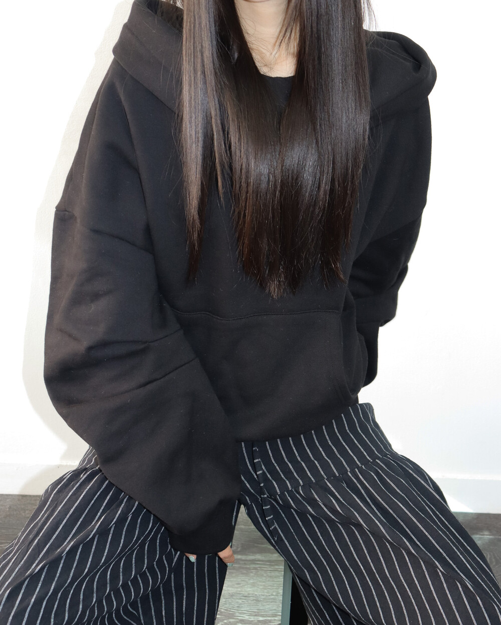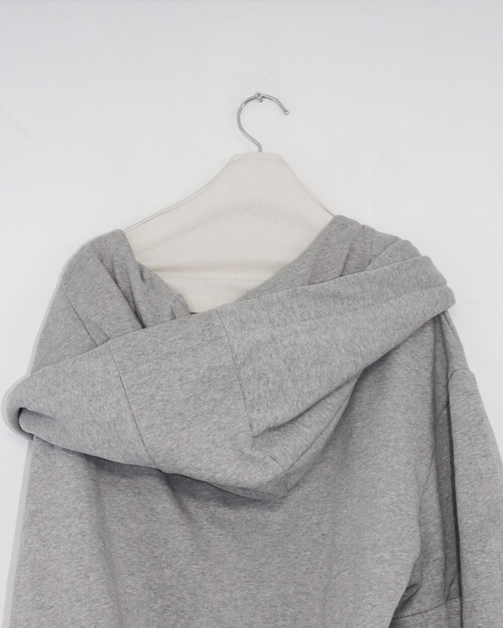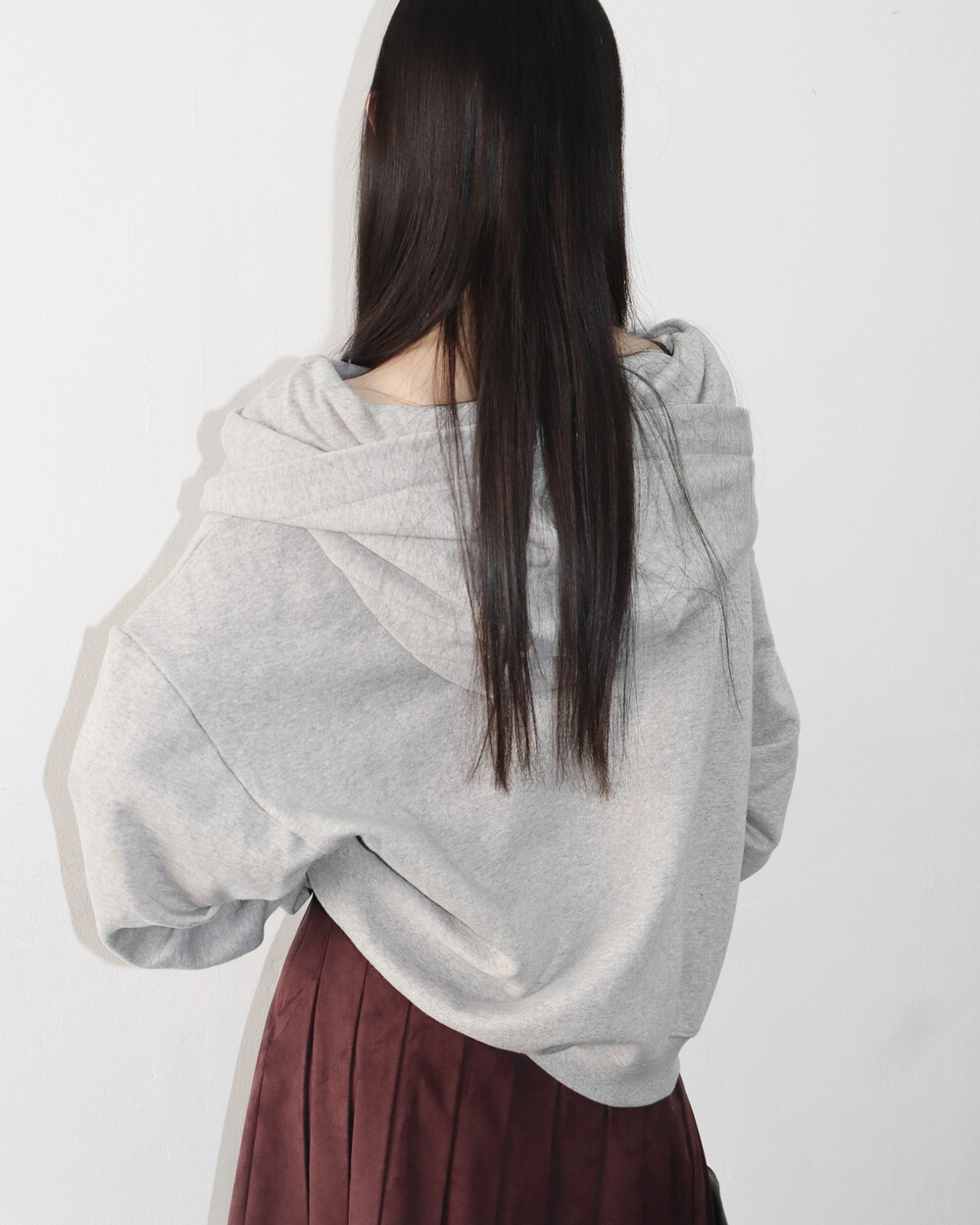 총장 64 어깨 67 가슴 61 소매 50 암홀 26 밑단 43 / 후드 가로 37 세로 44