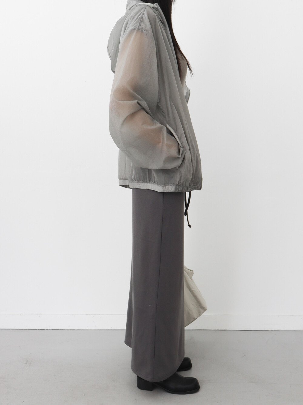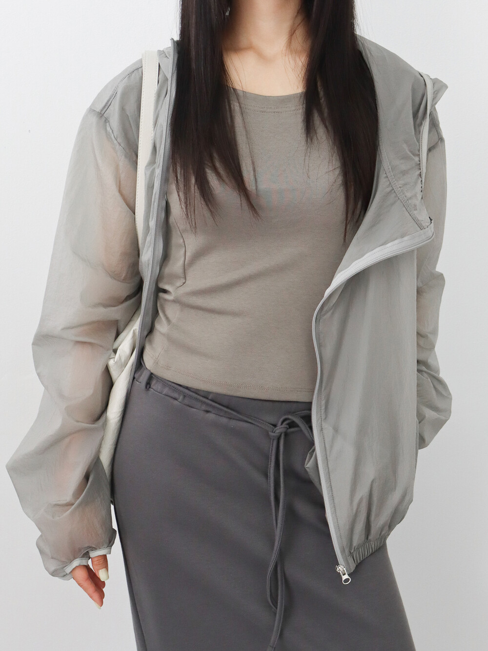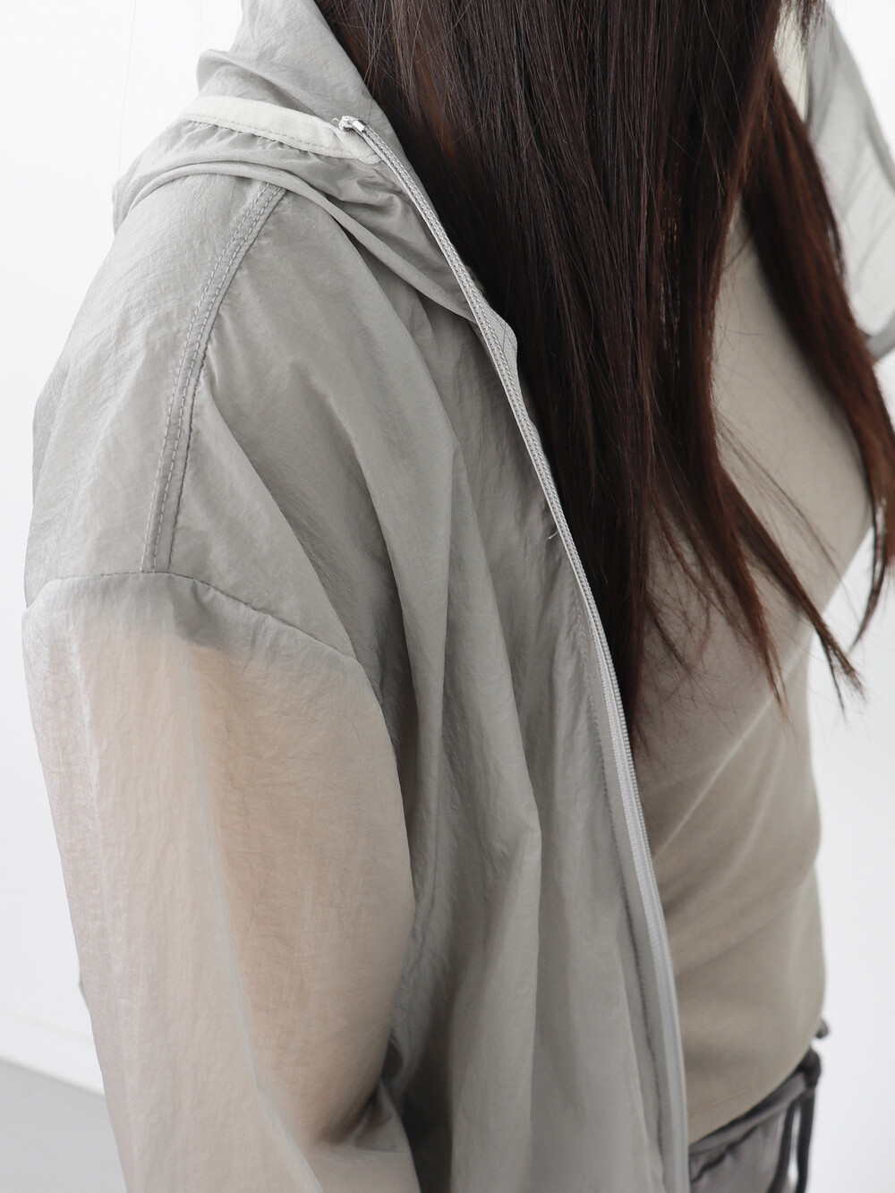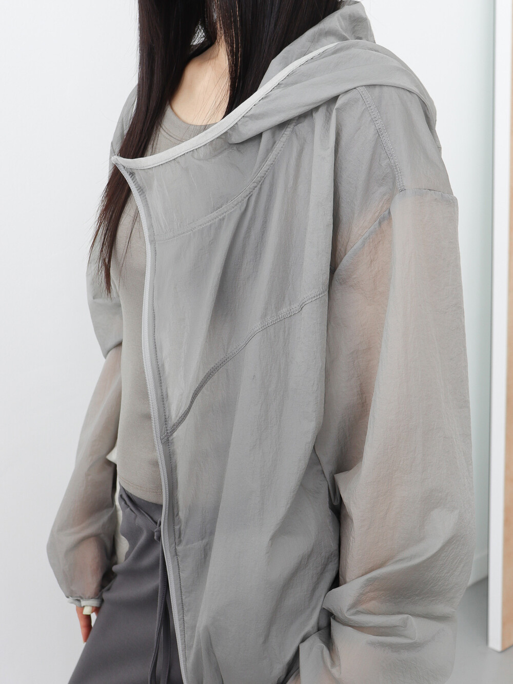가볍고 얇은 시어한 소재감, 깔끔하면서 담백한 핏과 디자인