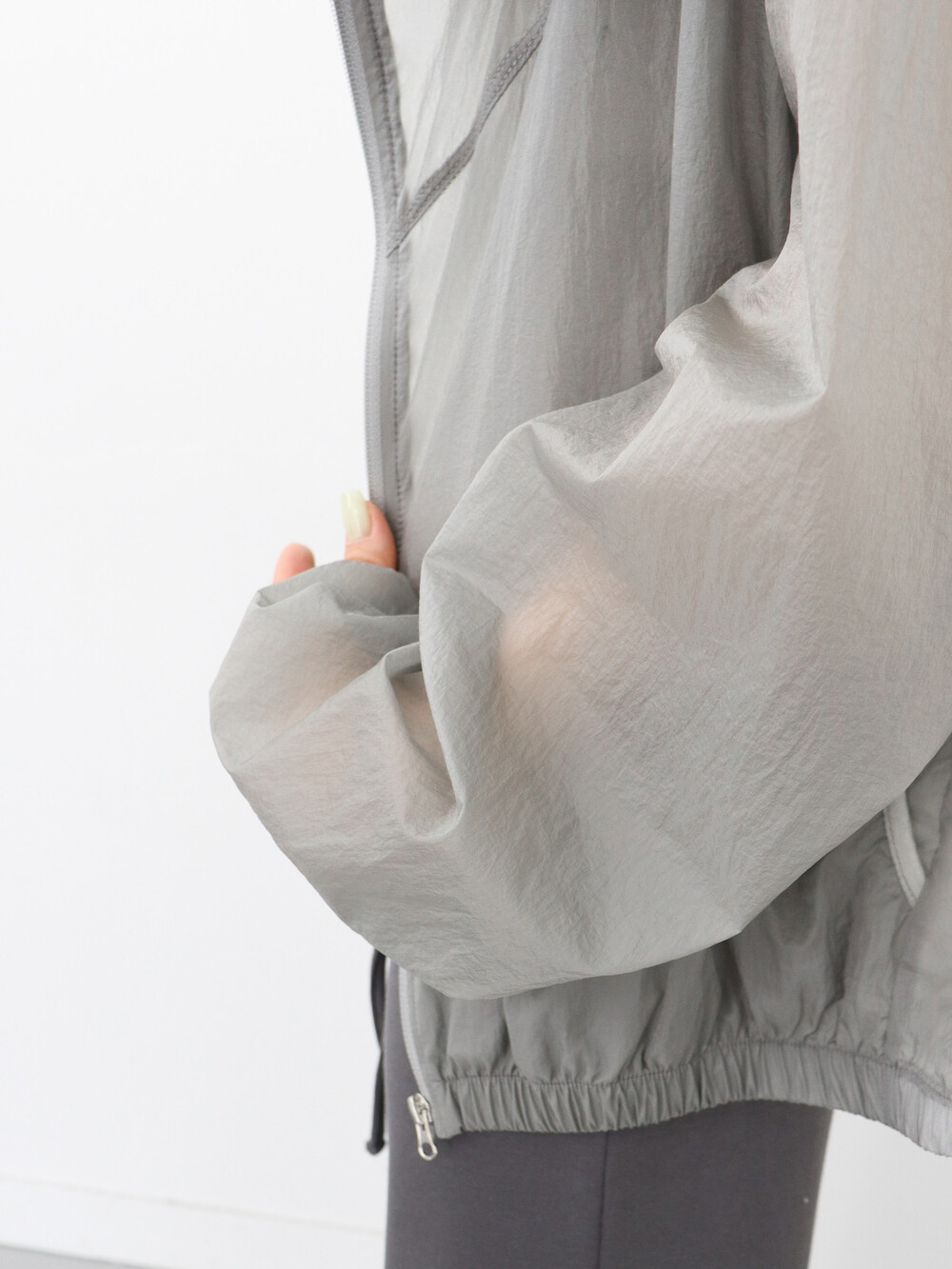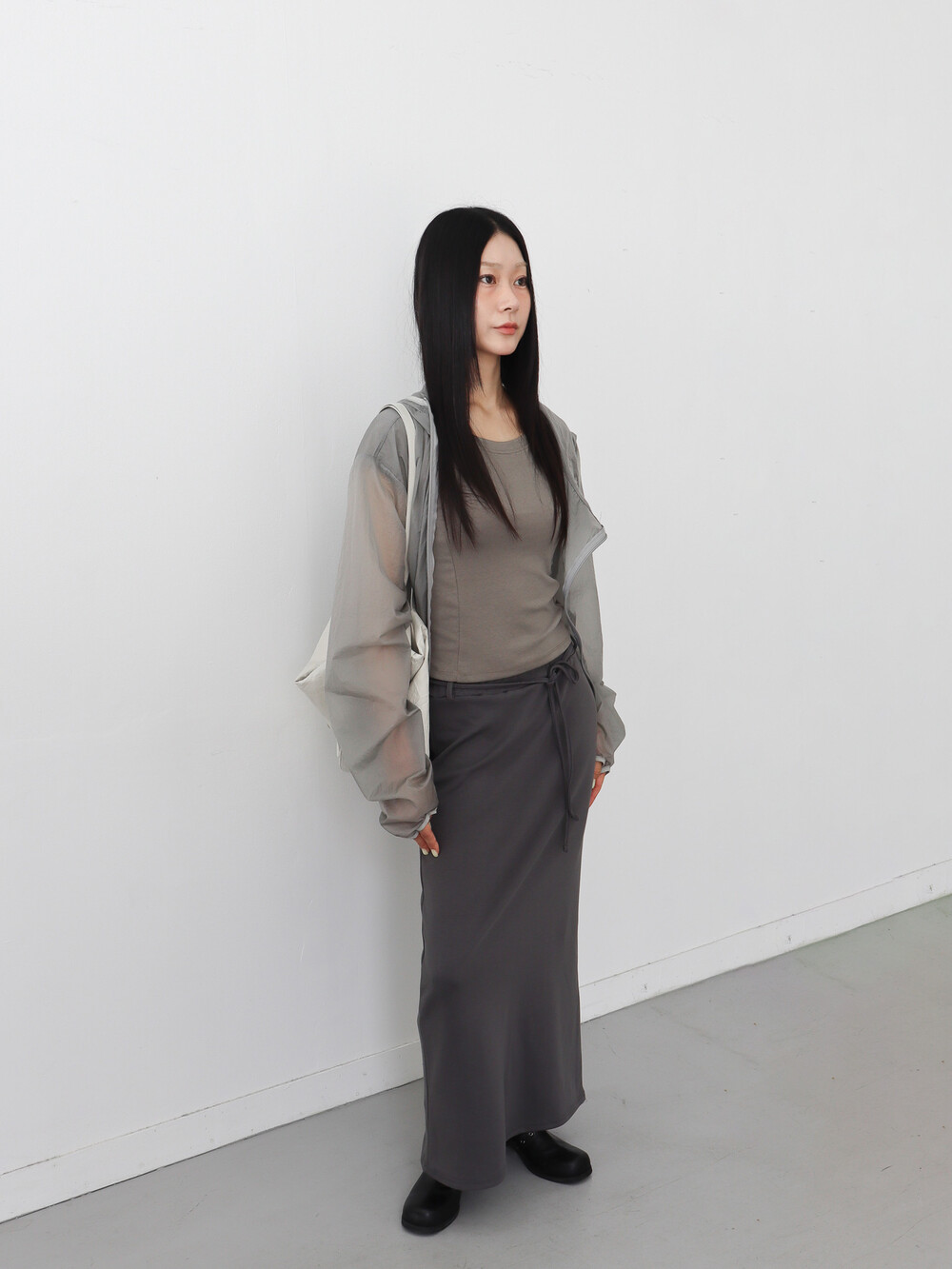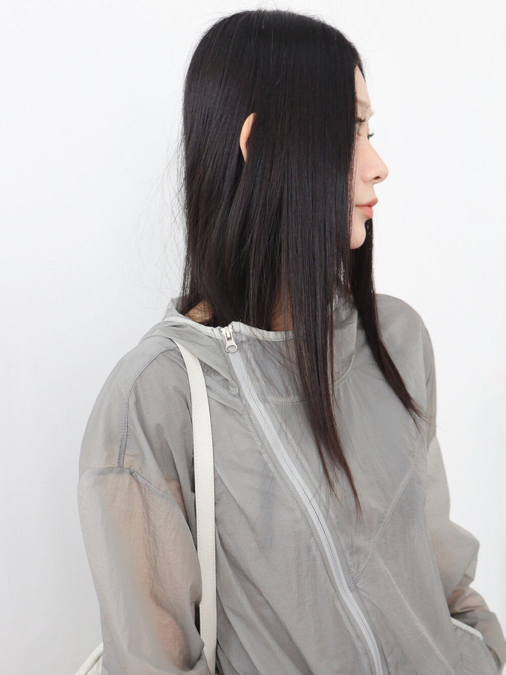 가볍고 얇은 시어한 소재감, 깔끔하면서 담백한 핏과 디자인