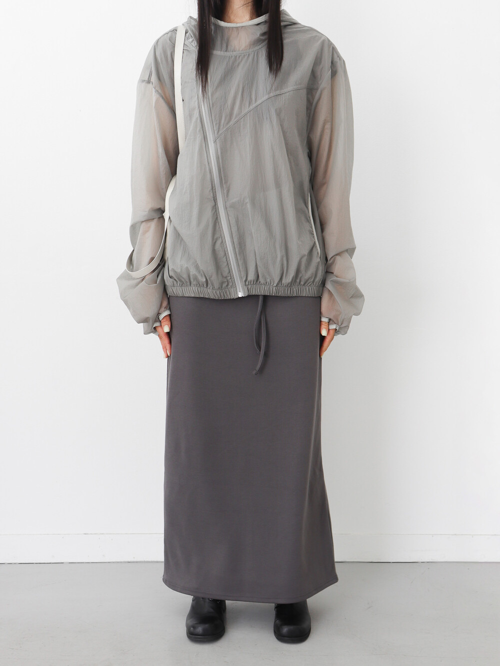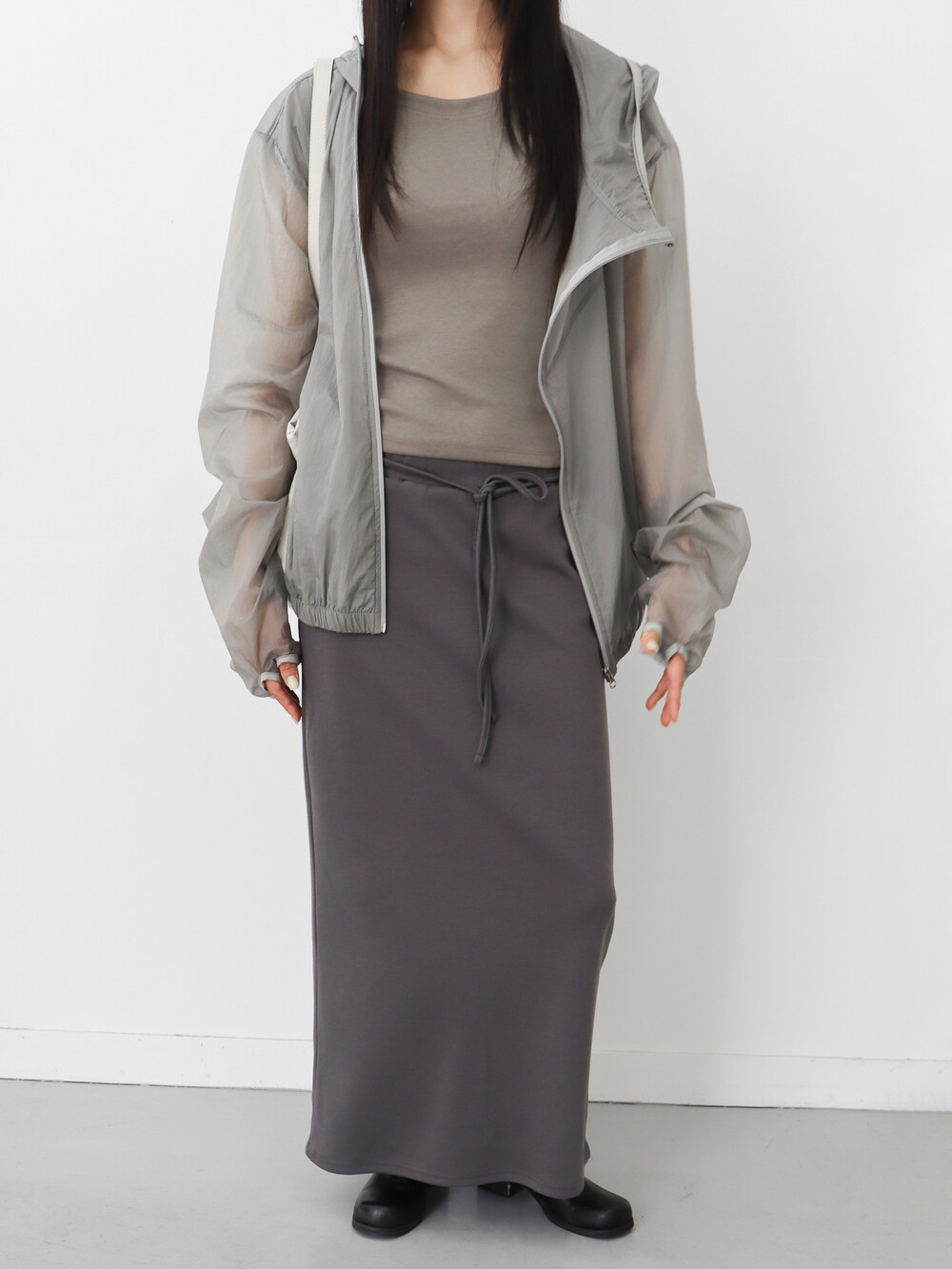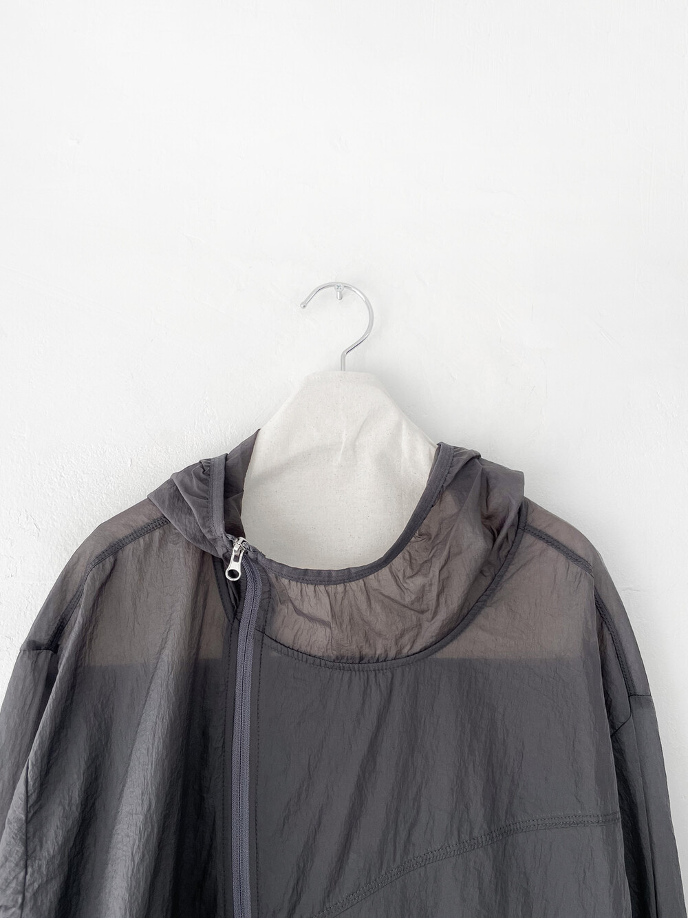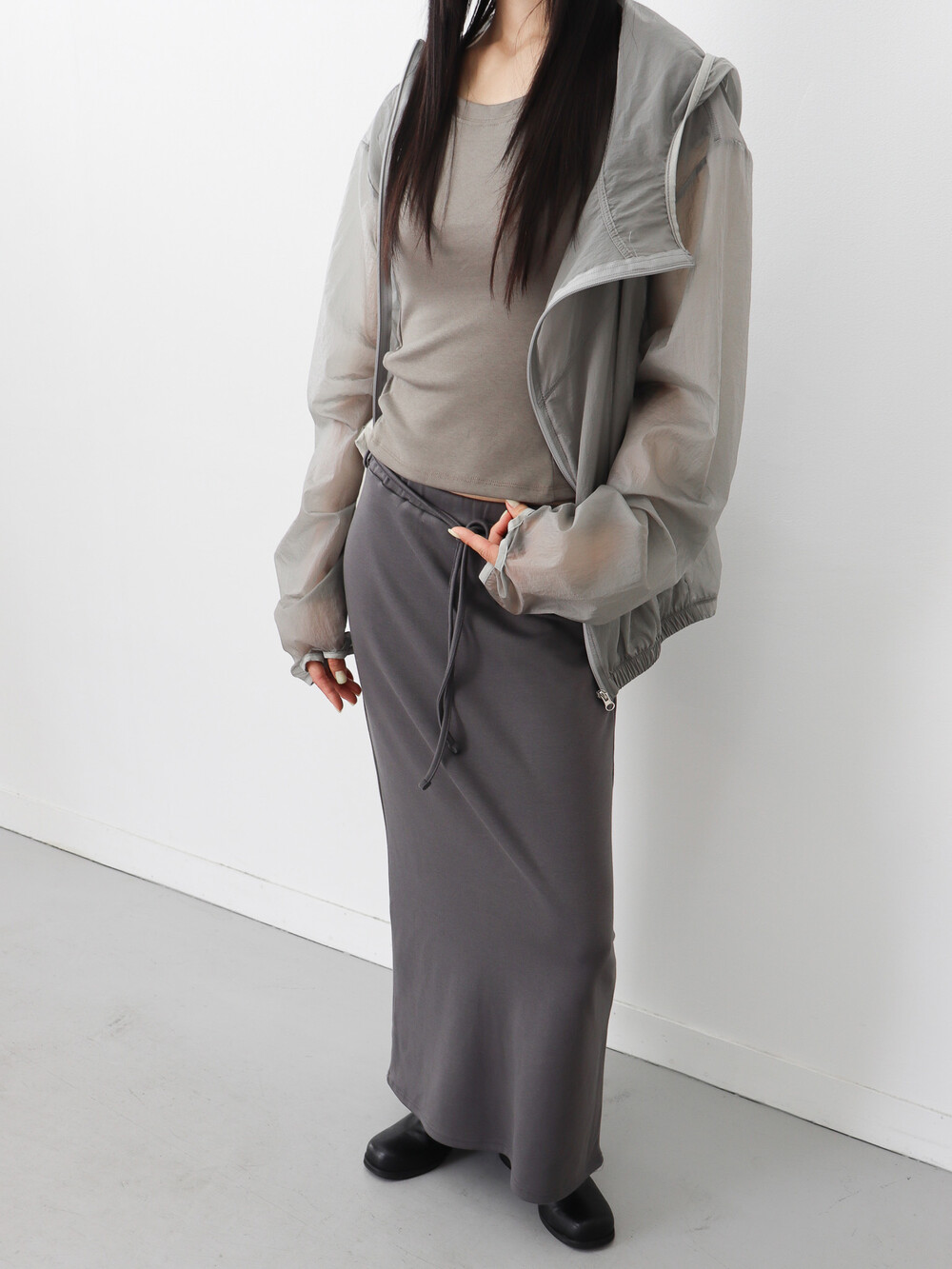 가볍고 얇은 시어한 소재감, 깔끔하면서 담백한 핏과 디자인