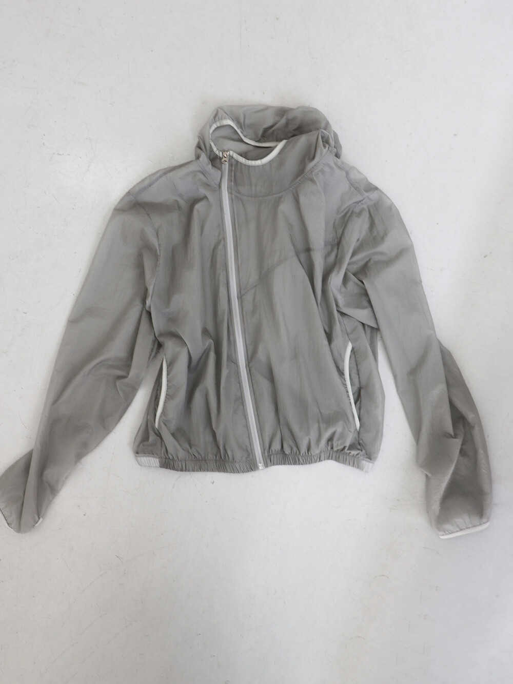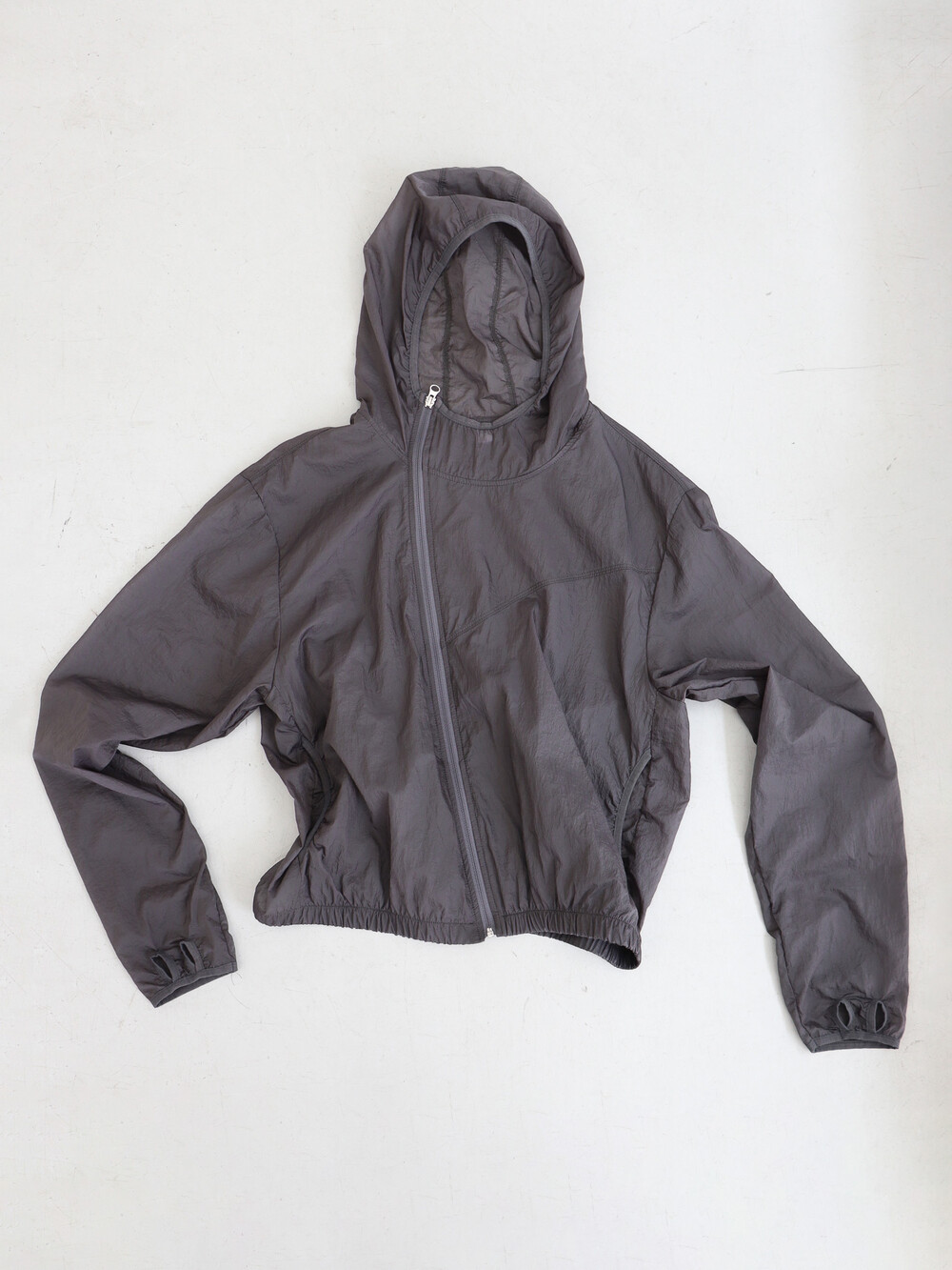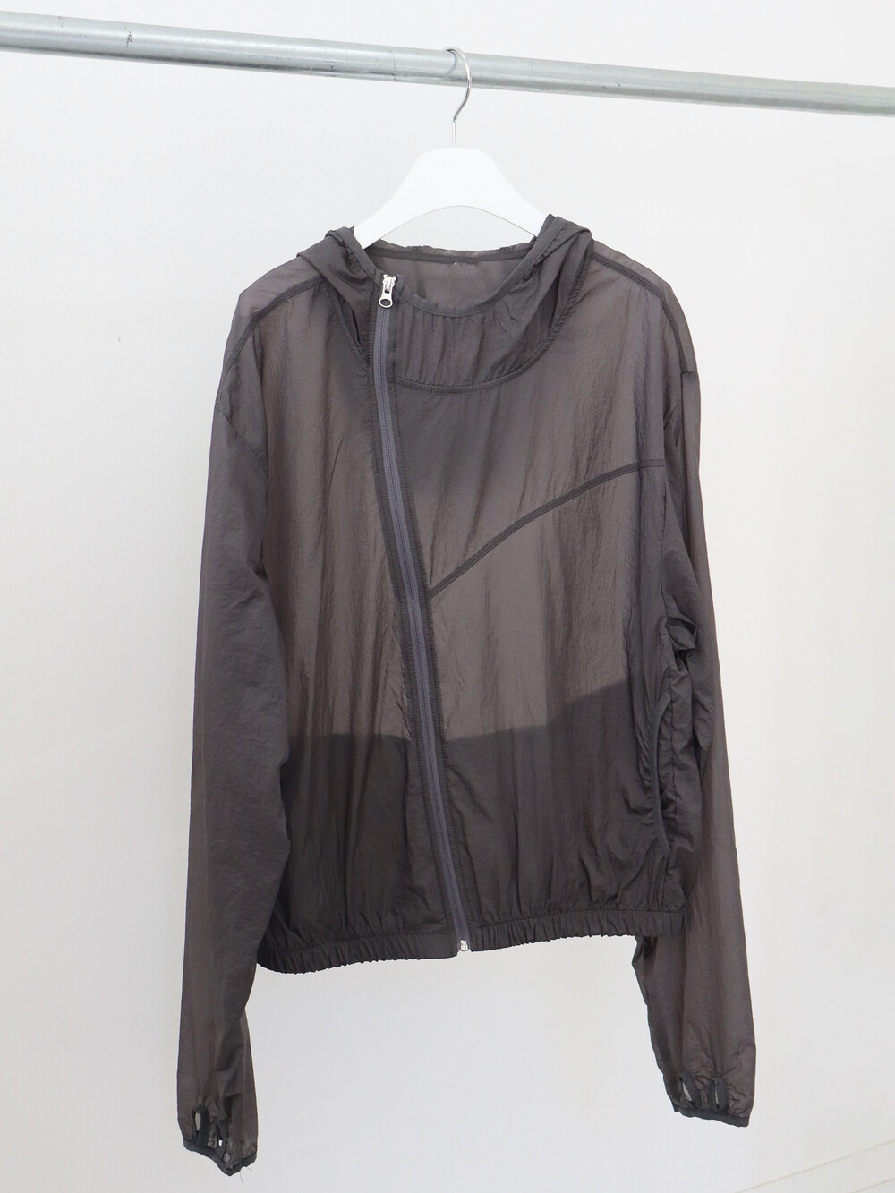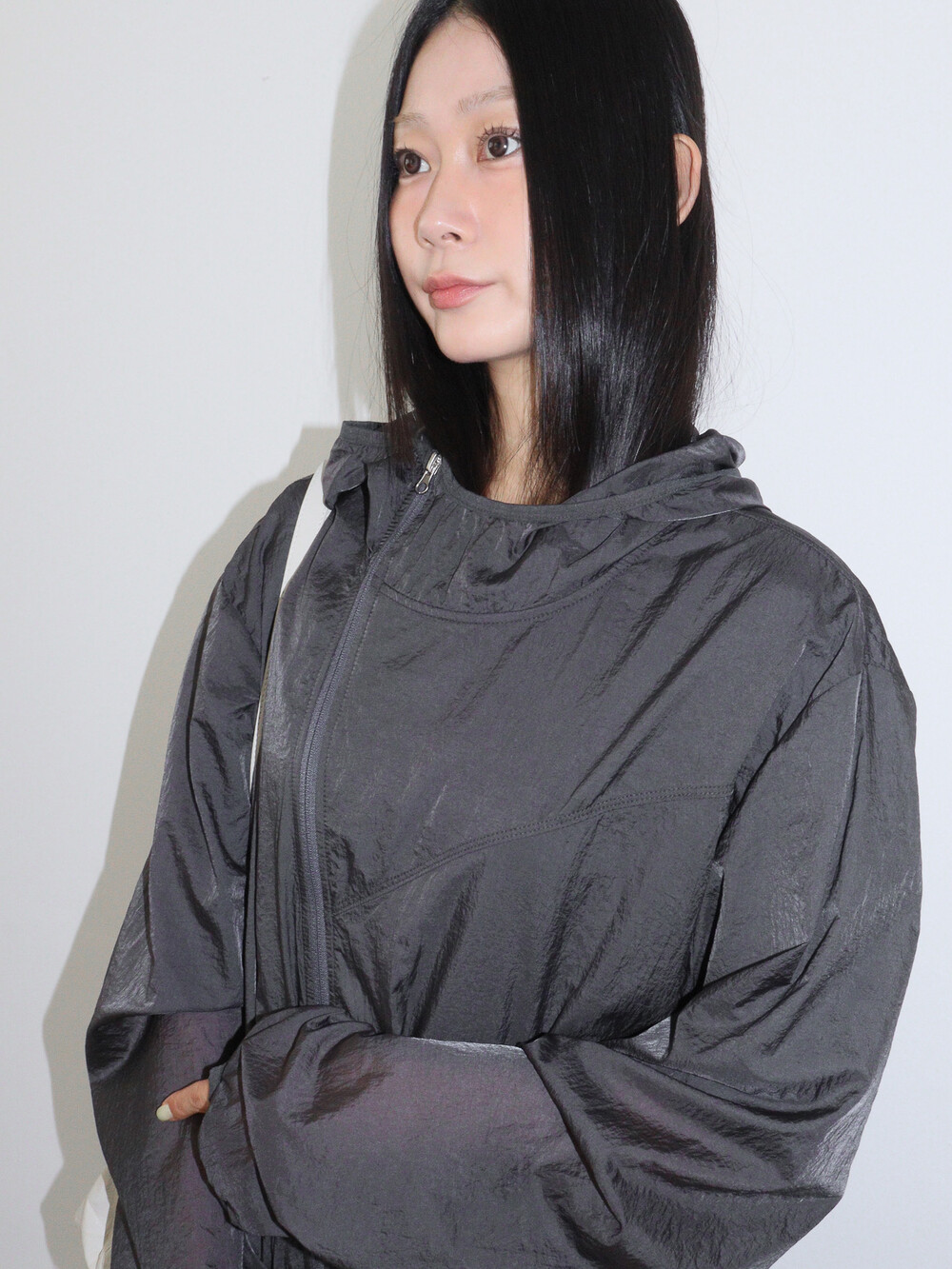 사선으로 떨어지는 절개 디테일이 돋보이는 유니크한 매력의 점퍼