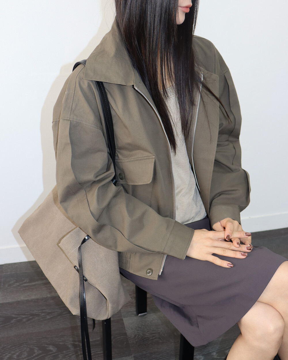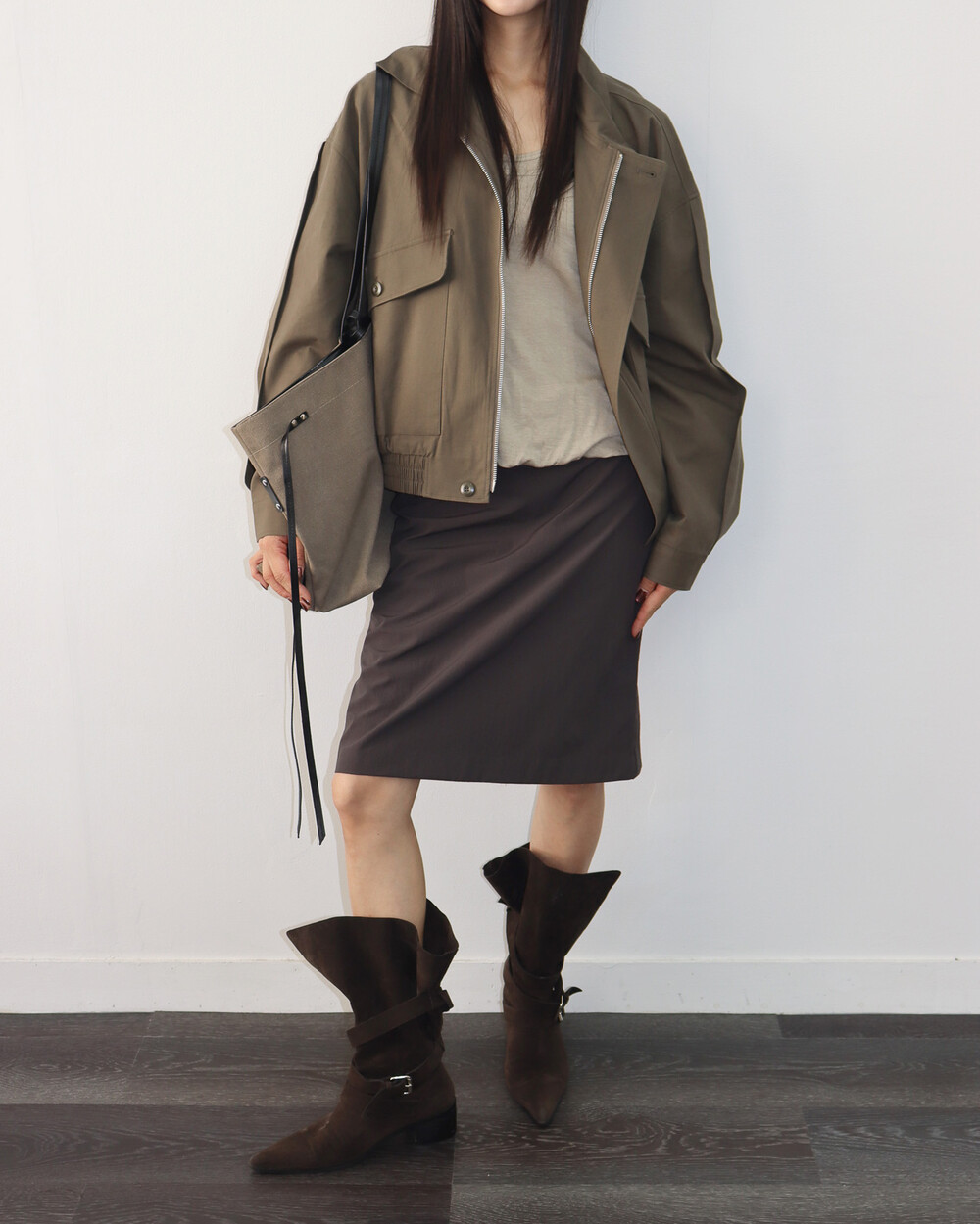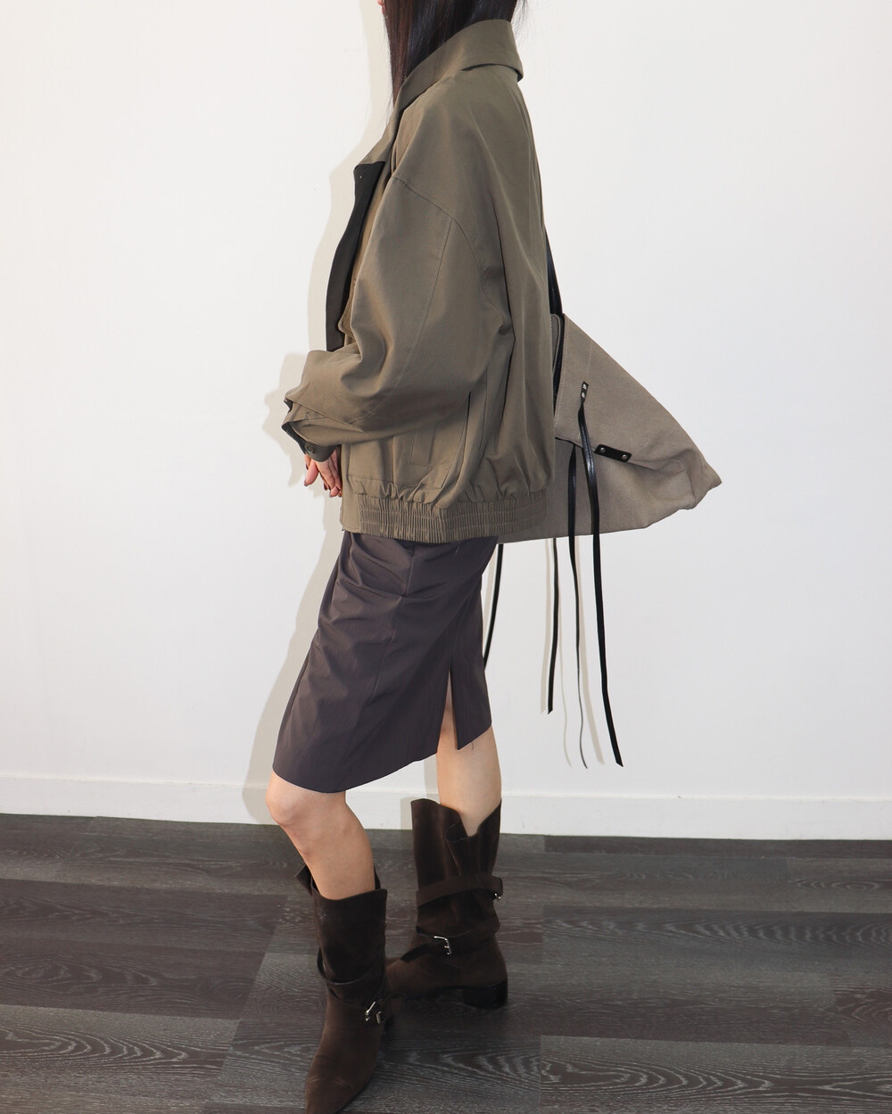 넥 라인의 언발란스한 디테일이 마음에 들어 셀렉한 점퍼입니다