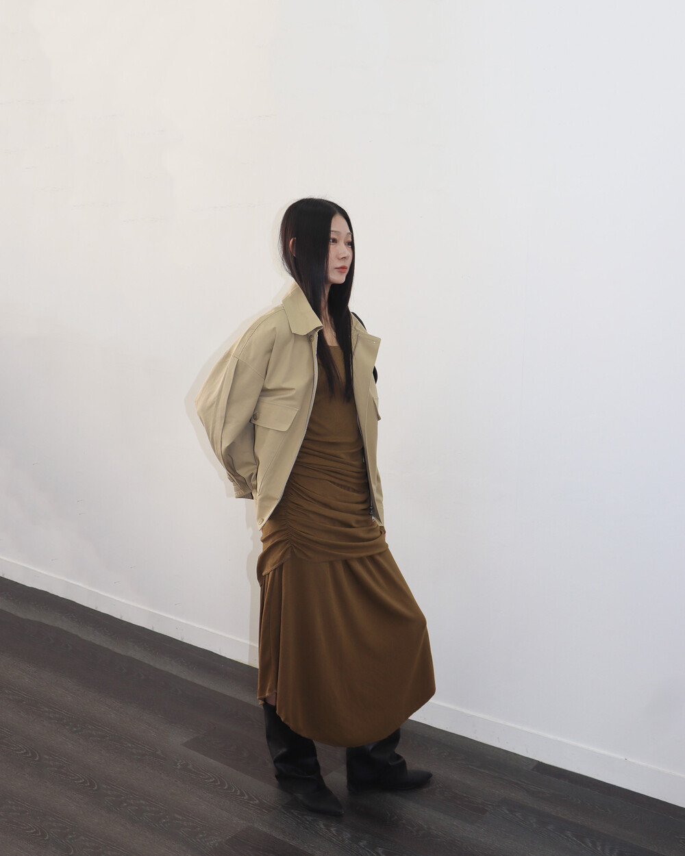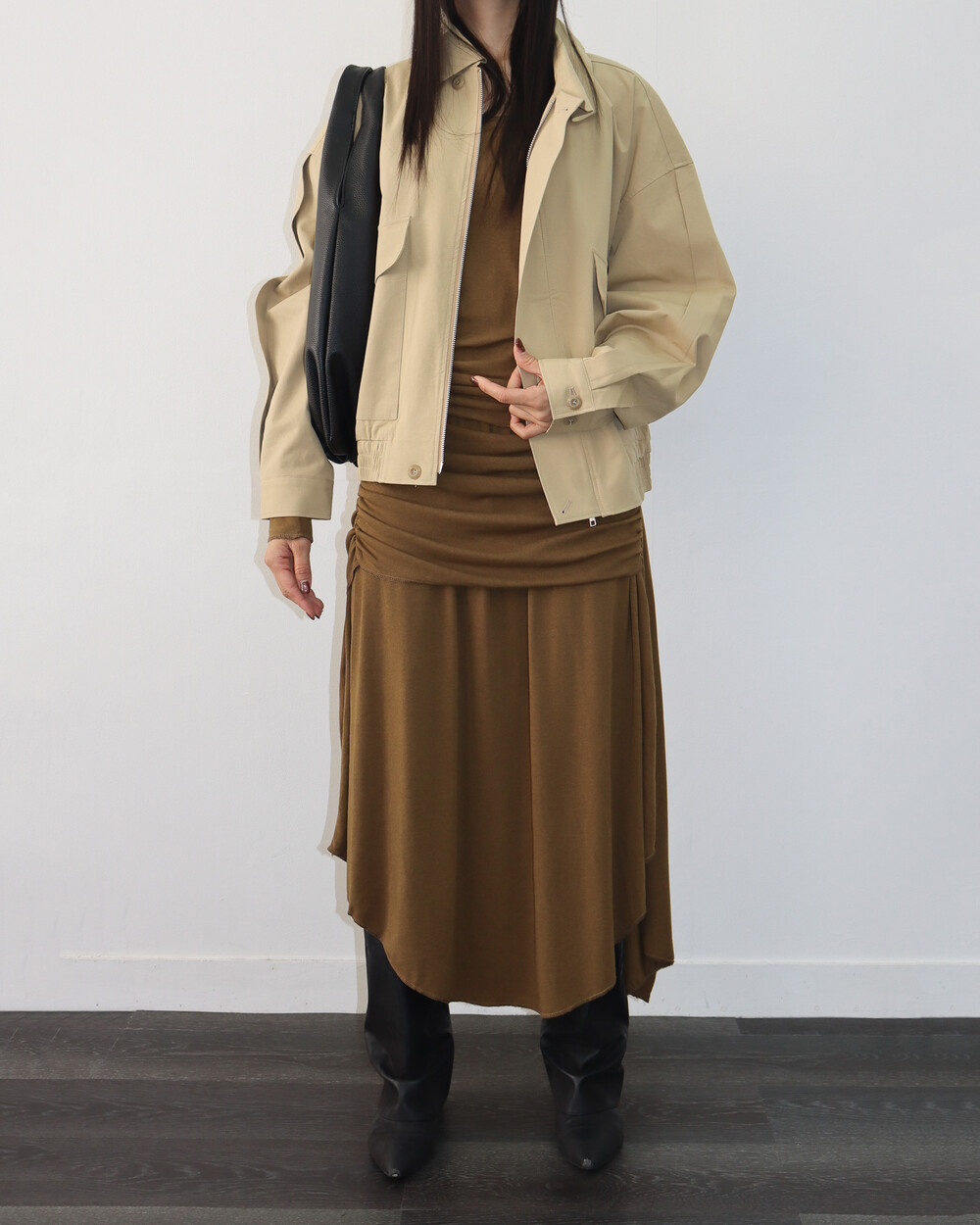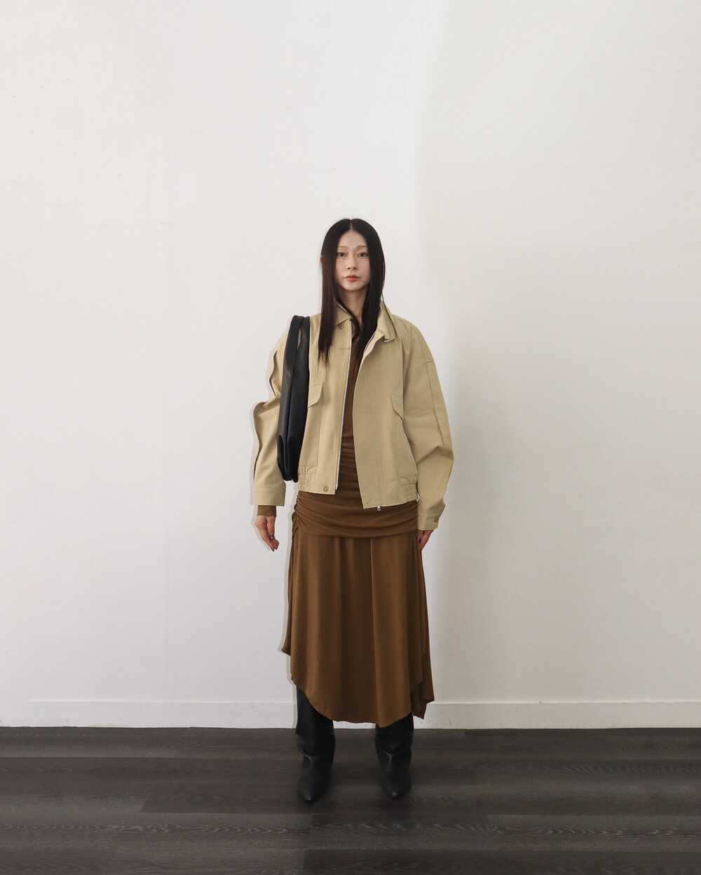 넥 라인의 언발란스한 디테일이 마음에 들어 셀렉한 점퍼입니다